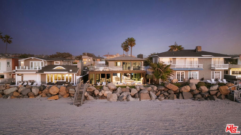 Once-in-a-lifetime opportunity to own one of the most coveted oceanfront properties in all of Del Mar. Ideally located directly on the sand within the exclusive, private gated enclave of Sandy Lane, comprised of only 12 residences. This fully remodeled coastal estate which feels like brand new construction offers five bedrooms (or four bedrooms plus office) along with a dedicated gym, set on an expansive 14,415 sq ft lot with 50 feet of unobstructed ocean frontage and direct private beach access. From the moment you enter, the sound of crashing waves and refreshing ocean breezes fill the home, with breathtaking views from nearly every room. Designed for both luxury and livability, the residence features an exceptional entertainer's bar and wine cellar, and a chef's kitchen equipped with premium stainless-steel appliances, seamlessly flowing into the family room highlighted by an oversized fireplace. The primary suite, located upstairs, captures dramatic, panoramic ocean views and opens to a private view deck. The spa-inspired primary bath delivers at every level, complete with a built-in sauna. Outdoor living is unparalleled, featuring a spacious oceanfront deck with outdoor kitchen, heaters, fire pit, and retractable shadescreating effortless indoor-outdoor living and unforgettable sunset experiences. Additional highlights include an ADU with 2 bedrooms and full bath and a 2 car garage. The sunset views are truly extraordinary.