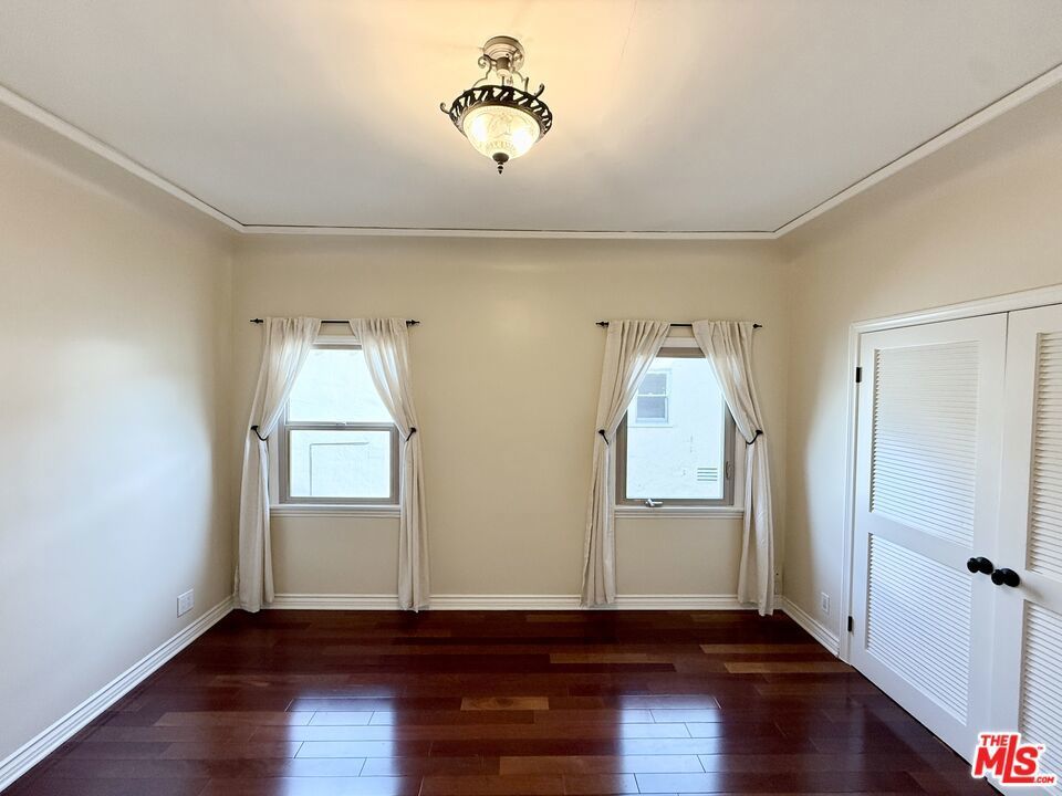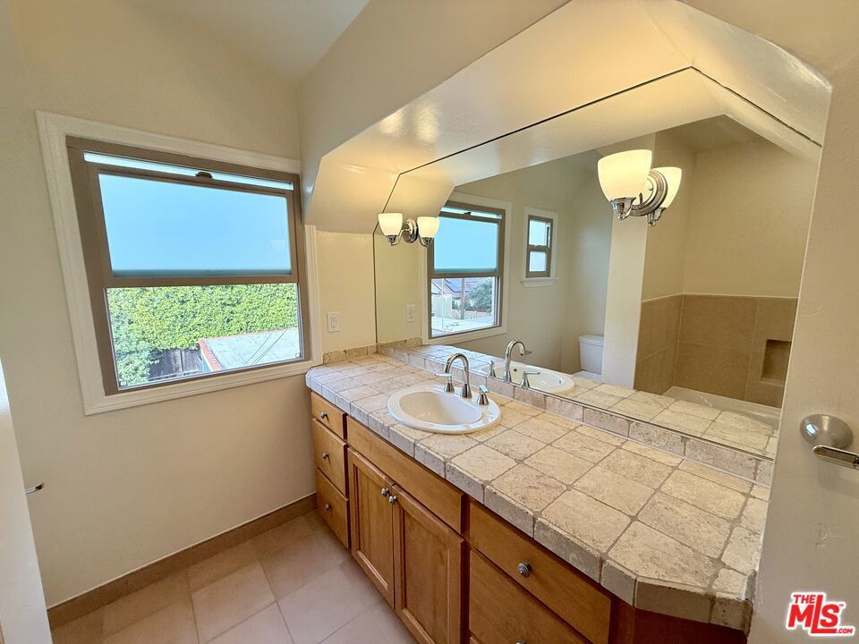 Restored UPPER Spanish Colonial Revival residence in Wilshire Vista offering a rare private, single-family-home feel. This 1588 sf charming duplex has been thoughtfully updated throughout, preserving its original architectural integrity. Restored hardwood floors run throughout, and the sun-filled living room is anchored by a sculptural natural stone fireplace and a grand window with built-in shelving on either side. Original arched doorways, higher, coved ceilings, new window treatments over some new dual paned windows, and textured, freshly painted walls define the space and reflects clear pride of ownership. A formal dining room with wrought-iron chandelier and large window elevates your dining experience. The kitchen features tile countertops, wood cabinetry, stainless steel appliances, and a breakfast pass-through with ample windows. A separate laundry room at the rear of the kitchen includes a brand new full-size washer and dryer. Bedrooms are well-proportioned with picture-framed ceilings, hardwood floors, natural light, and generous closet space. The grand primary bedroom at the back of the property provides unmatched peace and comfort. The newly rejuvenated bathrooms offer stone tile counters and classic tile finishes consistent with the home's Spanish character. Additional features include central air and heat, ample storage, bay windows, 1 parking space, street parking, and the privacy of an upper-level residence with no shared living walls. Set on a lushly landscaped, tree-lined stretch of Ridgeley Drive in the historic Wilshire/Hancock Park-adjacent area. This location delivers proximity to Miracle Mile's cultural institutions and museums, the boutique shops and cafes of Larchmont Village, and abundant dining along La Brea and Wilshire Boulevards. In close proximity to Yummy.com grocery, several coffee shops, and delicious food spots as well. The neighborhood's spacious green streets and classic homes draw discerning tenants seeking character, walkable amenities, updated city transit systems, and easy connectivity to all things central Los Angeles. This RARE respite in the middle of the city has it all - welcome home!