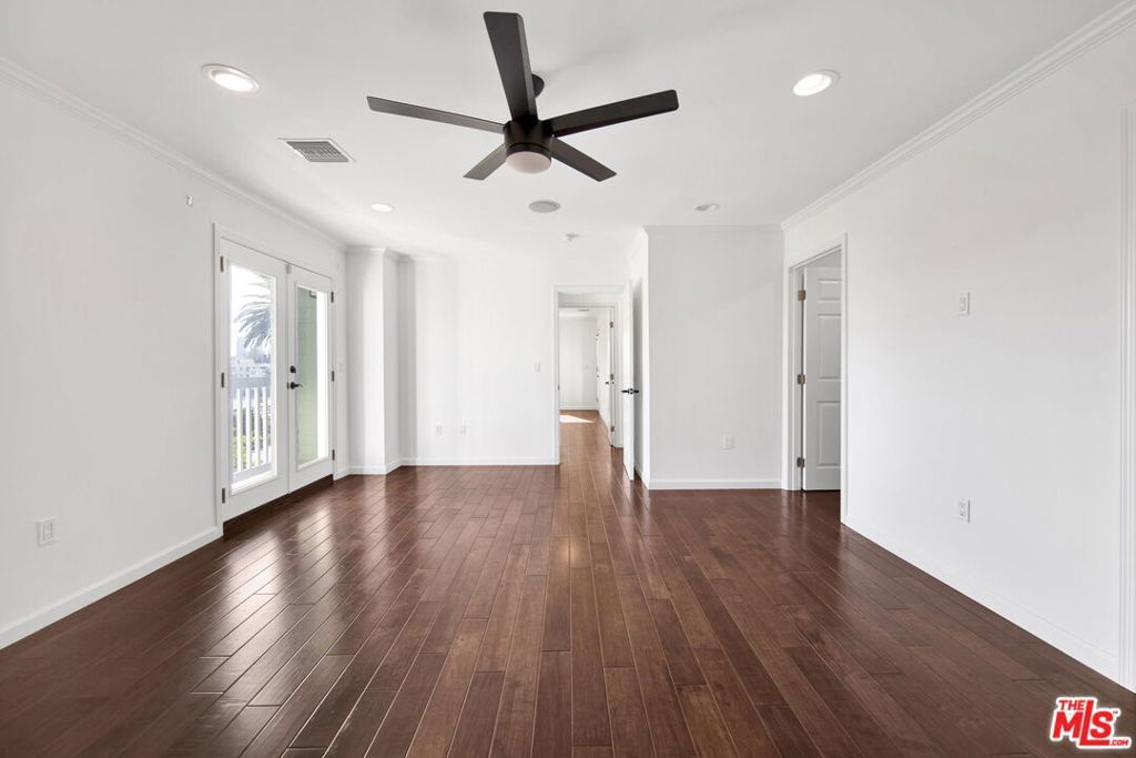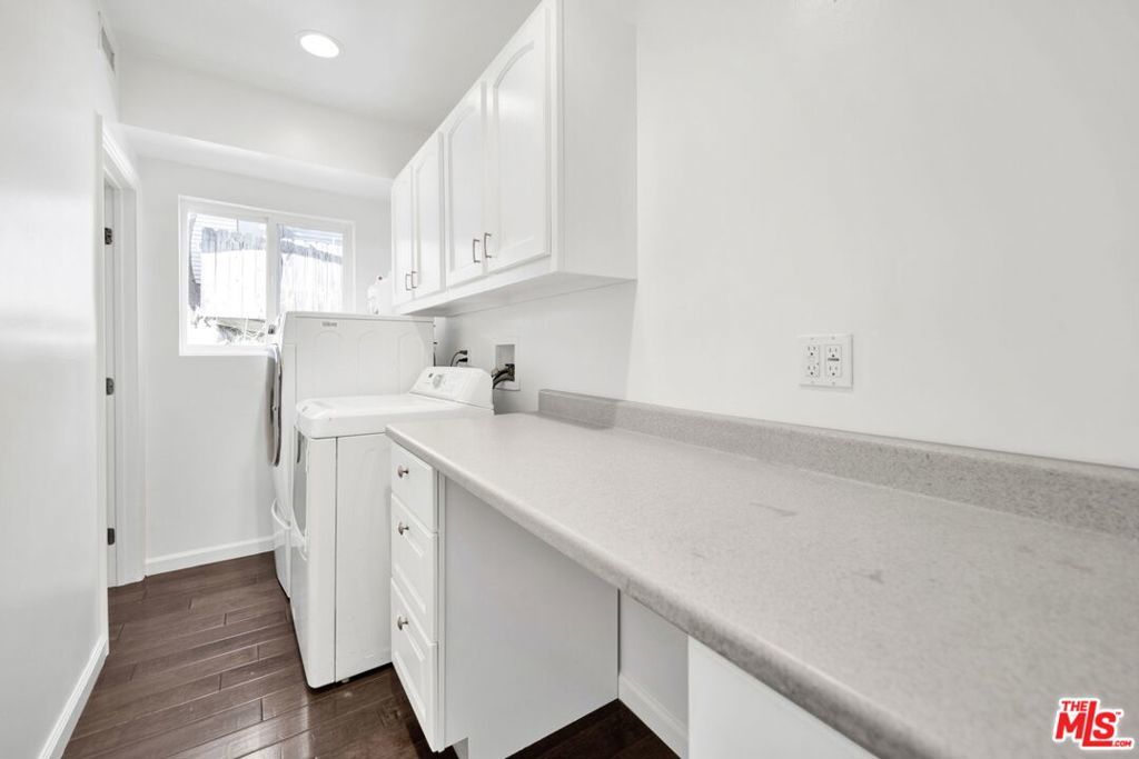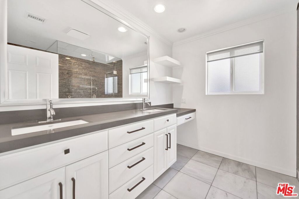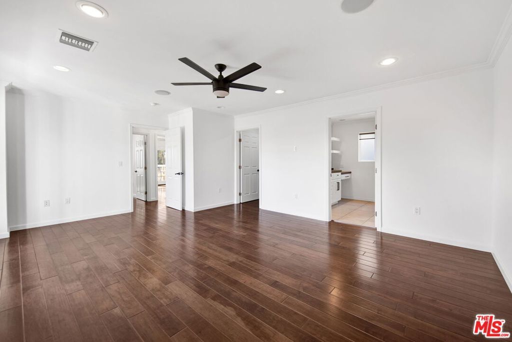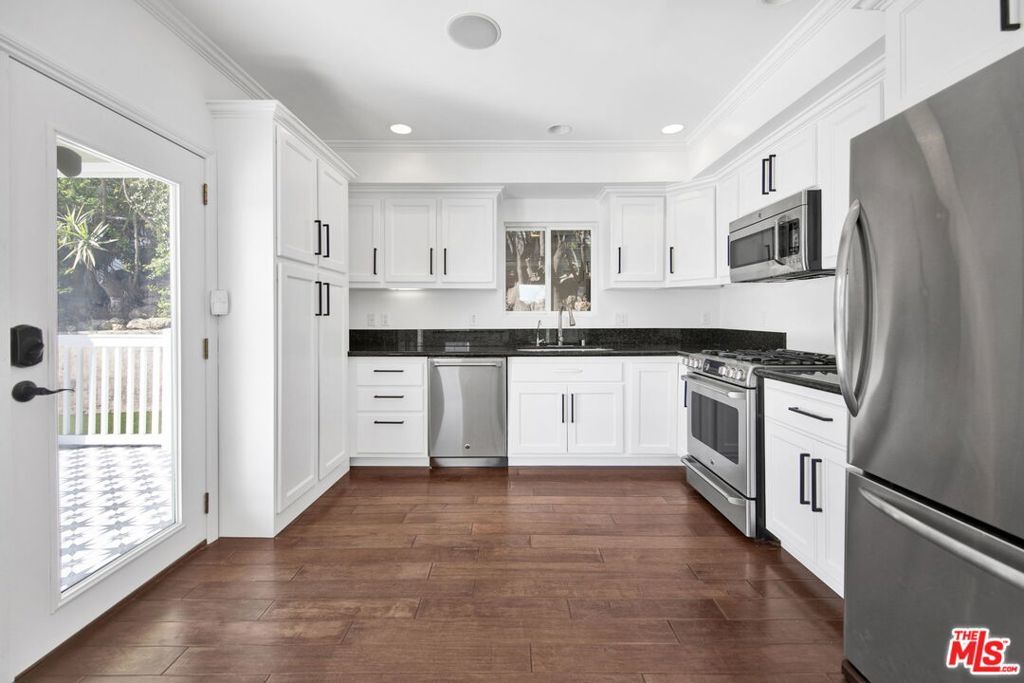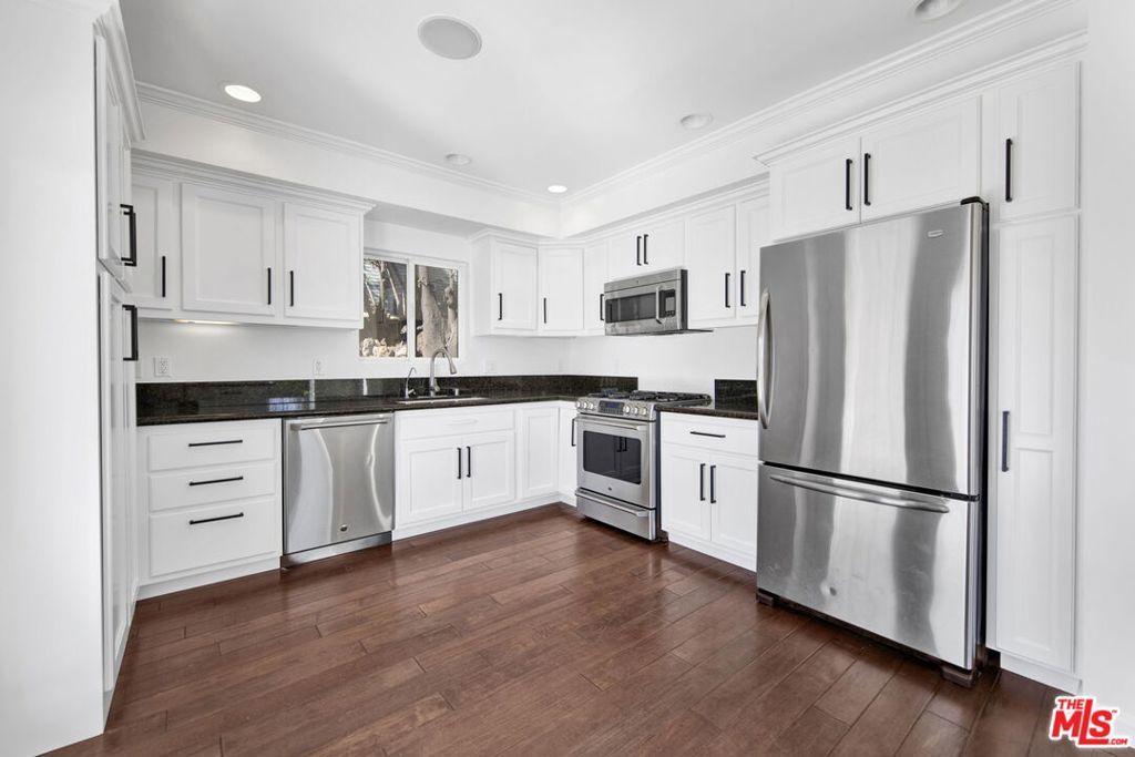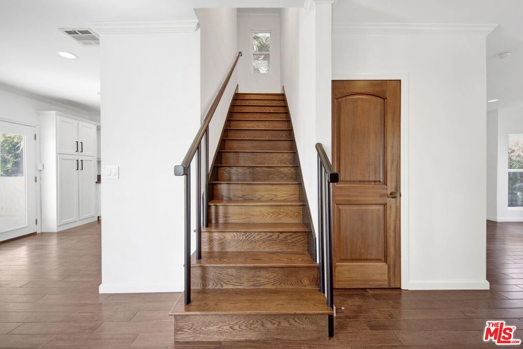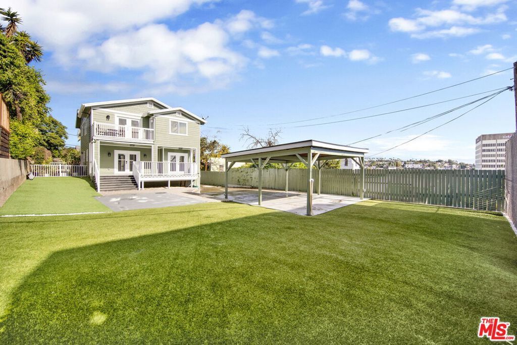 Welcome home to a residence designed for both style and comfort. The journey begins with a large front yard area and a dedicated walkway leading to the entrance, complemented by a charming covered front porch. Inside, you'll find a home that has been upgraded with modern, stylish fixtures. The main living area is perfect for relaxation or hosting, featuring recessed lighting and integrated speakers throughout the ceiling in each room. To ensure your comfort regardless of the season, the house is equipped with two separate HVAC zones, allowing you to control the climate of the first and second floors independently. The heart of the home is a fully equipped kitchen, boasting elegant White Shaker cabinets and premium stainless-steel appliances. An island provides a sleek transition from the kitchen to the dining area. Both of these spaces feature French doors that open onto a large outdoor deck, creating a seamless indoor-outdoor flow. For your convenience, the home also includes a large laundry room complete with built-in cabinets and additional storage area. The outdoor amenities are truly the crown jewel of this property. A massive covered patio area is large enough to host dozens of guests while providing a spectacular view of Downtown LA. Beyond the patio, the huge backyard offers plenty of space for recreational sports or simply soaking in the lovely LA weather. Additionally, the property provides the convenience of covered parking for two cars. All bedrooms are situated on the second floor to ensure a peaceful environment. The primary bedroom is particularly spacious, offering a private balcony and a large walk-in closet. The spa-like experience continues in the bathroom, where you can let your worries fade away under a luxurious waterfall shower equipped with a high-end steam system, designed for ultimate relaxation. Two additional bedrooms are connected by a shared balcony, which also offers spectacular views.