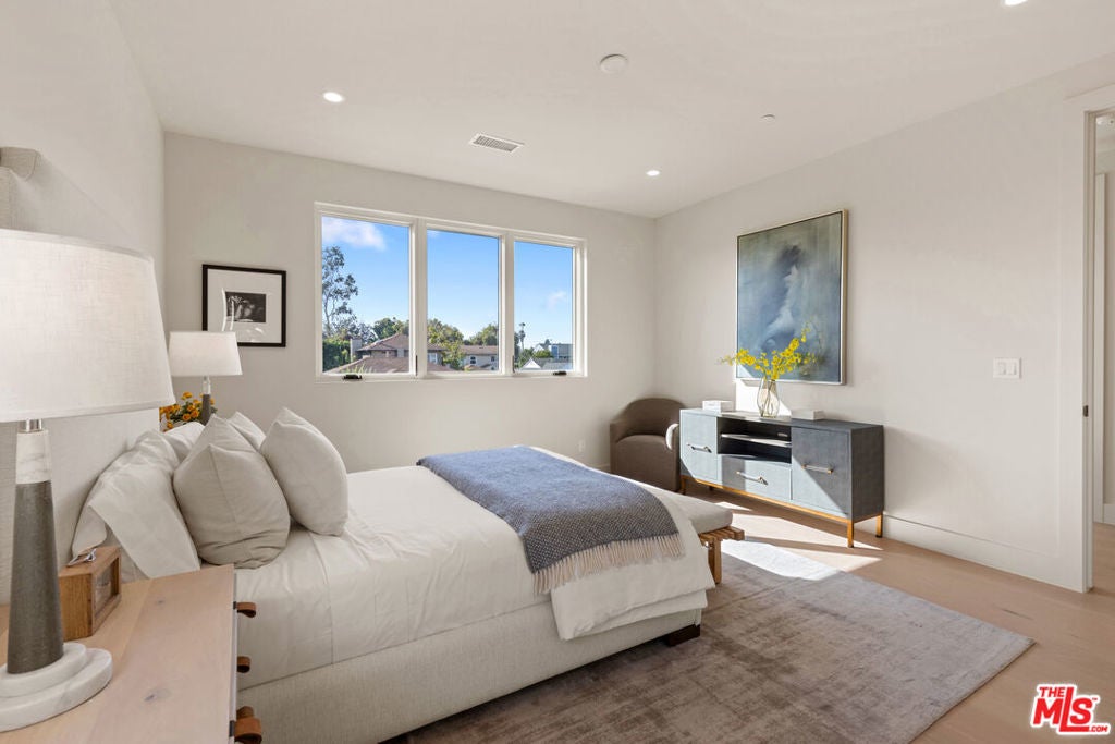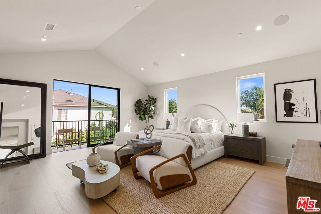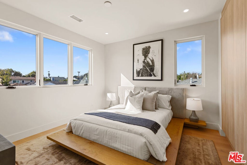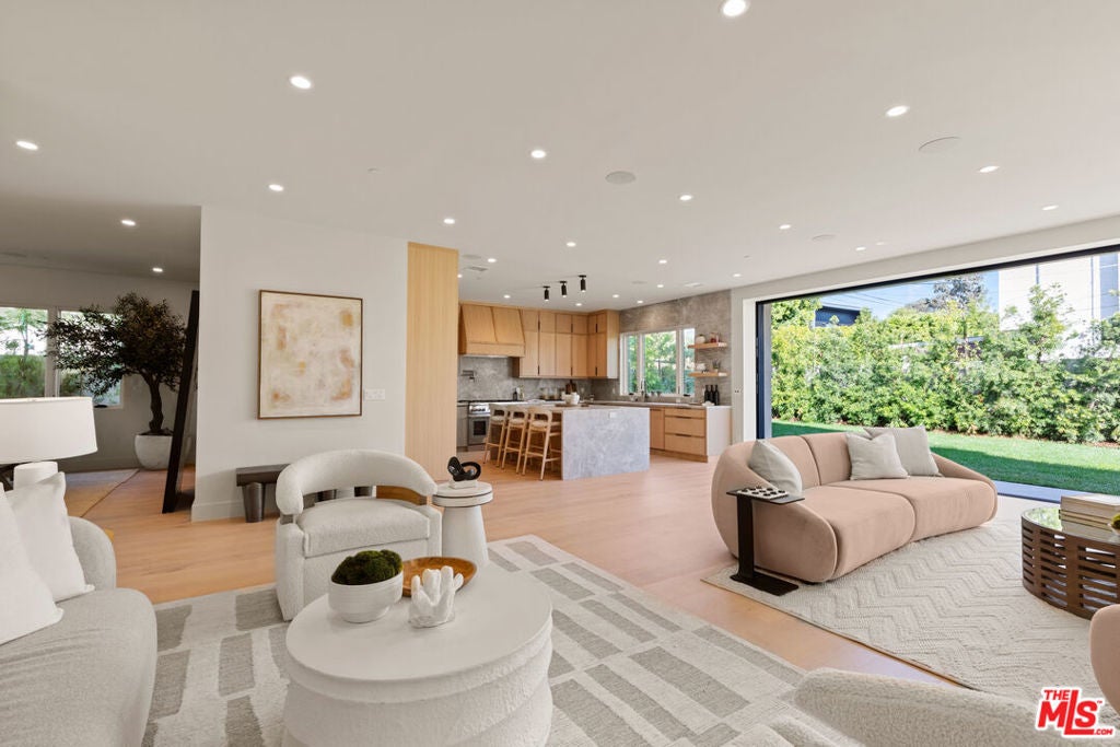 Experience elevated living in this brand-new architectural residence located in the heart of prime Mar Vista. Spanning approximately 4,134 square feet, this 5-bedroom, 4.5-bath modern masterpiece seamlessly blends clean contemporary lines with warm, timeless finishes. Light-filled open living spaces feature expansive windows and Fleetwood pocket doors, creating a true indoor-outdoor California lifestyle, complete with a thoughtfully designed mudroom-style entry closet.The stunning Taj Mahal stone chef's kitchen is equipped with custom rift oak cabinetry, top-of-the-line Thermador appliances, and a sleek butler's pantry, while natural stone finishes carry throughout the spa-inspired bathrooms. An elegant dining area flows effortlessly into the spacious family room, highlighted by plaster built-in shelving and integrated built-in speakers, ideal for both everyday living and entertaining. Built-in speakers extend throughout the home, enhancing comfort and functionality.A private main-level in-law suite provides ideal flexibility for guests or multi-generational living. Upstairs, the luxurious primary suite impresses with vaulted ceilings, a spa-like bath featuring an oversized walk-in shower, a custom walk-in closet, and refined finishes throughout.Designed for year-round enjoyment, the outdoor living spaces offer inviting lounge areas, while wired security cameras provide added peace of mind. Ideally situated just minutes from Venice, Abbot Kinney, Santa Monica, Culver City, and Mar Vista's best dining and shopping, this exceptional home offers the perfect blend of style, comfort, technology, and location.