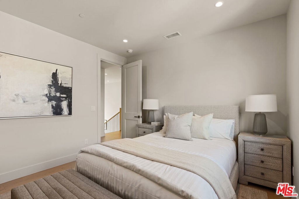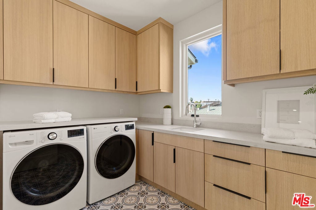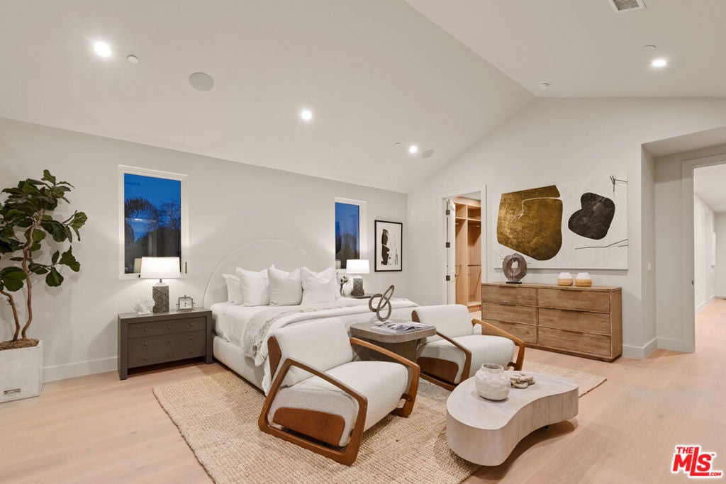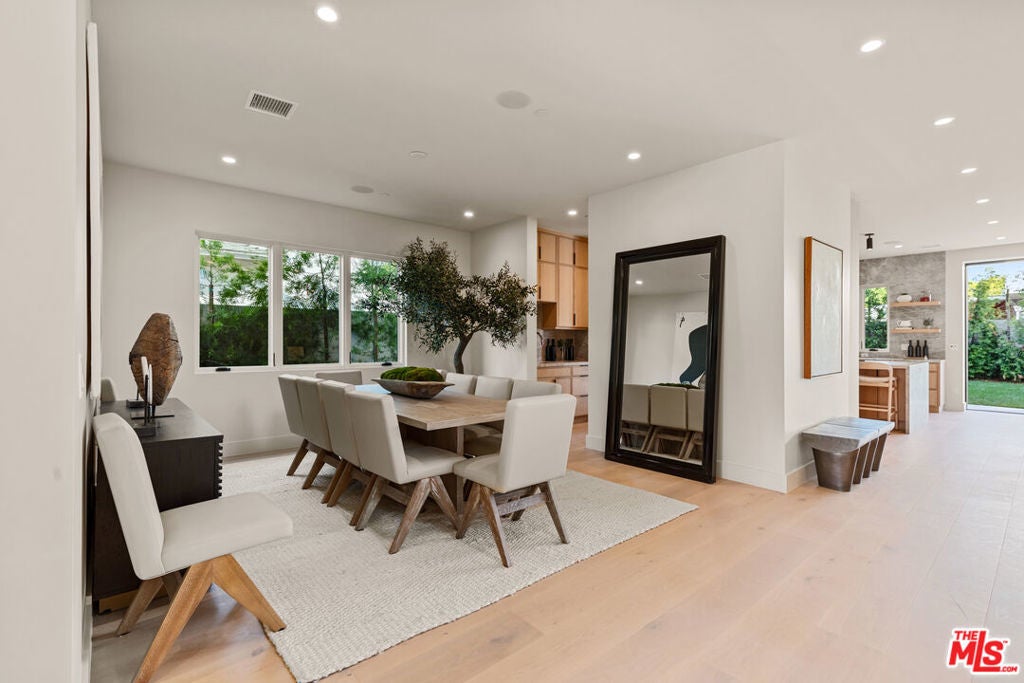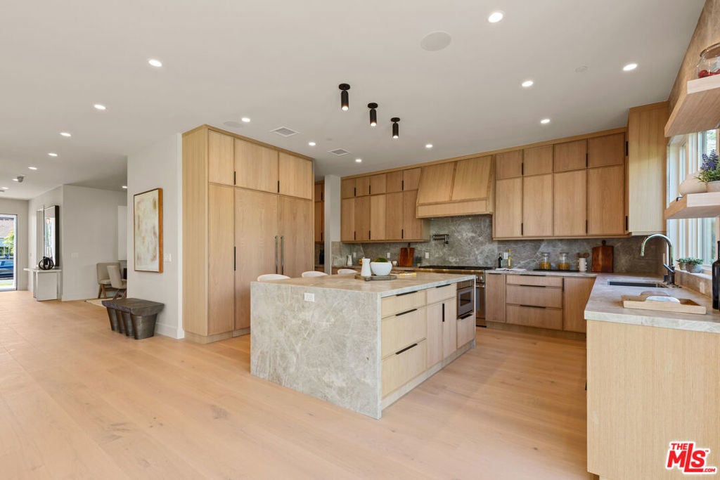 Experience elevated living in this brand-new architectural residence located in the heart of prime Mar Vista. Spanning approximately 4,134 square feet, this 5-bedroom, 4.5-bath modern masterpiece seamlessly blends clean contemporary lines with warm, timeless finishes. Light-filled open living spaces feature expansive windows and Fleetwood pocket doors, creating a true indoor-outdoor California lifestyle, complete with a thoughtfully designed mudroom-style entry closet.The stunning Taj Mahal stone chef's kitchen is equipped with custom rift oak cabinetry, top-of-the-line Thermador appliances, and a sleek butler's pantry, while natural stone finishes carry throughout the spa-inspired bathrooms. An elegant dining area flows effortlessly into the spacious family room, highlighted by plaster built-in shelving and integrated built-in speakers, ideal for both everyday living and entertaining. Built-in speakers extend throughout the home, enhancing comfort and functionality.A private main-level in-law suite provides ideal flexibility for guests or multi-generational living. Upstairs, the luxurious primary suite impresses with vaulted ceilings, a spa-like bath featuring an oversized walk-in shower, a custom walk-in closet, and refined finishes throughout.Designed for year-round enjoyment, the outdoor living spaces offer inviting lounge areas, while wired security cameras provide added peace of mind. Ideally situated just minutes from Venice, Abbot Kinney, Santa Monica, Culver City, and Mar Vista's best dining and shopping, this exceptional home offers the perfect blend of style, comfort, technology, and location.