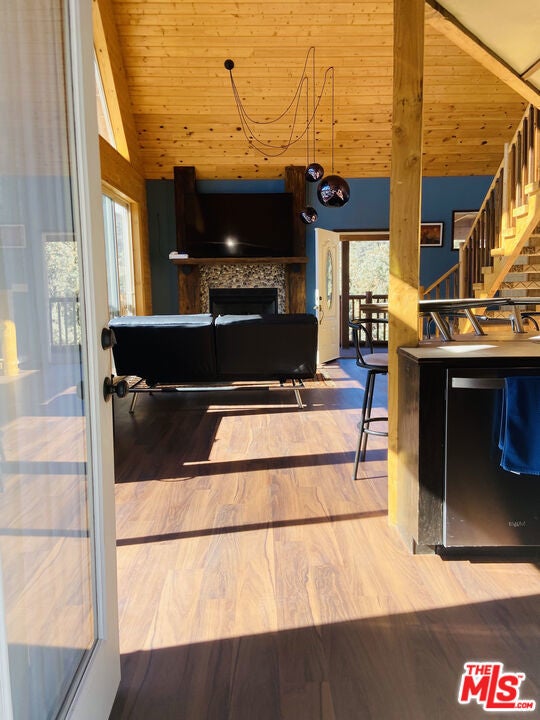 Breakfast Bar, Separate/Formal Dining Room, High Ceilings, Open Floorplan, Loft, Attic, Cathedral Ceiling(s), Ceiling Fan(s), Living Room Deck Attached, Two Story Ceilings, Wood Product Walls