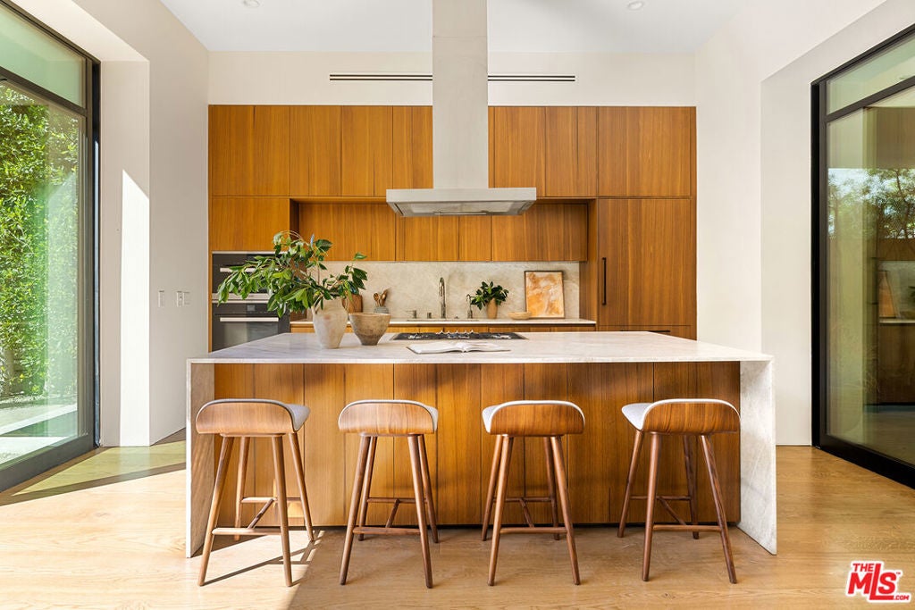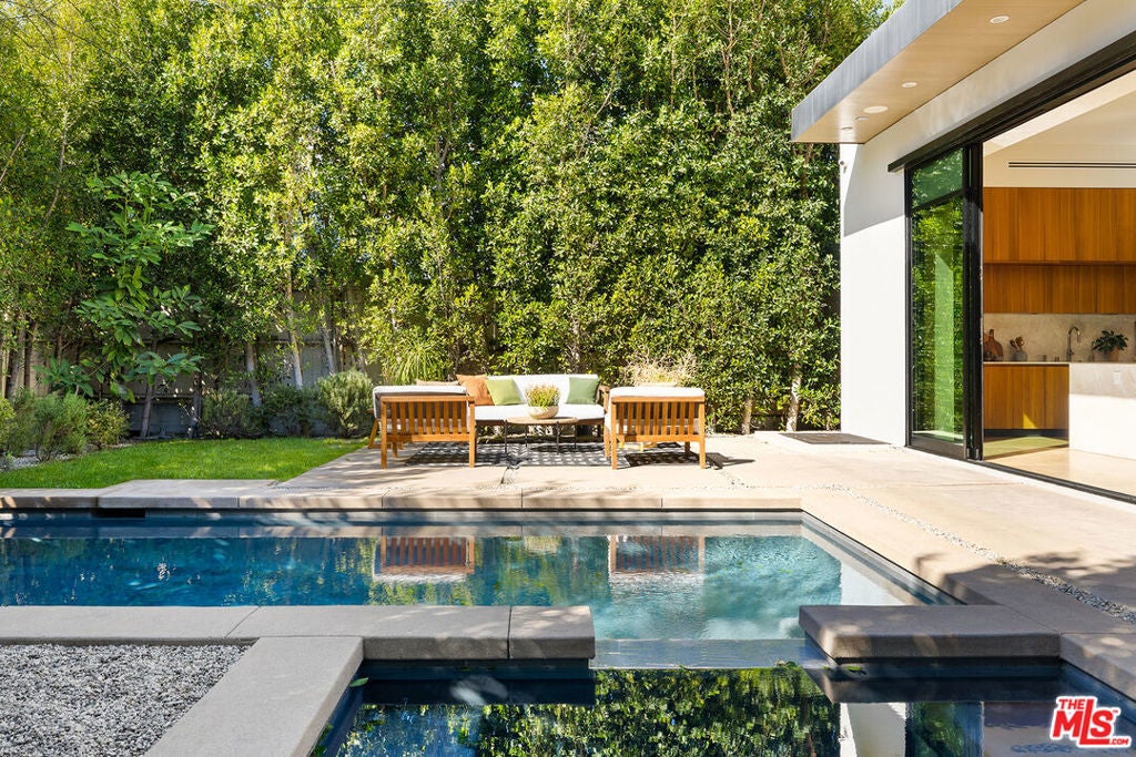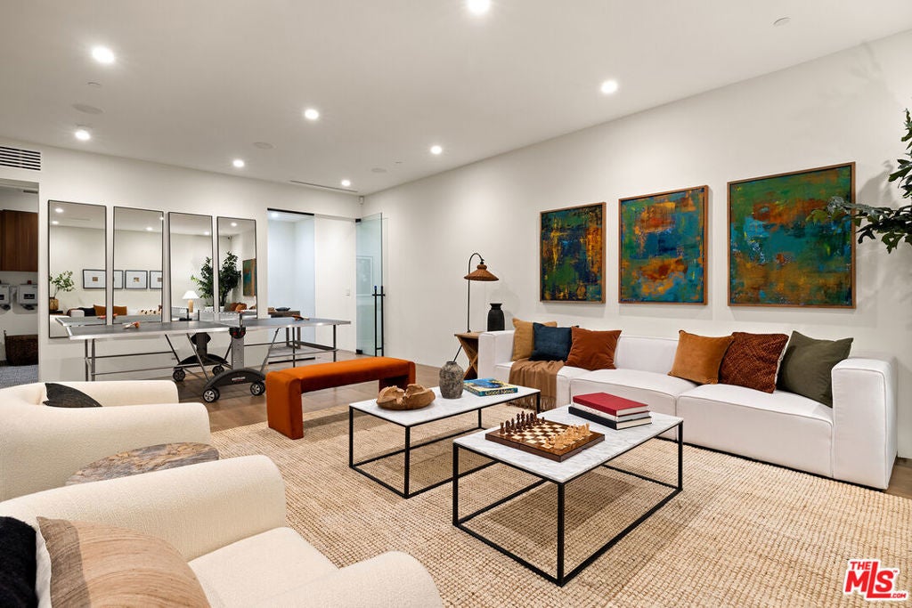 Located in West Hollywood's most desirable and exclusive pocket of homes, 8732 Rangely sets a new standard for modern elegance. Soaring ceilings, exquisite finishes, seamless indoor/outdoor transitions, and a day-lit lower level complete with Theater, offers a once-in-a-lifetime opportunity to own a true showpiece home. The main level features a grand entryway which opens up to spacious formal dining and entertaining eras, all surrounded by Fleetwood sliding doors, allowing natural light to pour in + an effortless flow to the stunning yard with pool and spa. The chef's kitchen features top-of-the-line appliances, custom cabinetry, and natural Taj Mahal quartzite countertops. Upstairs, you'll find three generously sized bedrooms, including a jaw-dropping primary suite with private balcony, elegant bath, and oversized walk-in closet. The finished lower level is a true highlight, offering an eat-in kitchen, lounge, theater, bonus room, and additional bedroom, ideal for hosting guests or enjoying a night of entertainment. For the discerning buyer, this home combines architectural sophistication with unparalleled comfort moments from world-class dining, shopping, wellness, and entertainment destinations, including Cecconi's, Catch, Great White, Maxfield, Silver Springs, and more...
