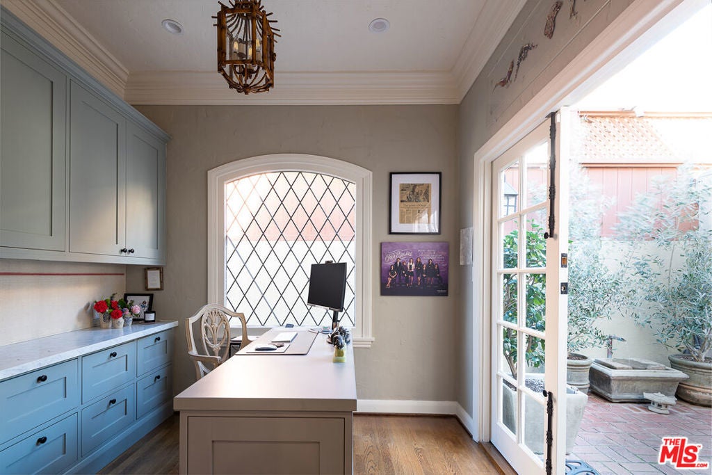 This classic 1925 Country English home sits on a quiet street, North of Montana in Santa Monica. The home and grounds have been luxuriously restored and updated throughout. It's an extraordinary indoor/outdoor entertaining house with a fully equipped gourmet kitchen with large adjacent family room, both opening to the back yard. The first floor features two private office spaces. There are four bedrooms upstairs and one bedroom suite downstairs. The primary suite includes sunny window seats, indulgent primary bath and large walk-in closet. A spacious and private outdoor garden includes a blue tiled pool, hot tub, mature fruit trees and English garden house. Available for the month of July!