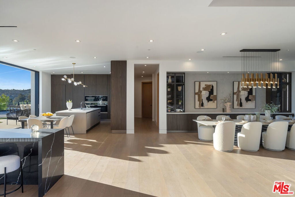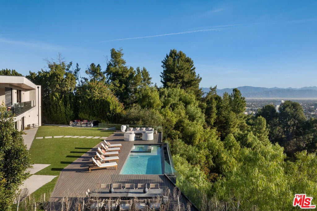 Nestled on a tranquil cul-de-sac within Encino's exclusive Royal Oaks neighborhood, this breathtaking estate redefines luxurious living. Privately set behind gates, the property boasts sweeping views and an expansive floor plan designed for both comfort and sophistication. The main level features a gym, state-of-the-art theater, office, and an en-suite guest bedroom. Seamlessly connected living, dining, and kitchen spaces open to a stunning backyard, where panoramic vistas enhance every moment. Outdoor living is elevated with a cozy fire-pit lounge, a summer kitchen, and an al-fresco dining area, creating an idyllic retreat.The primary suite offers a true sanctuary with unparalleled views, dual walk-in closets, and a spa-inspired bathroom. The upper level adds to the allure, with four spacious guest bedrooms and an inviting upstairs lounge. Crowned by a rooftop deck, the home provides a second summer kitchen and ample space to entertain under the stars. This rare gem combines privacy, elegance, and modern amenities, offering a lifestyle of unparalleled sophistication in one of Encino's most sought-after locations.