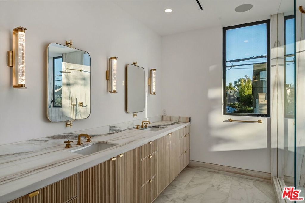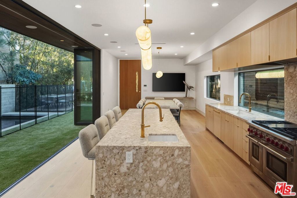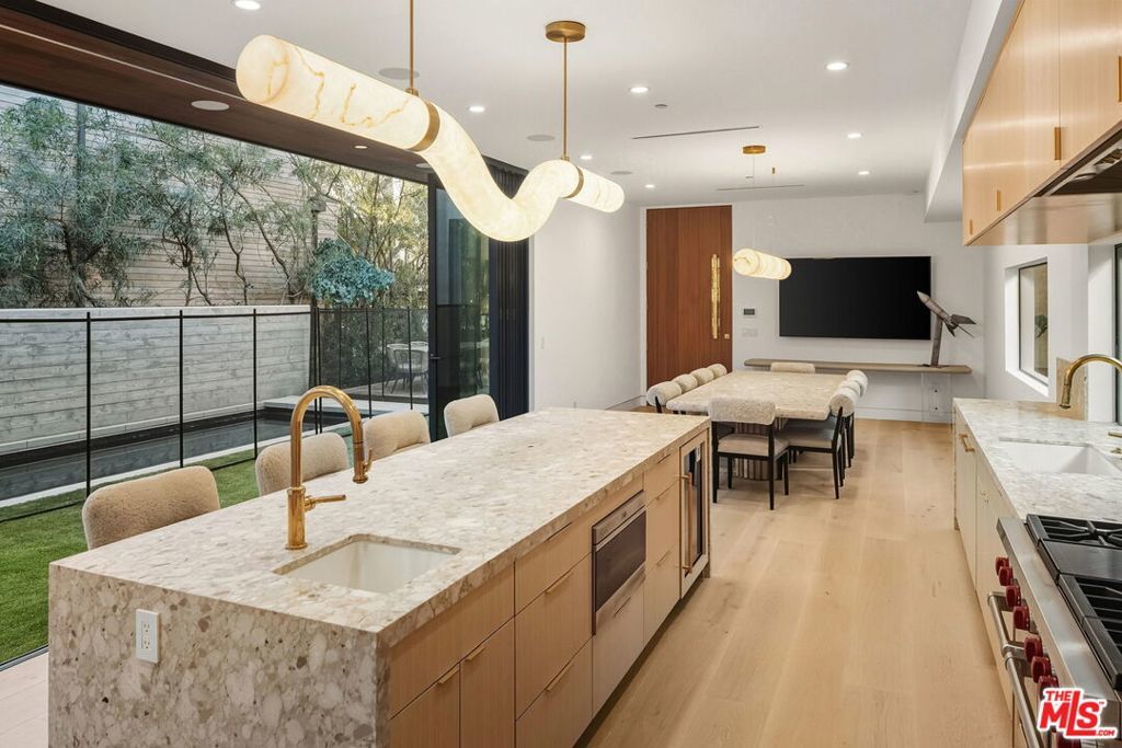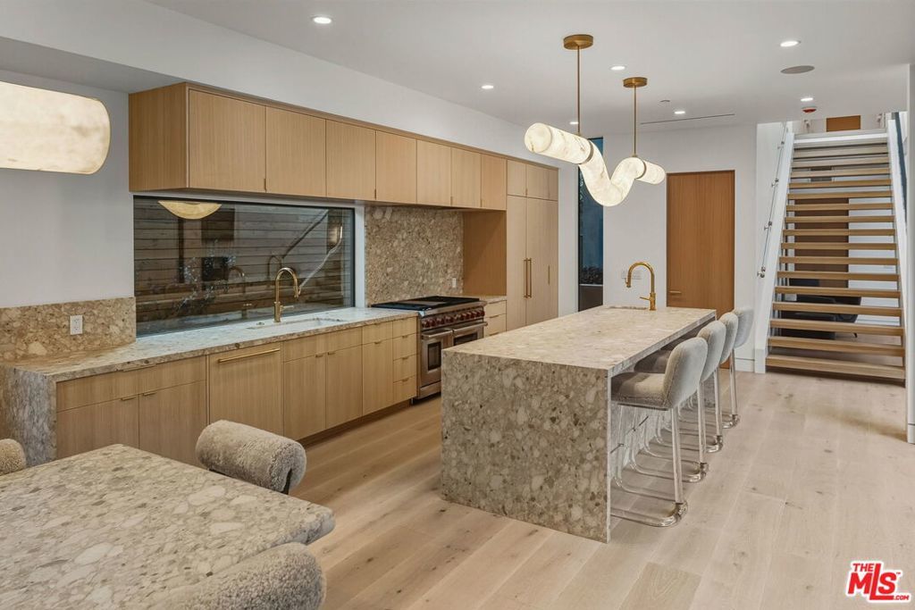 Tucked away in one of Venice's most desirable pockets, just moments from the iconic Abbot Kinney, this brand-new architectural residence is a private offering of rare design pedigree. Meticulously crafted by renowned local architects Electric Bowery, the home seamlessly blends bold materiality with coastal sophistication. Step inside to soaring ceilings, an open-concept floor plan, and curated spaces designed for elevated living. Every finish has been thoughtfully selected and masterfully executed from the live brass Honey Onyx powder room to the Corteccia Natural Quartzite in the first-floor bath, the Tiger Eye Onyx in the guest bath, and the showstopping Calcutta Sunset marble in the primary suite. The media room's Lilac Marble wall adds a refined, artistic touch. At the heart of the home, the kitchen is a true statement piece featuring Ceppo marble countertops, white oak custom cabinetry, and designer Rejuvenation hardware. The adjacent dry bar, clad in striking Rosso Levanto marble, sets the tone for sophisticated entertaining. Indoor-outdoor living is effortless here, thanks to a tranquil pool that blurs the line between the interior and lush exterior spaces. A spacious three-car garage completes the home, ensuring both functionality and convenience. This is not just a home, it's a design-forward sanctuary where luxury, privacy, and location converge. Private showings available to qualified buyers. FINISHES & FURNITURE LIST AVAILABLE UPON REQUEST. ALSO AVAILABLE FOR LEASE $38,000/Mo.