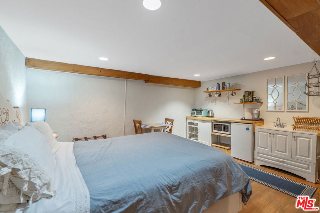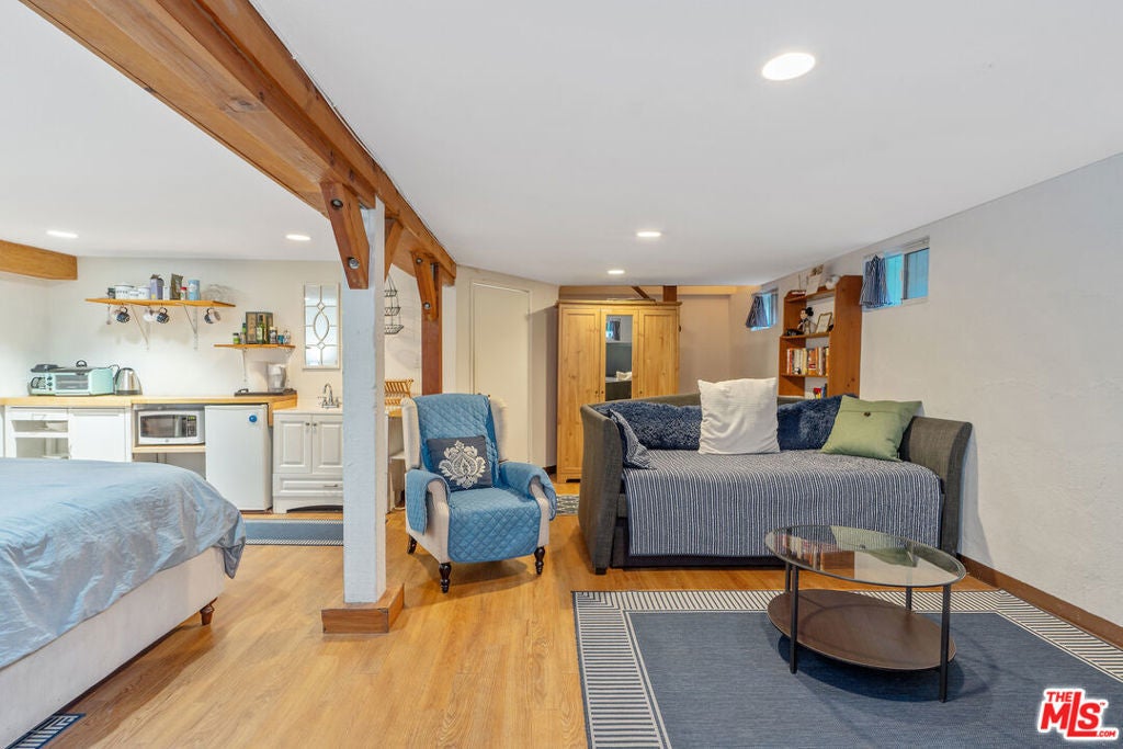 *Property to be delivered vacant* Steps from the sand, this beautifully maintained Craftsman Duplex offers a 2,739 SF Craftsman home with ocean views, timeless charm, and complemented by a completely separate and enchanting 600 SF one-bedroom apartment located above a remarkable three-car garage. Ideally located just steps from the ocean, Shutters and the beloved Capo Italian restaurant and cafe, this truly one-of-a-kind property is nothing short of magical and located on a quiet and historic block. The home is graced by a welcoming front yard and patio, as well as a serene rear courtyard that thoughtfully separates the two structures. The main residence features a fully converted living area on the lower floor with kitchenette and full bath, offering flexible use as part of the home or as a private living space. Classic Craftsman elegance abounds, with ocean views, a wood-burning fireplace, original hardwood floors, and beautifully preserved architectural details throughout. The en-suite primary bedroom enjoys ocean views, a large bath with separate tub and shower and a spacious walk-in closet. A charming breakfast nook and delightful kitchen complete the experience, highlighted by a pristine Gaffers & Sattler retro double oven with six burners, a rare and striking centerpiece. The separate one-bedroom apartment, located above the garage and accessed through the courtyard and Vicente Court, is filled with character and offered in move-in condition. Live the quintessential Santa Monica beach lifestyle, where breathtaking sunsets, surfing, walking, and biking are part of everyday life with nearly everything conveniently accessible by foot or bicycle. This Craftsman Duplex is a must see!