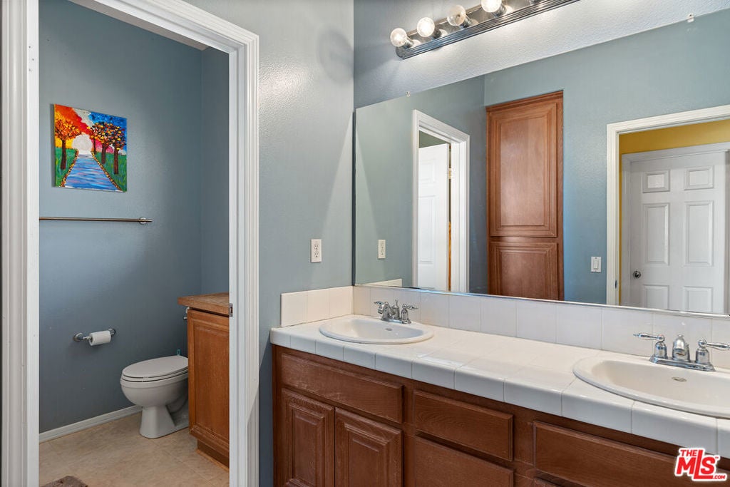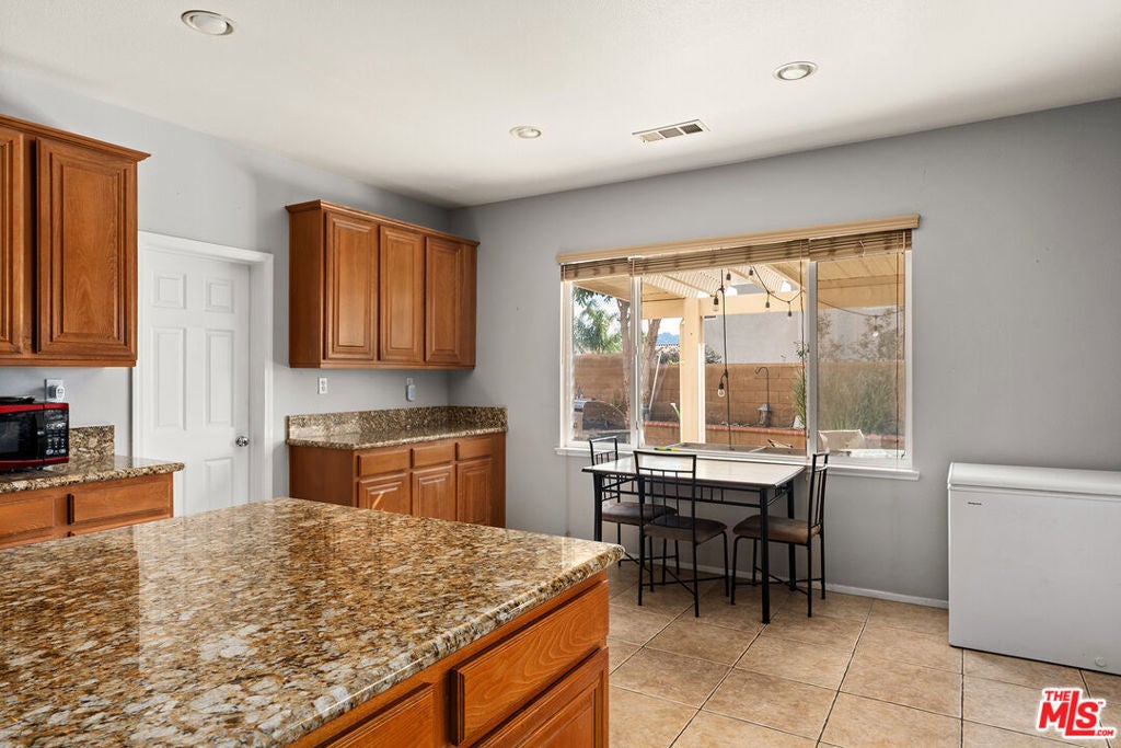 Welcome to this expansive 5-bedroom home on a desirable corner lot in Stevenson Ranch, offering the space, flexibility, and everyday convenience today's buyers are looking for. Designed to accommodate evolving needs, the well-laid-out floor plan features two bedrooms and a full bath downstairs, ideal for guests, extended family, or a private office, along with separate living, family, and formal dining areas that provide comfortable room for both daily living and larger gatherings. The expansive kitchen anchors the home with a large center island, extended granite countertops perfect for casual dining, abundant cabinetry, and an exceptionally large pantry providing impressive storage. Upstairs, you'll find three generously sized bedrooms, including a spacious primary suite, plus a built-in desk and cabinetry along the upstairs landing offering a convenient and functional workspace. The private backyard features mature landscaping with palm, lemon, and orange trees, a covered patio, built-in BBQ, and a generous cement entertaining area ready to enjoy or personalize to suit your style. Ideally positioned near Pico Canyon Elementary, parks, shopping, dining, and convenient 5 Freeway access within highly regarded Blue Ribbon schools, this is an opportunity to secure meaningful square footage and create lasting value while making it truly your own in Stevenson Ranch.