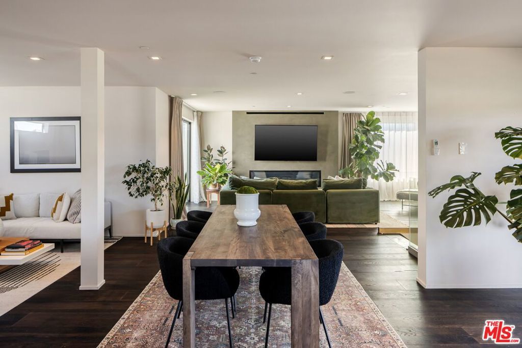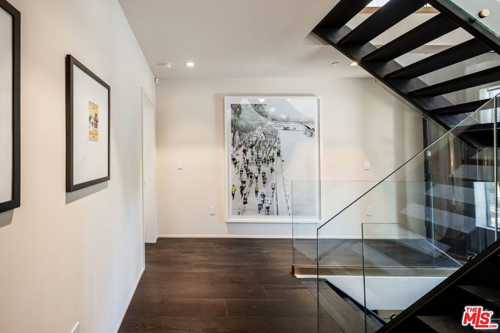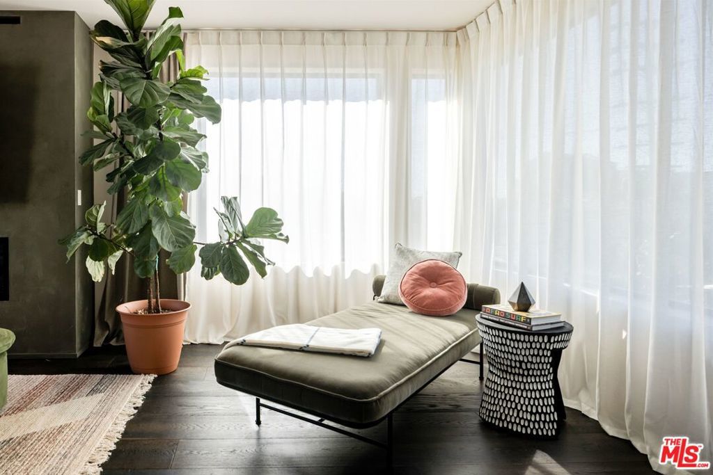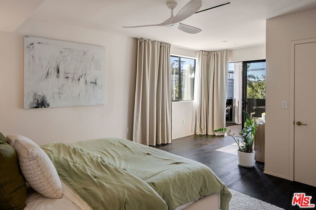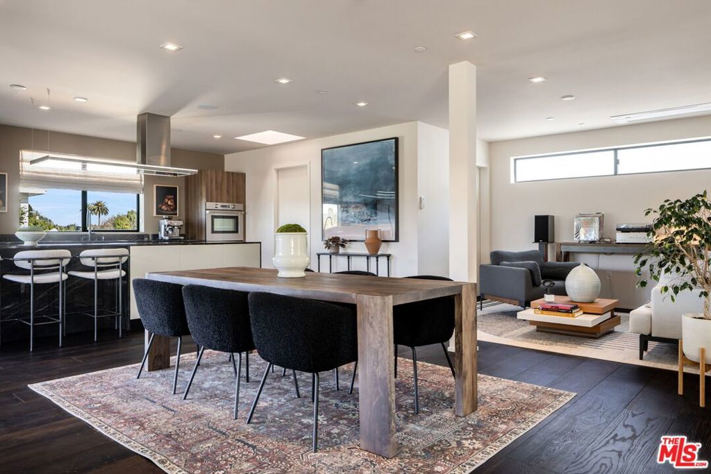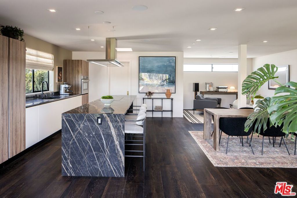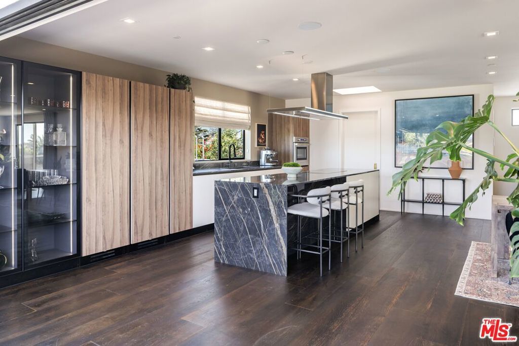 1208 Palms is designed for the way people want to live today, light-filled, open, and effortlessly connected to the outdoors. This contemporary architecture captures sweeping views of mountains and treetops while expansive windows bring sunlight into every corner. A striking floating staircase connects all three levels, complemented by a sleek capsule elevator that services each floor, combining sculptural design with everyday convenience. The top floor is the heart of the home, where the kitchen, dining, and living areas unfold in one expansive open space framed by walls of glass. The Italian-designed kitchen features Fisher & Paykel appliances, a Bosch dishwasher and microwave, custom shelving, a walk-in pantry, and a beautifully designed island made for gathering. Large sliding glass doors open to a generous outdoor deck, extending the living space into the fresh air. A built-in fireplace anchors the room, creating a warm focal point whether hosting friends or enjoying a quiet evening at home. Three of the four bedrooms are located on the second floor. The primary suite opens to a spacious private balcony and features a custom Italian-designed walk-in closet along with a spa-inspired bathroom with dual Italian vanities, a floating tub, and a porcelain shower. The additional bedrooms include custom Italian millwork closets and private en suite bathrooms, offering comfort and privacy for family or guests. On the first floor, the fourth bedroom offers flexibility as a guest suite, office, gym, or creative space. The entry level also includes a generous open area that flows directly to an outdoor patio, creating another inviting indoor-outdoor moment. The home is equipped with Savant Smart Home Automation with app-controlled lighting and AC, an integrated Sonos sound system, five Lorex security cameras, DoorBird entry, alarm system, prewired solar, and an installed EV charger. Custom California Closets are featured throughout, including the pantry. A two-car garage opens directly into the home. Ideally located at the corner of Palms and Penmar, you're just a short walk to neighborhood cafes and boutiques, with a new corner bodega opening across the street. Easy, elevated livingjust add your throws, candles, and bikes.