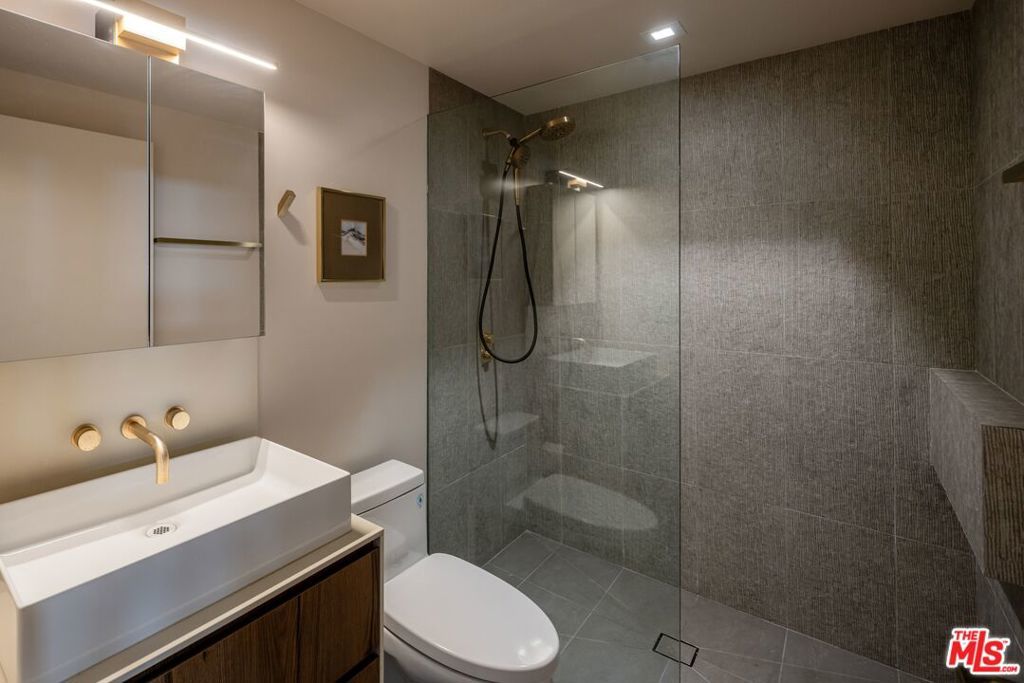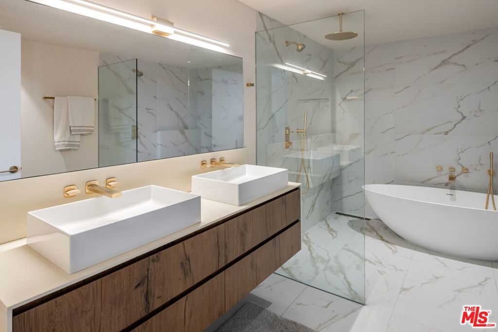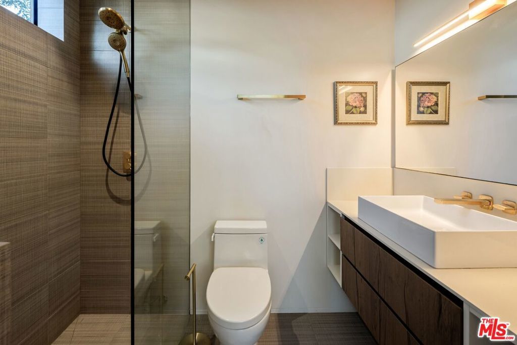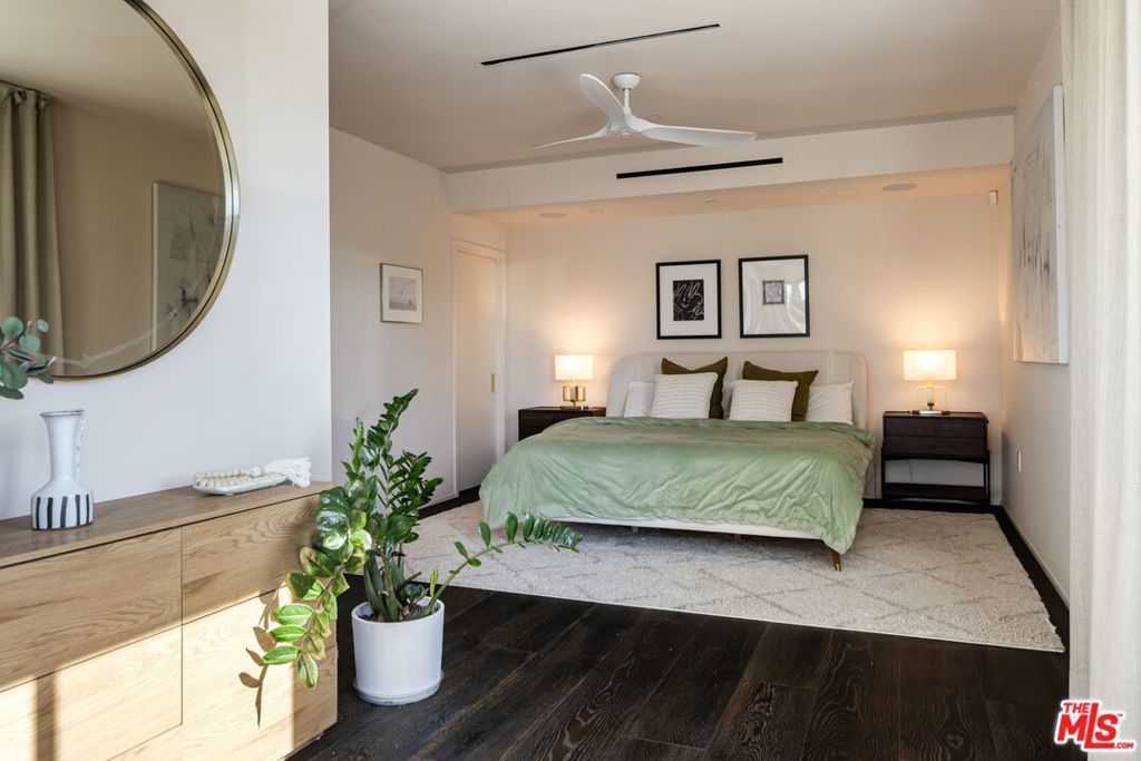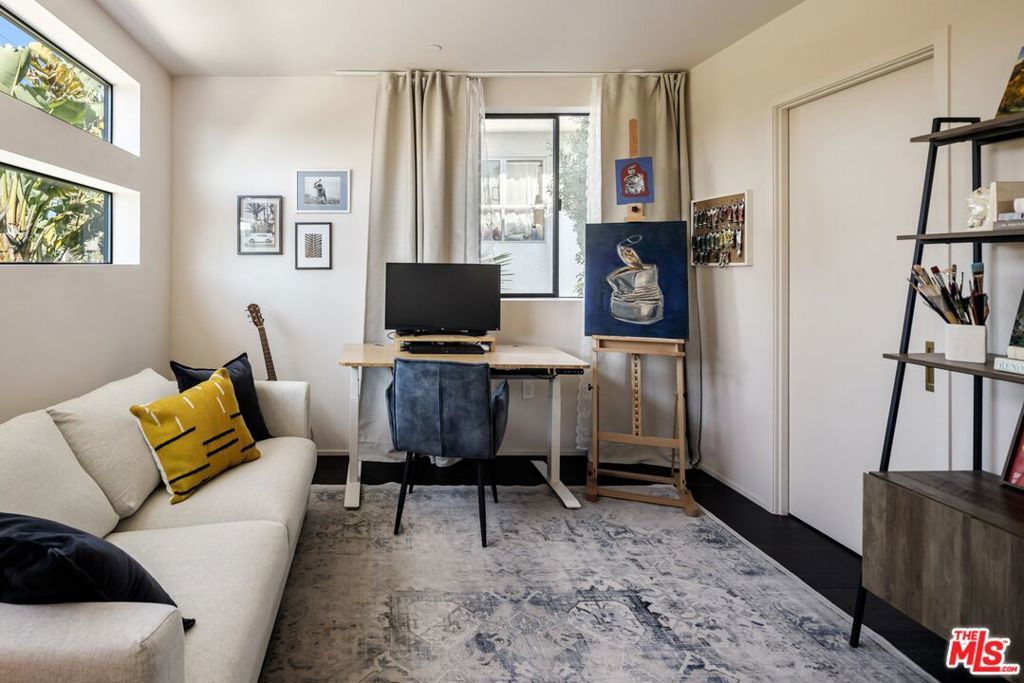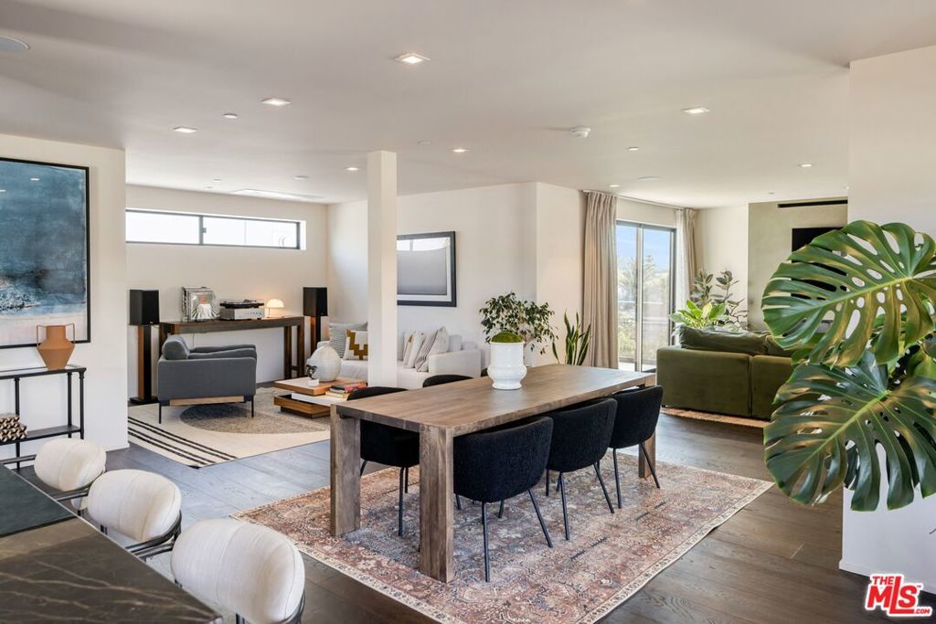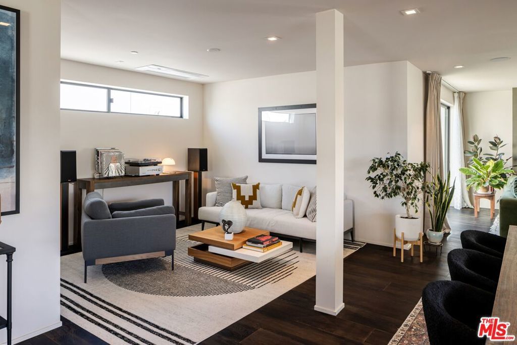 1208 Palms is designed for the way people want to live today, light-filled, open, and effortlessly connected to the outdoors. This contemporary architecture captures sweeping views of mountains and treetops while expansive windows bring sunlight into every corner. A striking floating staircase connects all three levels, complemented by a sleek capsule elevator that services each floor, combining sculptural design with everyday convenience. The top floor is the heart of the home, where the kitchen, dining, and living areas unfold in one expansive open space framed by walls of glass. The Italian-designed kitchen features Fisher & Paykel appliances, a Bosch dishwasher and microwave, custom shelving, a walk-in pantry, and a beautifully designed island made for gathering. Large sliding glass doors open to a generous outdoor deck, extending the living space into the fresh air. A built-in fireplace anchors the room, creating a warm focal point whether hosting friends or enjoying a quiet evening at home. Three of the four bedrooms are located on the second floor. The primary suite opens to a spacious private balcony and features a custom Italian-designed walk-in closet along with a spa-inspired bathroom with dual Italian vanities, a floating tub, and a porcelain shower. The additional bedrooms include custom Italian millwork closets and private en suite bathrooms, offering comfort and privacy for family or guests. On the first floor, the fourth bedroom offers flexibility as a guest suite, office, gym, or creative space. The entry level also includes a generous open area that flows directly to an outdoor patio, creating another inviting indoor-outdoor moment. The home is equipped with Savant Smart Home Automation with app-controlled lighting and AC, an integrated Sonos sound system, five Lorex security cameras, DoorBird entry, alarm system, prewired solar, and an installed EV charger. Custom California Closets are featured throughout, including the pantry. A two-car garage opens directly into the home. Ideally located at the corner of Palms and Penmar, you're just a short walk to neighborhood cafes and boutiques, with a new corner bodega opening across the street. Easy, elevated livingjust add your throws, candles, and bikes.