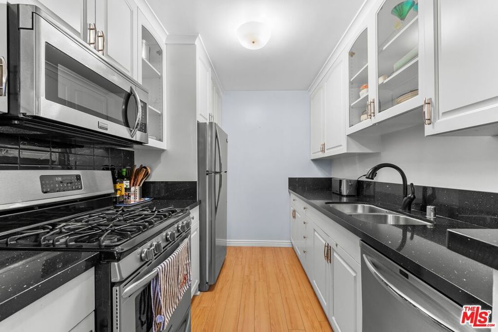 Ideally located just off Montana Avenue in prime Santa Monica, this updated 1-bedroom, 1-bath condominium offers 756 sq ft of well-designed living space filled with natural light. The open living and dining area, centered around a fireplace, works well for both everyday living and entertaining. The kitchen has been updated with modern countertops, ample cabinetry, stainless steel appliances, a gas stove, and a dishwasher. Hardwood floors run throughout, and plantation shutters cover the windows.The spacious bedroom includes generous closet space and a small balcony. The bathroom has been newly renovated and features a tub/shower combination. The unit includes two gated and covered parking spaces. The building has a brand-new roof and a sense of community with many long-term residents who have lived in the building for 15+ years. Another major plus: low HOA dues. Close to Montana Avenue, the 10 freeway, R&D Kitchen, Whole Foods, the beach, shopping, dining, fitness studios, and public transportation.