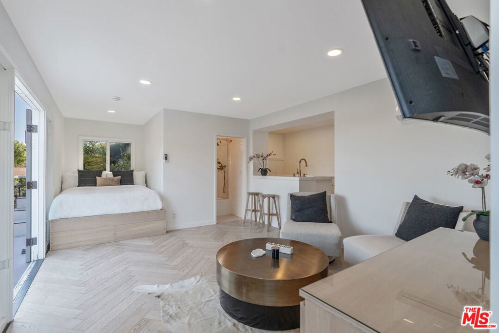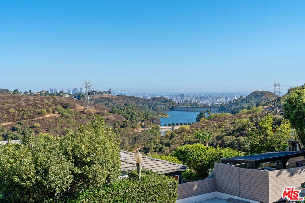 Perched in the Hollywood Hills, this fully furnished urban contemporary retreat captures sweeping views of the Santa Monica Mountains, Lake Hollywood, and glittering city lights, an escape from the rush of everyday life. Fenced and gated for privacy, the main residence features 3 bedrooms and 2 baths, while a separate guest studio/ADU with its own entrance, kitchenette, and bath offers flexible space for entertaining, office, gym, or overnight guests. Expansive windows, French doors, and open-concept living invite the outdoors in. From the dramatic fireside living room to the formal dining area and a full-length glass terrace, every space is designed to showcase the breathtaking scenery. The kitchen makes a stylish statement with quartz countertops, fresh color accents, breakfast island, and stainless appliances. The split-level primary suite is a sanctuary, with floor-to-ceiling windows, dual closets, a spacious sitting area, and a deluxe en suite bath. Recently reimagined from top to bottom, the home blends thoughtful design with modern convenience, including a brand-new roof, smart home technology, and a fully wired security system ready for seamless living from day one. This 2,705 sq. ft. residence offers rare tranquility in a sought-after Hollywood Hills West enclave known for its privacy and celebrity pedigree. A true hillside gem where design meets lifestyle.