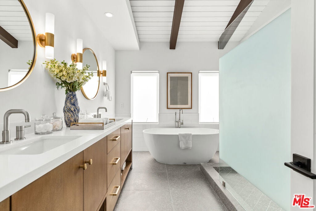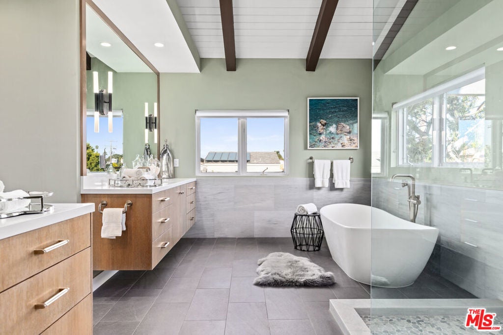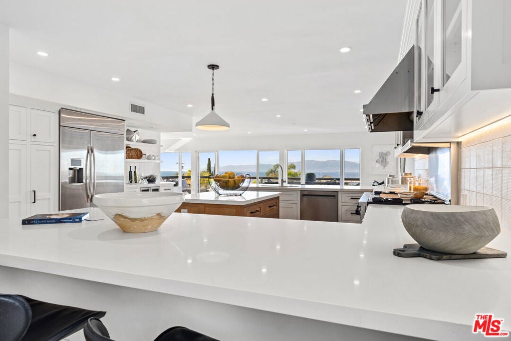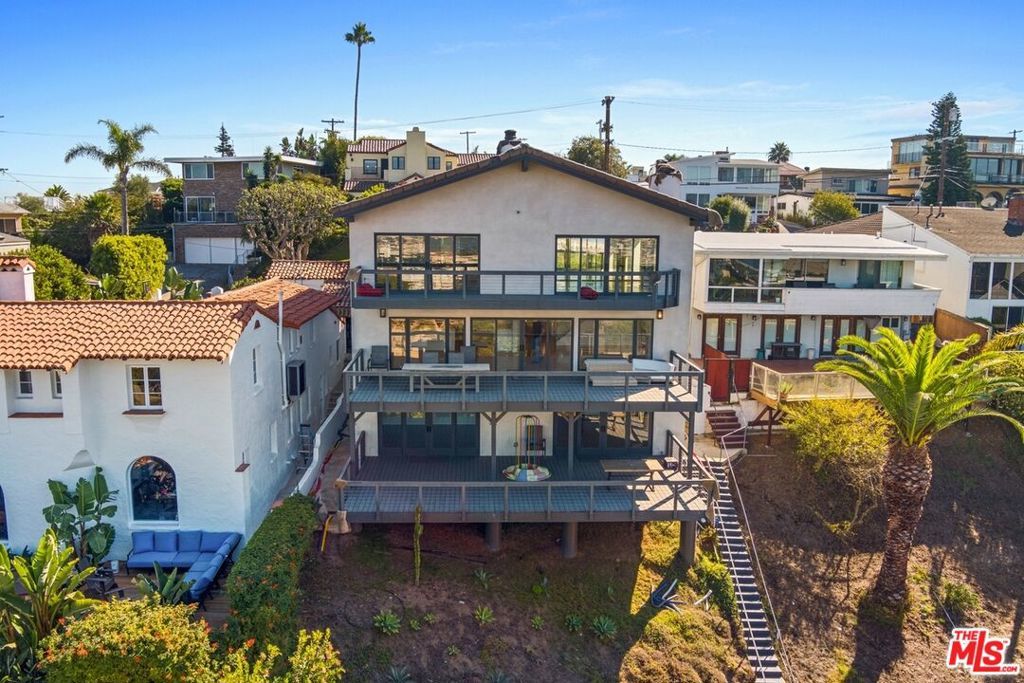 Nestled atop the coveted Playa del Rey Bluffs, this exceptional five-bedroom, five-bathroom residence offers an extraordinary coastal lifestyle with sweeping, unobstructed views. Ideally located just minutes from LAX, Playa Vista, Culver City, and Santa Monica, the home showcases some of the most dramatic vistas in Los Angeles, capturing the marina, city skyline, and water with breathtaking 180-degree panoramas. Upon entry, an expansive open floor plan immediately draws you in, designed to frame the views from nearly every angle. Rich hardwood floors run throughout, while the main living level is thoughtfully dedicated to entertaining, featuring a warm fireplace and oversized sliding bay windows that open to a spacious outdoor deck perfect for taking in the ocean breeze and unforgettable sunsets. The chef's kitchen serves as the heart of the home, anchored by a large stone-topped island ideal for both daily living and hosting. Outfitted with premium stainless steel appliances, including a commercial-grade gas range and oven, built-in microwave, and dishwasher, the kitchen is both functional and refined. An adjacent den or breakfast nook adds flexibility for casual dining or work-from-home needs. The upper level is reserved for the primary suite, a true private retreat with commanding marina and city views. Vaulted ceilings with exposed wood beams create a sense of volume and warmth, while the oversized walk-in closet offers custom built-ins for exceptional storage. The spa-inspired primary bath features dual modern vanities, a freestanding soaking tub, and a separate walk-in shower wrapped in floor-to-ceiling stone. On the lower level, a fully equipped in-law accessory dwelling unit provides outstanding versatility. Complete with its own kitchen, fireplace, and private balcony, this space is ideal for guests, extended family, or additional living flexibility. The bedroom on this level also features a fireplace and opens to a private patio, enhancing its retreat-like feel. Additional highlights include a two-car garage and ample street parking for guests. Public records reflect approximately 4,153 square feet; the property has been independently measured at approximately 5,300 square feet. Buyer to verify all square footage and permitted status to their satisfaction. This is a rare opportunity to experience elevated coastal living in one of Playa del Rey's most sought-after locations an entertainer's dream and a serene sanctuary by the sea.