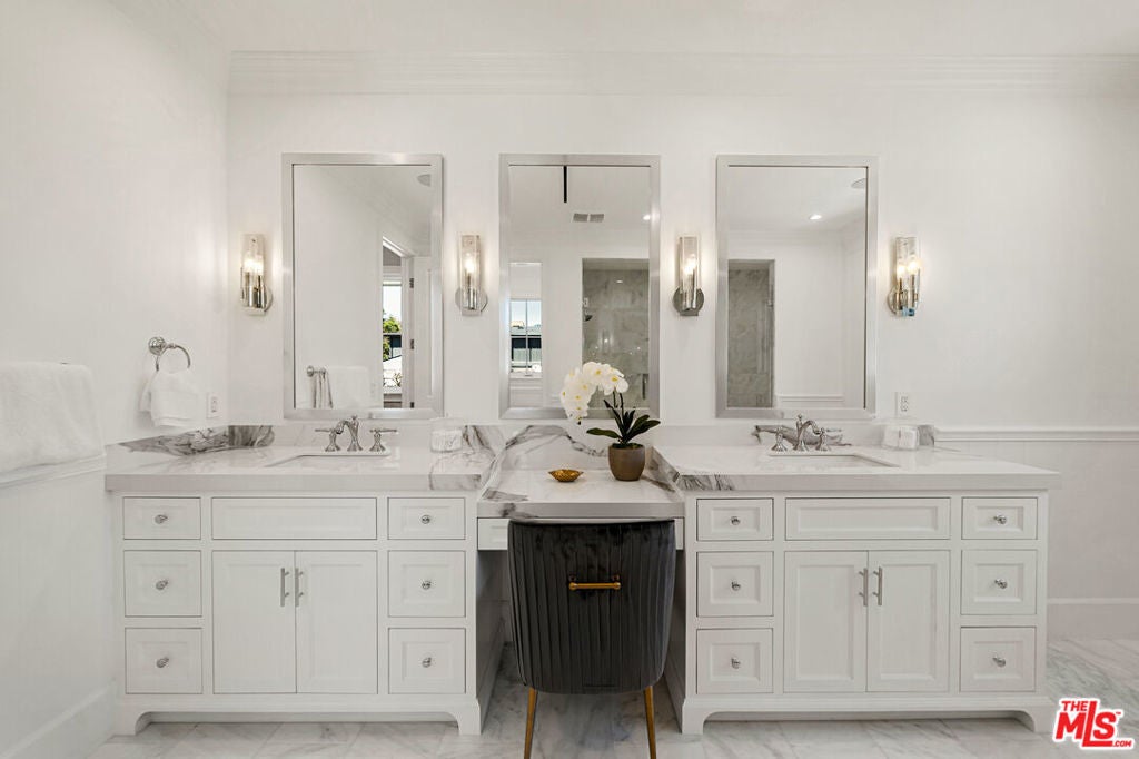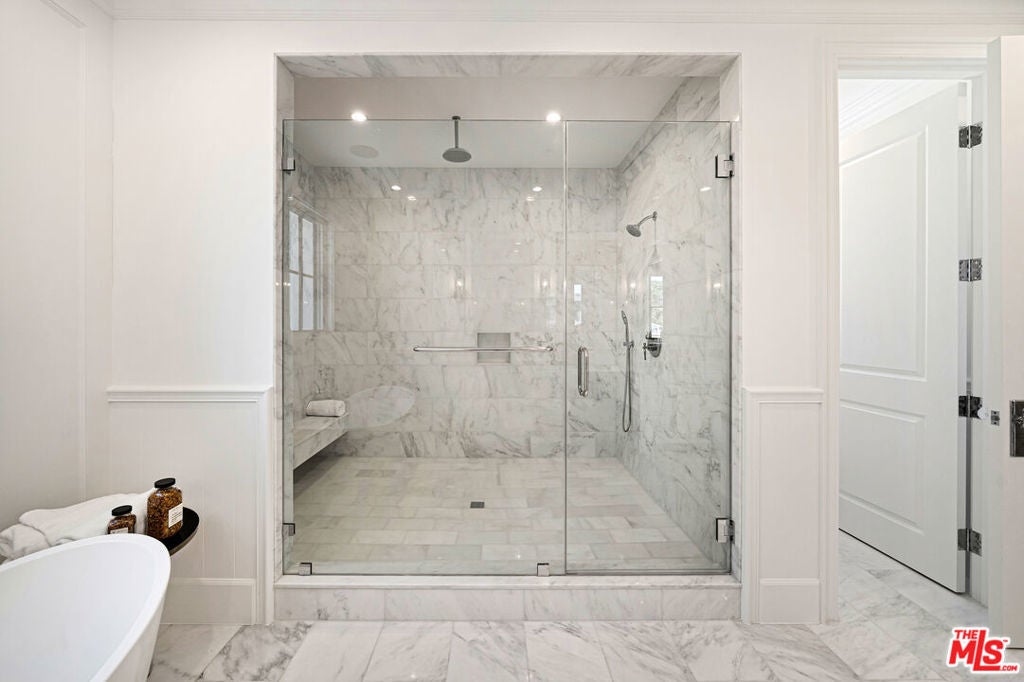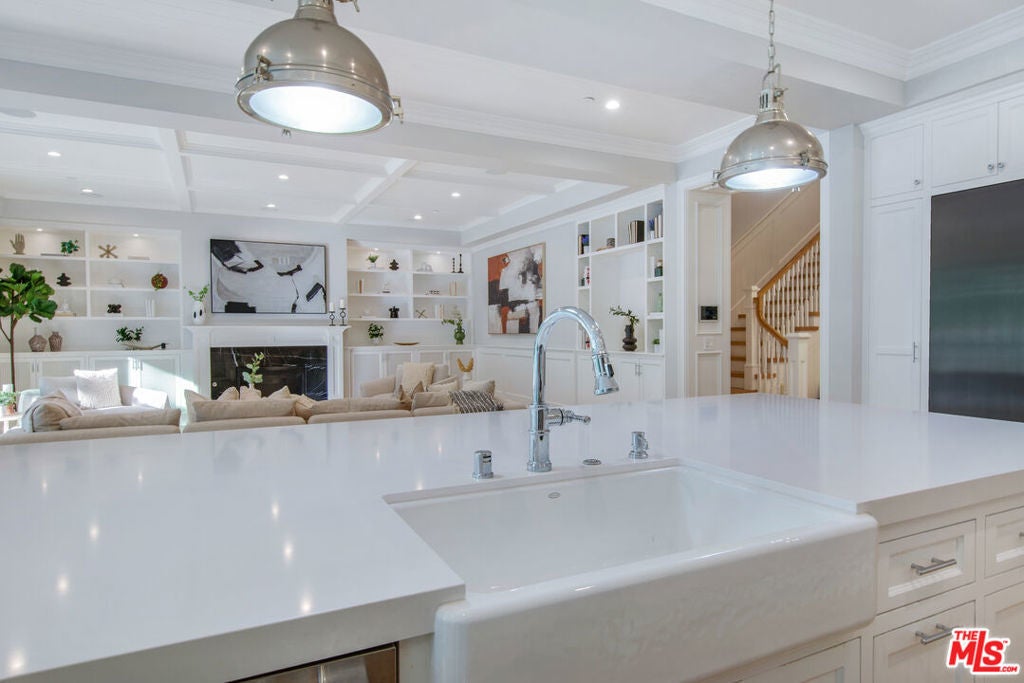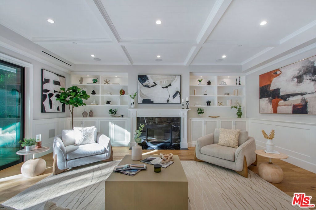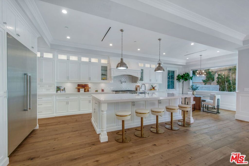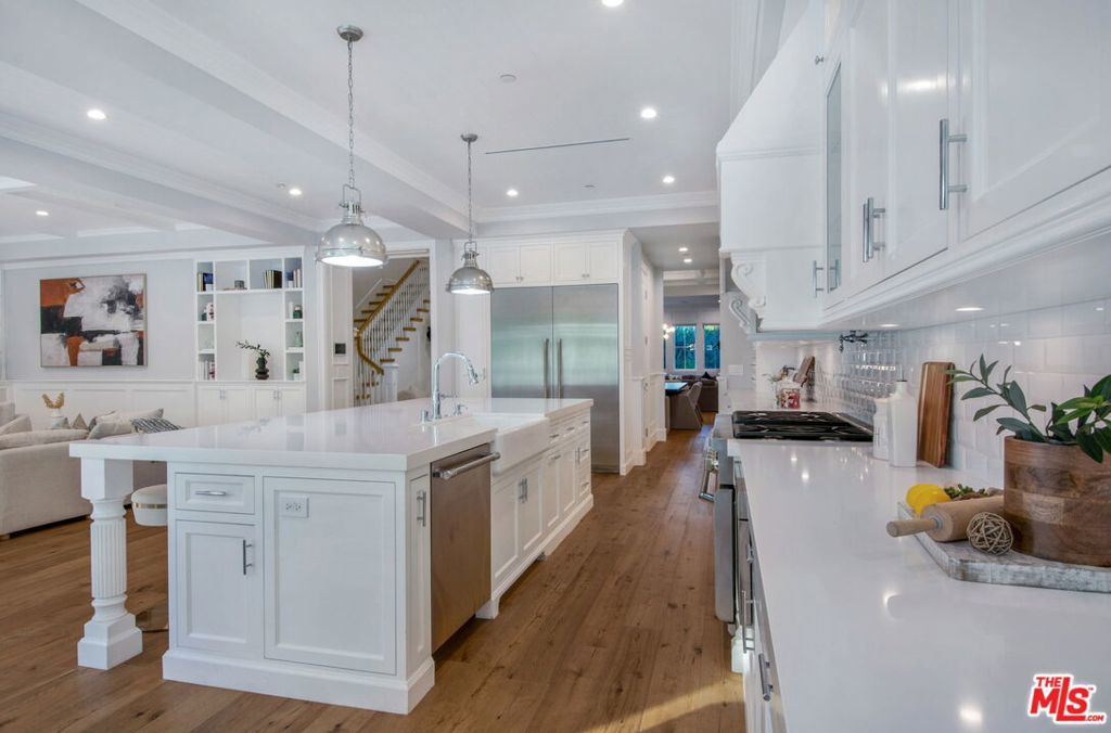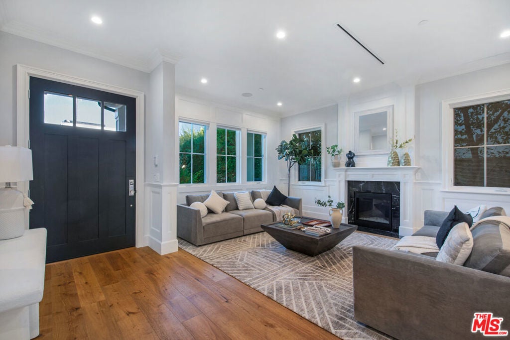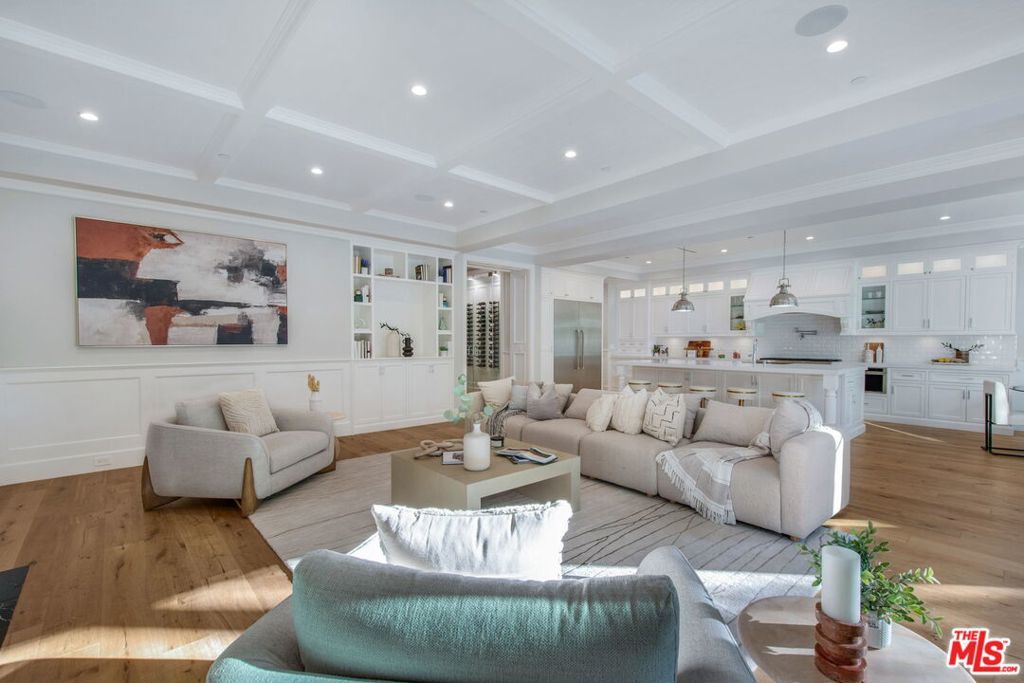 Sophistication and luxury is exemplified throughout this meticulously designed newly constructed Traditional style 6 bedroom 6.5 bathroom organic estate located in the highly desirable Beverly Grove. Offering impeccable craftsmanship and exceptional amenities, this ultra-private home boasts wide plank oak floors, 3 fireplaces, coffered ceilings, and custom curated finishes. The master suite features double entry doors, high-pitched ceilings, dual walk-in closets, fireplace, and a luxurious spa inspired bathroom. The chefs kitchen is dressed with brilliant white porcelain counter tops, a large center island, top of the line appliances and a butlers pantry. Desirable kitchen and family room combo flow seamlessly into the spacious sun filled backyard equipped with a bbq, pool and spa. Complete with smart home integrated home automation, state-of-the-art infrared security and fully solar powered this graceful, ultra private home is the perfect blend of traditional elegance with modern amenities.