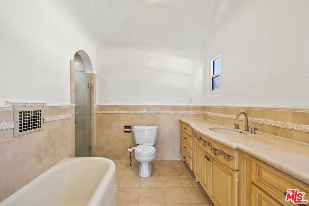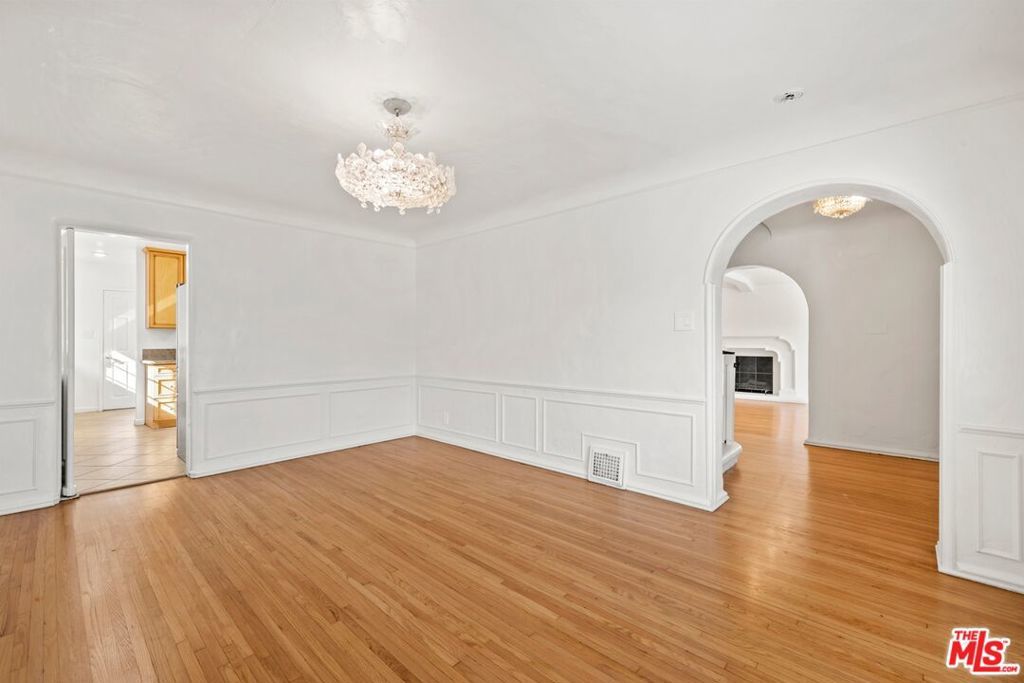 Beautifully detailed, light-filled 2-story residence offering 5 bedrooms + a den, guesthouse w 1 BD 1 BA, hardwood floors, wainscoting & more timeless character throughout. Enter the property into a foyer greeted by a magnificent stone staircase. First floor features include a formal dining room, a spacious living room with beamed ceilings, a decorative fireplace, elegant arched doorways, 1 bedroom, & a den/office. The generous kitchen features double sinks - ideal for kosher use, a stove, refrigerator, & a laundry room off the back. There is 1 bedroom downstairs & 4 upstairs. The primary suite includes an en-suite bath with a separate tub & shower & 2 closets. 2 of the bedrooms upstairs share a jack & jill bath. The guesthouse in the back provides extra privacy with 1 BD, 1 BA, & kitchen. The spacious, private backyard is perfect for relaxing or entertaining. This home is ideally located near The Grove & Pan Pacific Park.