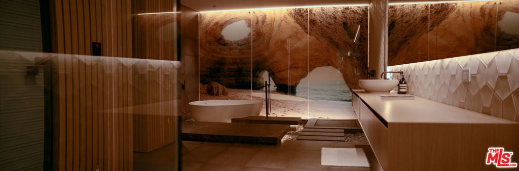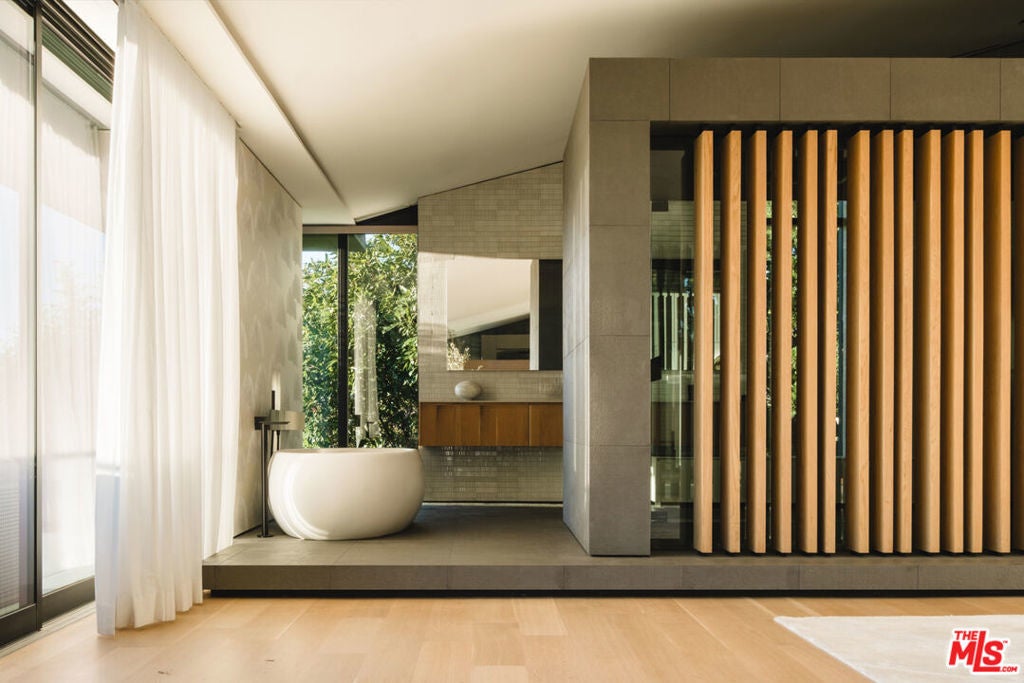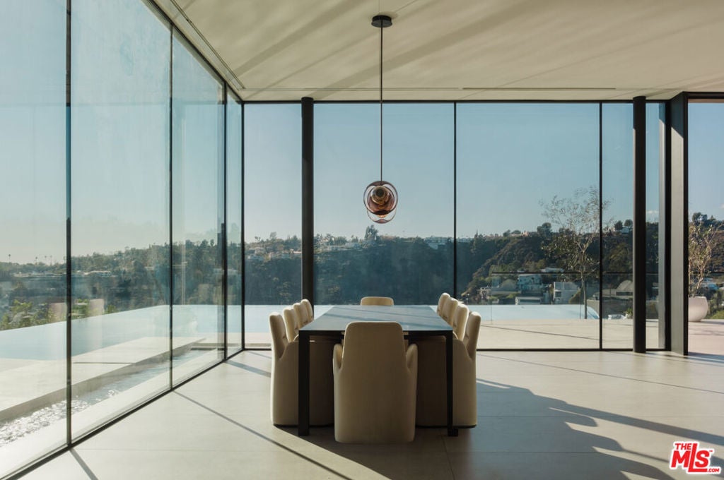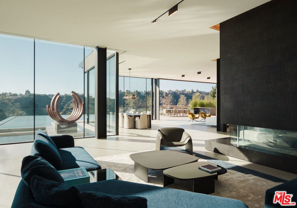 Step inside Horizon Estate, a masterclass in contemporary luxury, privacy, and architectural refinement. Designed with a seamless indoor outdoor philosophy, the residence is defined by clean lines, soaring volumes, and walls of glass that frame verdant canyon views while flooding the interiors with natural light. At the heart of the home, a breathtaking curved floating staircase serves as both functional art and architectural center piece, crowned by a cascading custom chandelier. The interiors unfold with a serene sophistication white oak wood floors, bespoke Italian porcelain tile finishes, and curated materials create an atmosphere of understated elegance. Living and entertaining spaces flow effortlessly with a top of the line kitchen and chef's kitchen by Poliform and Gaggenau, a state of the art bar with custom Corian backdrop anchored by a dramatic glass-enclosed wine cellar and expansive lounges that open directly to the grounds. The home theater is a love letter to the artistry of sound and picture with an immersive experience as you host your screenings. A spa-inspired primary suite offers a private sanctuary, complete with two sculptural soaking tubs, refined wood detailing, ample walk-in closets and tranquil garden outlooks. Outdoors, the estate transforms into a private resort. A striking infinity-edge pool and spa appears to float above the lush landscape, offering breathtaking canyon views. Thoughtfully designed terraces provide the perfect setting for both intimate relaxation and grand-scale entertaining.Horizon Estate is not just a residence; it is a statement of lifestyle a rare Bel Air offering that blends cutting-edge design, warmth, and timeless sophistication in one of Los Angeles' most prestigious enclaves.