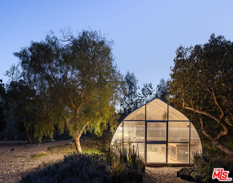 A RARE OPPORTUNITY TO BUILD A LEGACY ESTATE IN BONSALL CANYON. Set across nearly 10 acres and two parcels in iconic Bonsall Canyon, this regenerative farm presents an extraordinary opportunity to create a visionary Malibu compound just minutes from Zuma Beach. The property includes approved MARMOL RADZINER plans for three greenhouses totaling approximately 10,000 sq. ft., plus a 300 sq. ft. courtyard, offering a compelling foundation for future development, expansion, or a design-forward agricultural estate. A restored mid-century modern residence ideal as a guest house or interim home features walls of glass, high-beamed ceilings, artisan tile and sinks, hardwood floors, and a large stone fireplace, with seamless indoor-outdoor living. Wellness amenities include a sauna, ice bath, and outdoor tub and shower, along with rainwater collection. Additional structures include a detached guest house/apothecary (currently used as a private office), a detached kitchen for entertaining or education, and an artist/writer's studio overlooking the land. The grounds are a fully realized ecosystem, highlighted by an expansive orchard of 800 fruit and nut trees, including avocados, macadamia nuts, apples, pears, peaches, plums, apricots, citrus, pomegranates, cherimoya, and more. A seasonal creek winds through the property beneath mature sycamores and oaks, with the land thoughtfully restored and maintained without chemicals. Agricultural and equestrian infrastructure includes two large greenhouses home to the family-run Zuma Orchids since the 1970s, corrals, storage sheds, and a flat pad on the upper portion of the property, offering further potential. For decades, writers, thinkers, artists, and dreamers have been inspired by this truly transformative property.