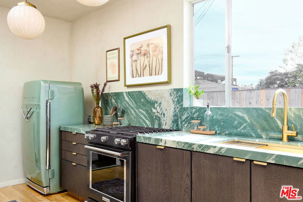 Welcome to your own private oasis in the heart of Venice Beach, featuring a beautifully updated main house and detached guest house just a short stroll from the buzzing energy of Abbot Kinney. This one-of-a-kind property blends timeless charm with stylish modern updates perfect for those looking to live, work, and relax in one of LA's most iconic neighborhoods. The landscaped main house offers three bright bedrooms and two full bathrooms, plus a lofted bedroom accessed by a statement staircase ideal as a creative space, guest room, or home office. The newly renovated kitchen is a showstopper, with custom cabinetry, quartz countertops, and designer lighting that elevates the entire home. Enjoy ultimate privacy in the lush yard with mature landscaping, only one direct neighbor, and a peaceful court street on the other side. Original character details, including a vintage fireplace, add warmth and soul throughout. Tucked away in the back, the detached guest house with a full bathroom offers endless flexibility as a guest suite, studio, or potential rental income. With alley access and private parking, this is Venice living at its absolute best. Don't miss this rare gem full of personality, style, and prime walkability!