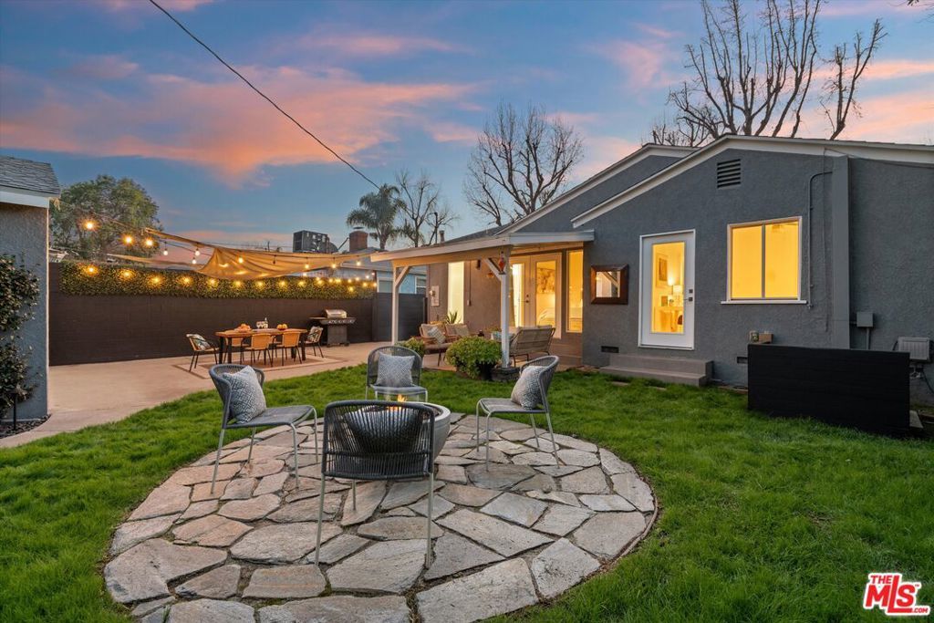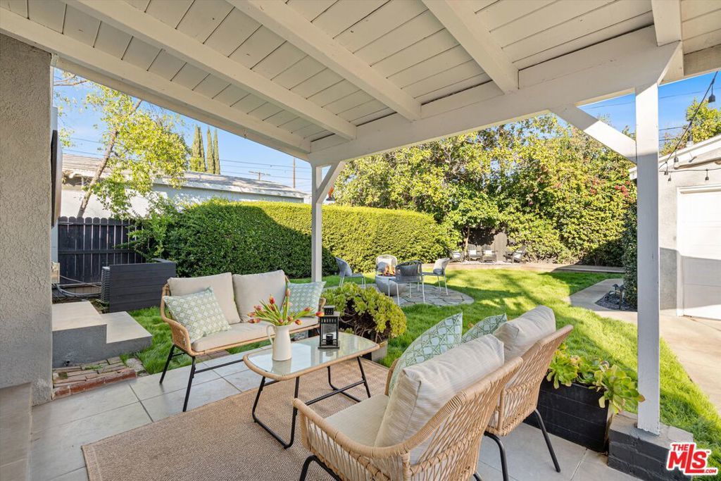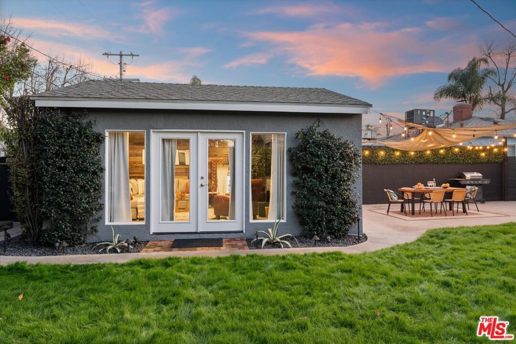 This delightful California Bungalow is a true Sherman Oaks sanctuary, offering the perfect blend of warmth, comfort, and effortless indoor-outdoor living. Featuring 3 bedrooms, 2 bathrooms, and a beautifully converted garage lounge/studio, this home is designed for both everyday ease and memorable entertaining.Step into a bright, welcoming interior filled with natural light. The spacious living room, complete with a cozy fireplace and oversized TV, is an ideal setting for relaxing evenings or gathering with friends and family. The adjacent remodeled kitchen is thoughtfully appointed with modern appliances, generous counter space, and a convenient laundry area perfectly suited for today's lifestyle.The primary suite is a peaceful retreat, featuring an en-suite bathroom with a large walk-in shower and charming veranda doors that open directly onto the garden. Two additional bedrooms offer flexibility for guests, a home office, or creative pursuits, complemented by a second full bathroom with tub and shower.Outside, discover an entertainer's dream backyard: a lush green lawn framed by tall privacy hedges, a fire pit with built-in seating, and multiple spaces to dine, unwind, and celebrate under the stars. Romantic twinkle lights illuminate the outdoor dining area, while a covered patio invites cocktails and conversation. A conveniently located BBQ just off the kitchen makes al fresco hosting effortless.The converted garage adds exceptional bonus space perfect as a TV lounge, studio, office, or private escape.Move-in ready and ideally located in one of Sherman Oaks' most sought-after neighborhoods, this home also sits within the highly acclaimed Kester Elementary School District, with Kester Elementary just approximately 1 mile away an easy and convenient nearby school option.