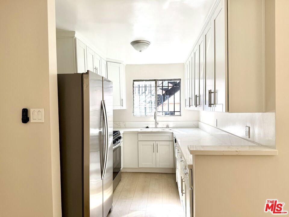 1 bedroom, 1 bath with a charming kitchen, Stainless steel appliances, and wood floors, are some of the highlights of this property. Additional features include: Reserved Parking, Kitchen w/fridge, dishwasher, oven and microwave. Great location in a boutique building with close proximity to desirable restaurants, grocery stores, coffee shops, La Cienega Park, houses of worship, Beverly Center, Pico/Robertson (Beverlywood), 405/10 freeways, and more. Some photos may be virtually staged.