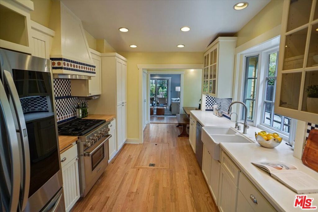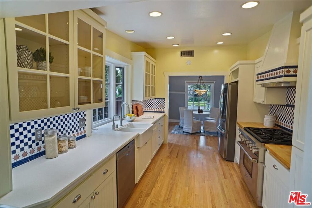 Experience quintessential Pasadena living, a perfectly remodeled California Craftsman Bungalow on one of the city's most enchanting tree-lined streets. This Arts and Crafts gem sits on a deep lot framed by historic streetlights and wide sidewalks. Inside, the open-concept living area shines with hardwood floors, a decorative tiled fireplace, and extensive built-ins. The gourmet kitchen is a chef's dream, featuring Shaker cabinetry, Quartz counters, built in filtered water, a farmhouse sink, and a premium Wolf stove. The home flows effortlessly into a spacious family room, that leads to a professionally landscaped backyard. This outdoor sanctuary boasts a majestic oak, brick patio, and vibrant gardens, a gardener's dream . The private Primary suite upstairs offers soaring ceilings, and breathtaking San Gabriel Mountain views. All bedrooms are generous in size. The guest bathroom will lure you into wanting to soak your worries away. Modern upgrades include a purified water filter, electric car charger, HVAC and a detached 2-car garage with a bonus 0ffice/room behind the garage. Located minutes from Metro, Eaton Canyon, and Victory Park, this home offers unrivaled walkability and style.