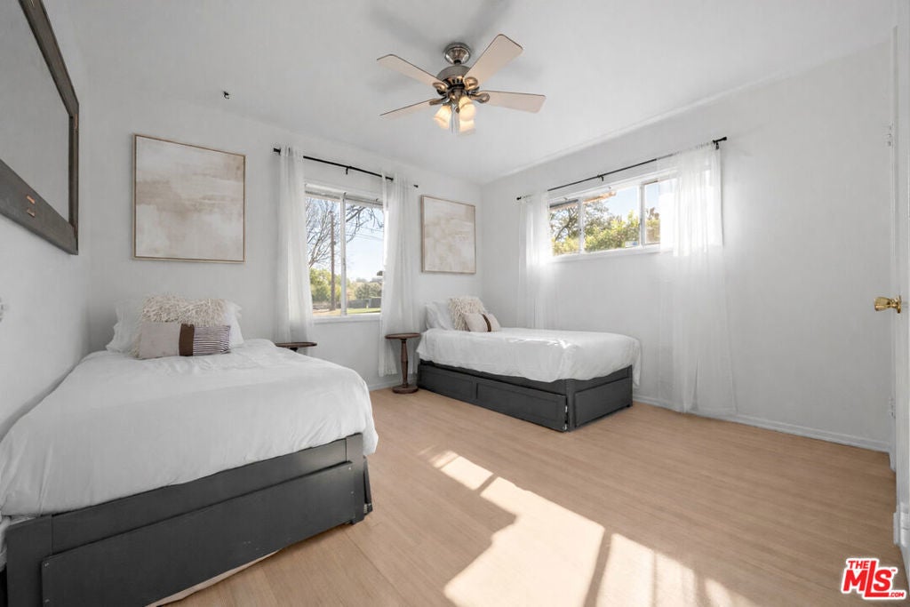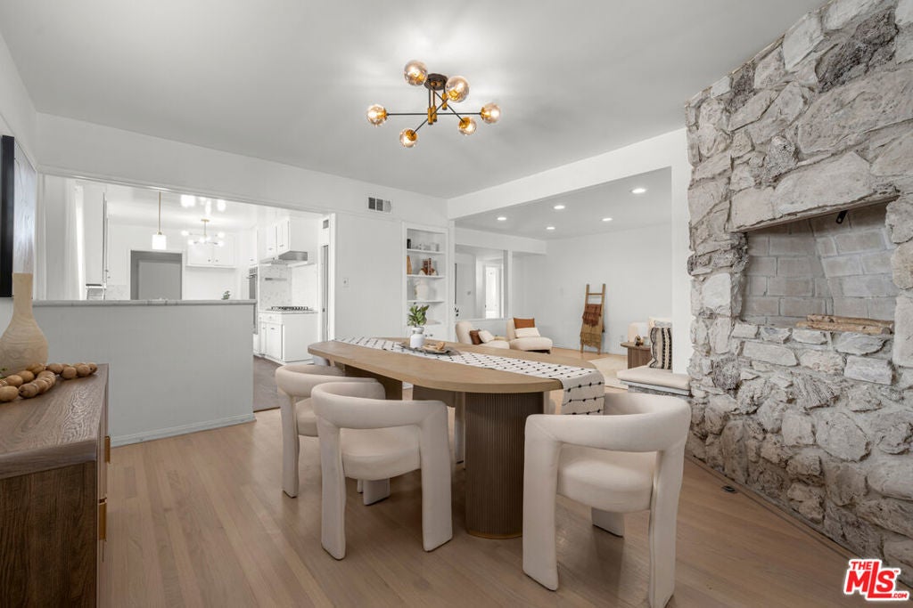 Welcome to this beautifully updated single-level Valley Glen home offering comfort, style, and effortless indoor-outdoor living. Set behind a gated front yard with generous parking, the home also features an attached garage and a thoughtfully designed floor plan with four bedrooms and three bathrooms. Inside, a spacious living room flows seamlessly into a separate dining area, while the eat-in kitchen has been updated with newer stainless steel appliances, refreshed finishes, and direct access to a dedicated laundry room. Remodeled bathrooms, freshly painted interiors, and refinished floors complete the interior. Sliding doors from the living room open to a large pergola-covered outdoor entertaining area. Beyond the pergola, the backyard features a gated pool and a separate Jacuzzi, creating a relaxed setting ideal for everyday enjoyment or hosting. The home may be offered furnished or unfurnished for added flexibility. Conveniently located near NoHo West, houses of worship, Valley College, and with easy access to the 170 and 101 freeways, this home offers turnkey living in a prime location.