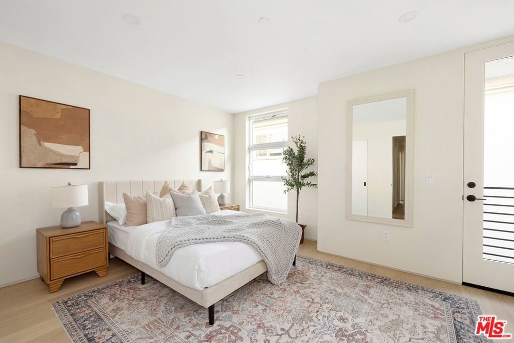 Presenting this 2025-built townhome with a large private rooftop, expertly crafted with utmost quality and appointed with fine finishes throughout. Large picture windows welcome light into the spacious living room, as wood planks overhead add dimension and style to the space. Smooth polished concrete floors flow into the designer kitchen, complete with quartz countertops, subway tile backsplash, and state-of-the-art appliances including a Viking range with custom hood. Upstairs, the primary bedroom includes an en-suite bathroom with dual-sink vanity and oversized rainwater shower with ledge as well as a walk-in closet with built-ins. Convenient to the bedroom levels are two Juliet balconies as well as stackable laundry. From the private, dedicated rooftop, enjoy striking views of the Santa Monica Mountains and Hollywood Hills, the iconic Hollywood Sign, treetops, and vast, sweeping cityscape. Under calm California skies, relax and entertain guests, barbecue, and dine al-fresco. Parking is controlled-access and subterranean, and each townhome has solar. Welcome to a fresh lifestyle at The Ten11, a set of five newly completed townhomes located in prime West Hollywood just moments to shopping along Melrose, The Grove, Original Farmers Market, nightlife, restaurants, and more. Photos are of a similar unit.