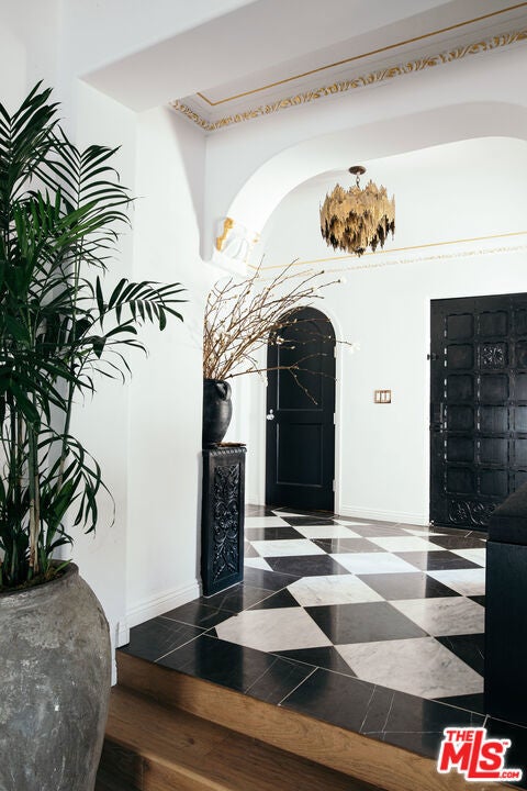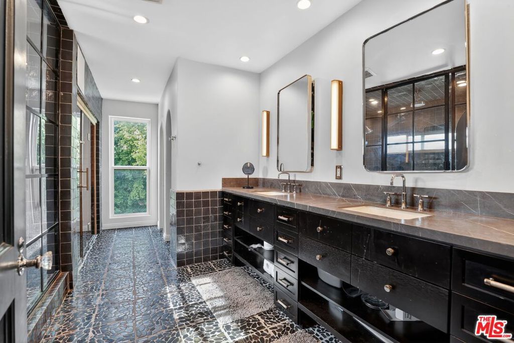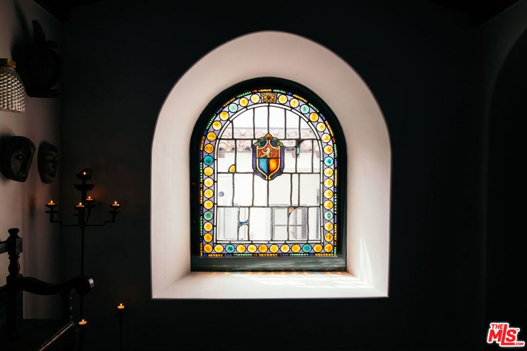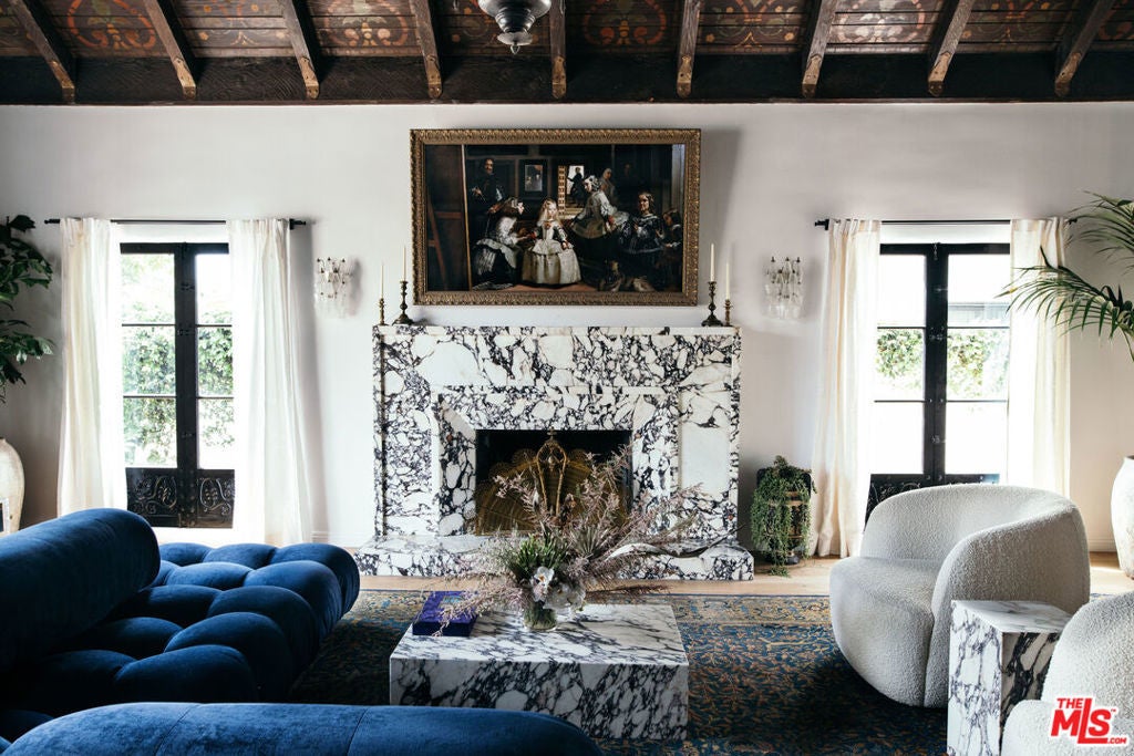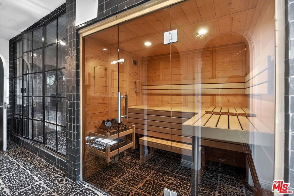 Nestled on a picturesque street in Little Holmby, 10749 Weyburn Avenue is a beautifully restored 1930s Spanish home that honors its original architecture while offering modern-day comfort. Reimagined in 2020 by interior designer Kevin Klein, this 5-bedroom, 6-bathroom residence spans 4,259 square feet and showcases artisan craftsmanship throughout. Authentic details -- original ironwork, stained glass, and intricately stenciled and carved wood beams -- are woven seamlessly throughout the home, lending warmth and character. A gracious formal entry opens to a dramatic living room with soaring beamed ceilings and French doors that lead to an outdoor patio. A stunning stone fireplace and built-in wet bar create an inviting space for entertaining or everyday living. Just beyond, find a fully modernized kitchen with premium appliances, opening to a sunlit family room and an informal dining nook with banquet seating. A separate formal dining room, featuring checkered tile floors and a striking coffered ceiling, provides an intimate setting for gatherings. Completing the first floor are a powder room, a versatile den or office, and a private bedroom suite. Upstairs, a charming library loft accented by an original stained glass window leads to four additional bedroom suites, including the spacious primary. The primary suite impresses with ample closet space and a luxurious en suite bath with dual vanities, a steam shower, and a built-in glass-enclosed sauna. Secured behind gates and secluded by mature hedging, the property provides exceptional privacy. The landscaped backyard features an expansive tiled patio, built-in outdoor kitchen, and turf lawn, the ideal space to dine alfresco or relax in the California sunshine. Covered parking is set beneath the original porte cochere, complete with an EV charger. Ideally situated within the Warner Avenue Elementary School bounds, this prime location offers convenient access to Westwood Village, UCLA, acclaimed dining, and is just minutes from Westfield Century City. A rare opportunity to enjoy a timeless Spanish home with modern amenities in one of Los Angeles' most sought-after neighborhoods.
