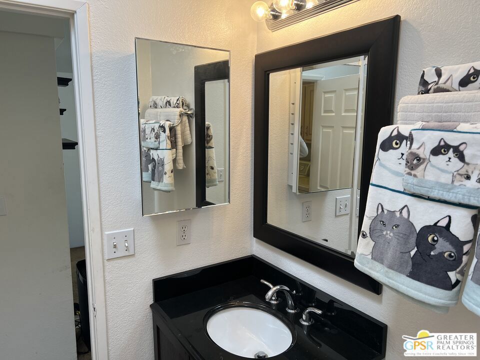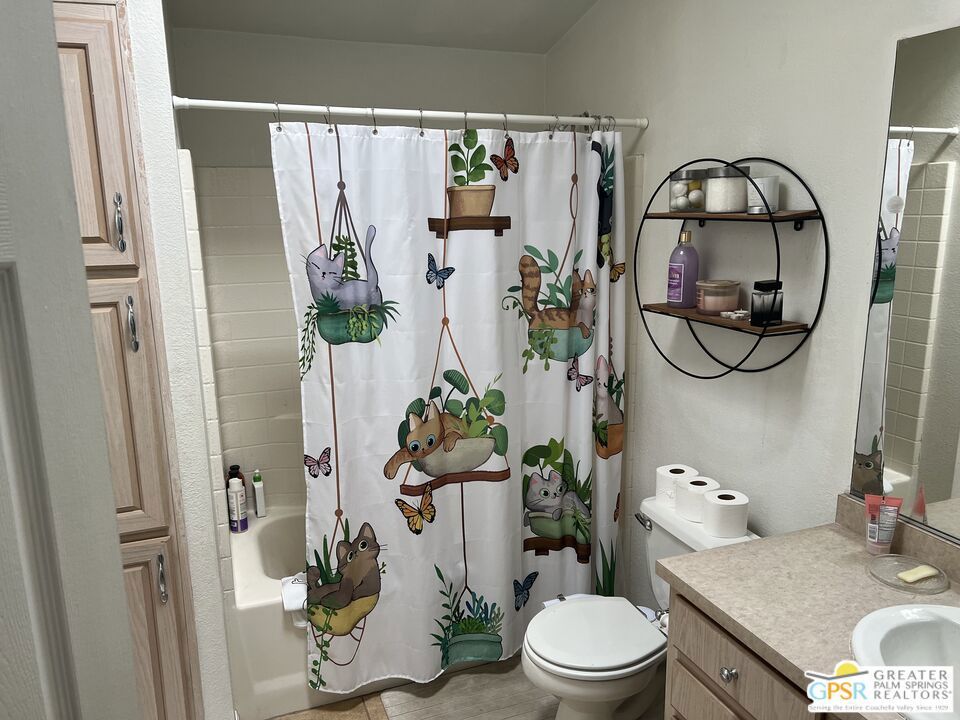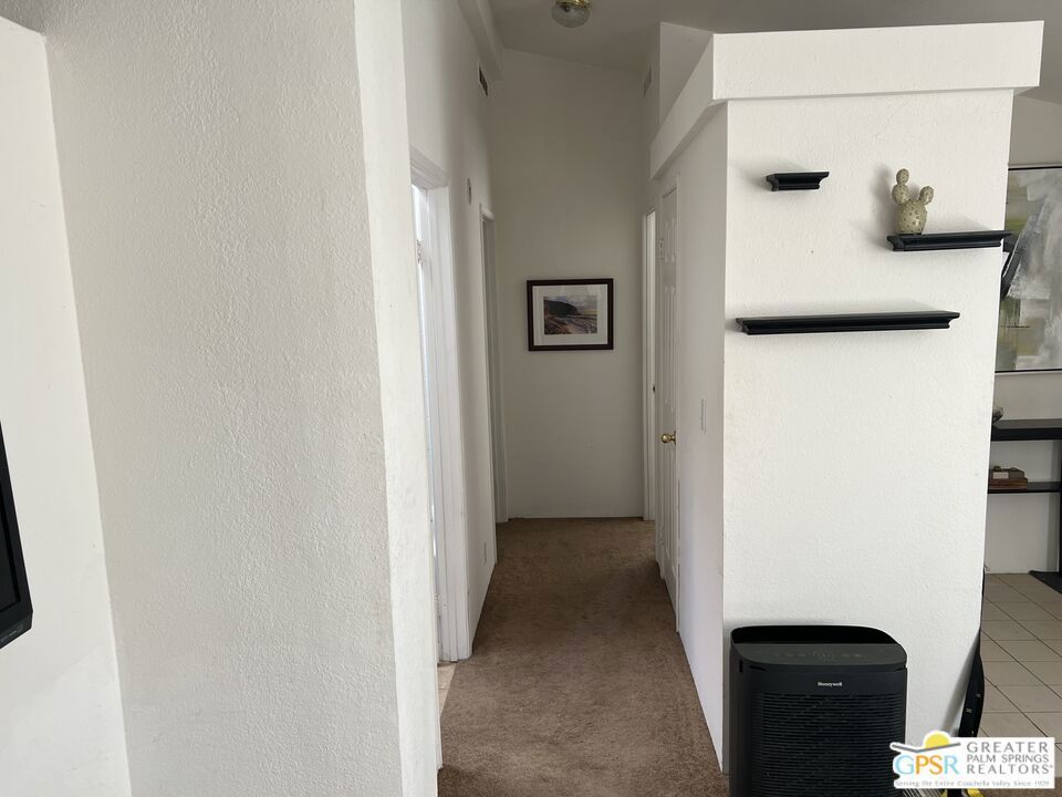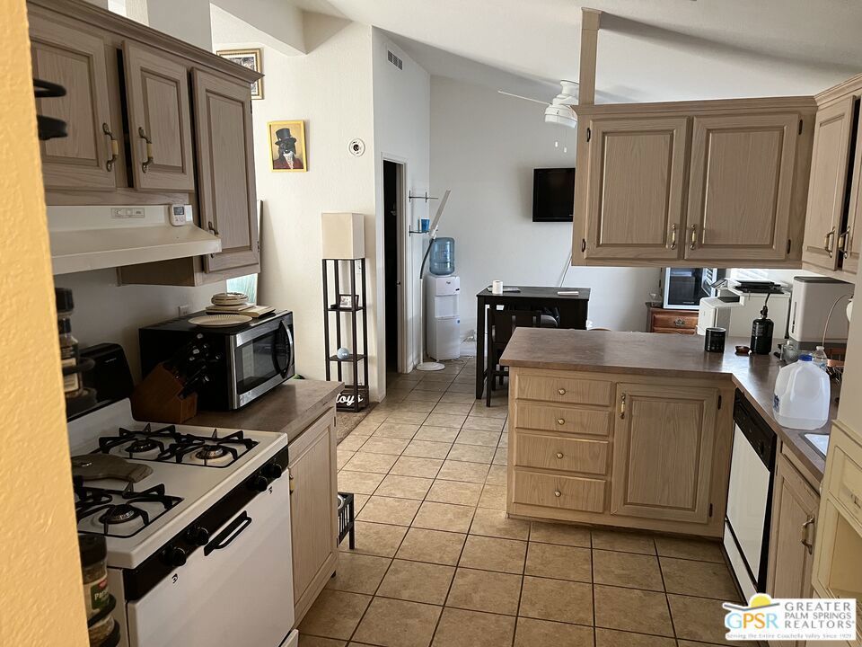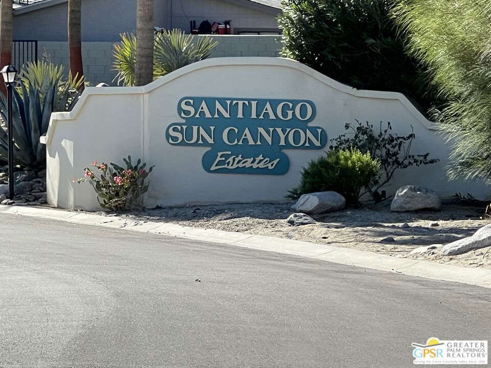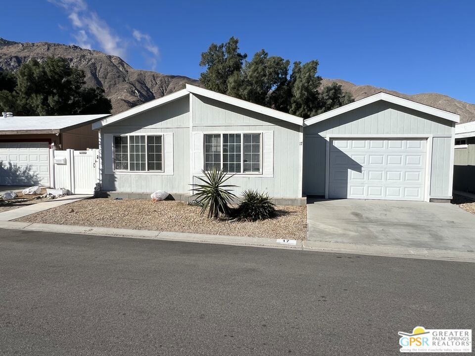 3 beds and 2 baths under $140,000.00! Want a care free weekend getaway? Or an inexpensive place to live full time in the desert with space rent that doesn't break the bank? This home is towards the back of Sun Canyon Estates with a lovely mountain view from the deck. The primary bedroom suite is on the opposite end of the house from the other 2 bedrooms and has a huge mirrored closet for great storage. A big plus is having your own direct-access garage which is hard to find in a manufactured home community. A rot-free vinyl fence encompasses the private side yards with a brick wall in the far back. There's a locked storage shed in the yard as well. The home has an oversized newer air conditioner to keep you cool during the hot summer months. The low land lease fees and utilities are paid monthly through the management office. Close to everything Palm Springs has to offer without the huge expense!