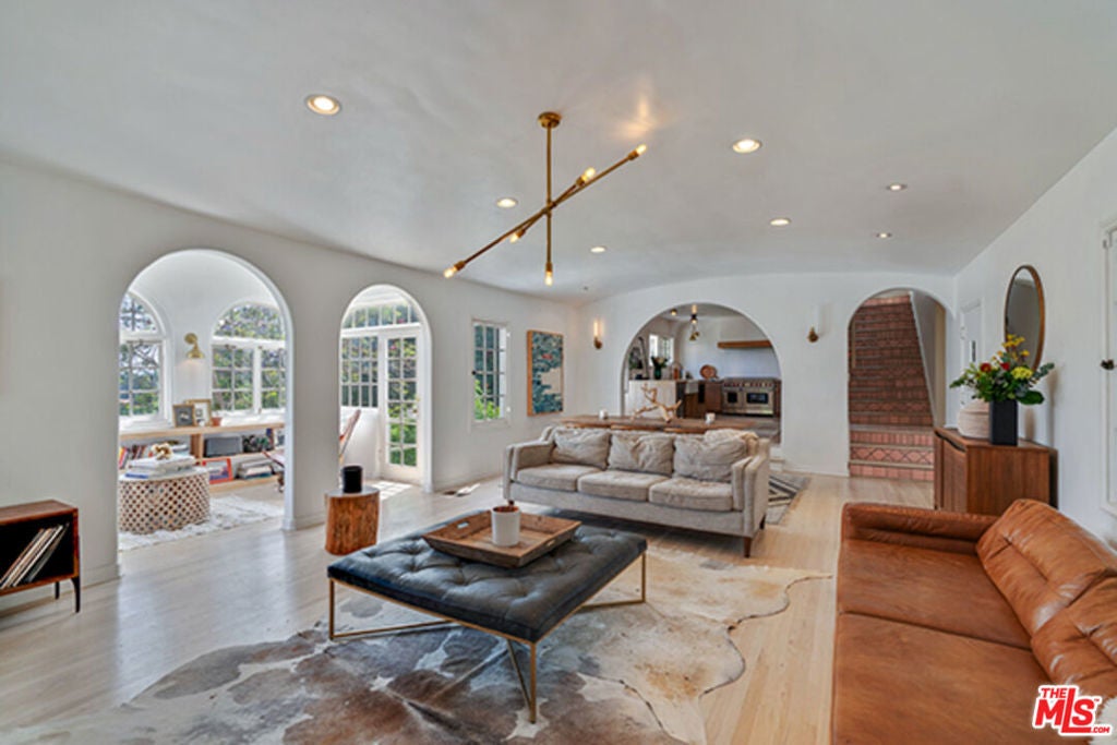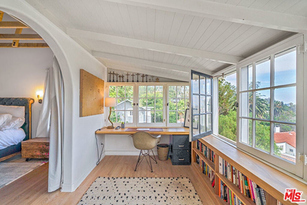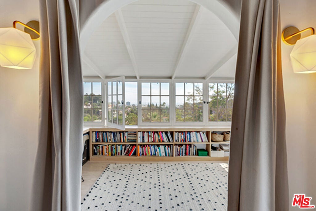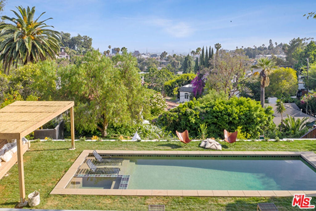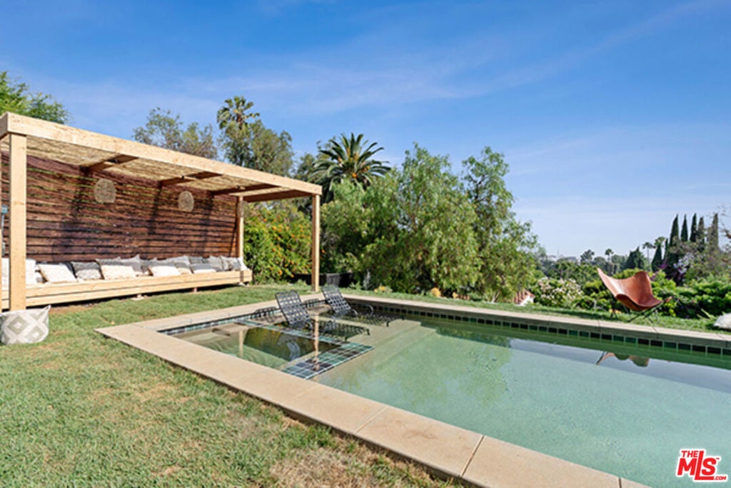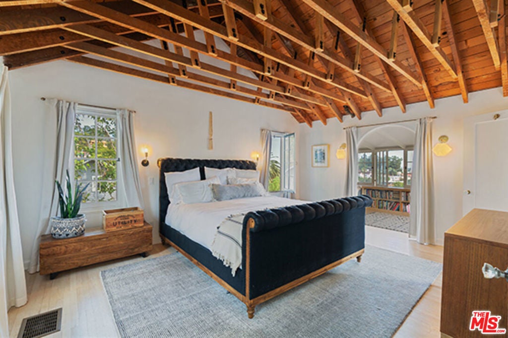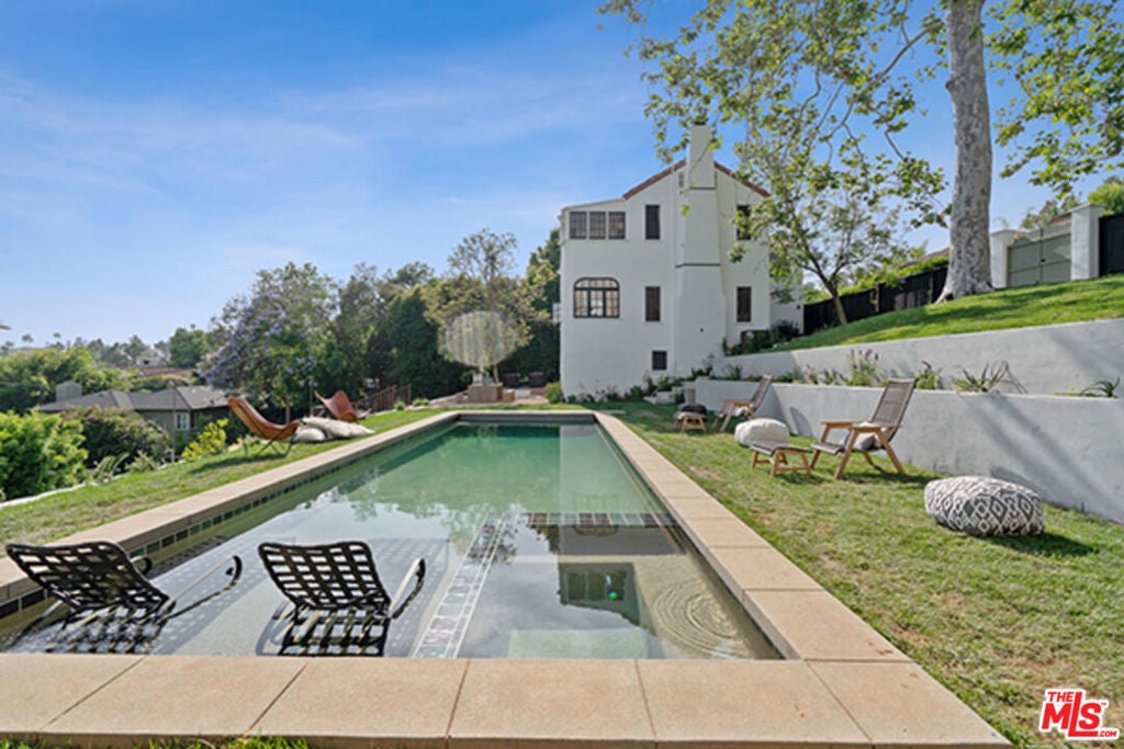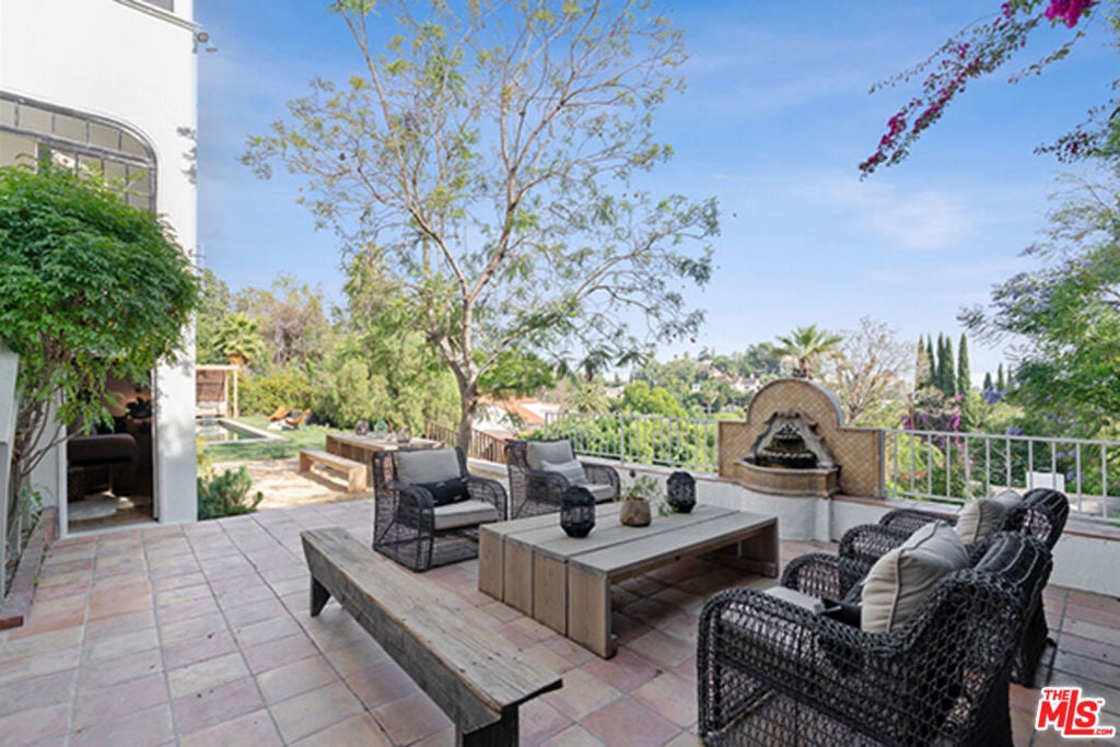 Hollywoodland Private 1923 historical Spanish retreat on a large double view lot. Fully furnished with a bohemian lived-in style. Renovated while retaining the original integrity. The kitchen features an 8-burner Wolf range, Sub Zero refrigerator, & marble counters. The open living room is anchored by a fireplace & has barreled ceilings w/archways. Light floods through the french windows that frame the expansive views. Upstairs each of the 3 bedrooms are unique & private. The primary suite has an exposed wood beam ceiling that carries through to the primary bathroom w/soaking tub. The sleeping porch doubles as an office & has some of the best views of LA. Additionally there is a guest suite w/separate entrance & full bathroom. The grounds take this property to the next level! Stairs, off the living area, lead to an open patio w/fountain. The adj alfresco dining area is a lovely place to socialize. The swimmers pool has a built-in hot-tub & baja shelf. The rear of the property has a large sport court area w/ fruit trees. Living in the Hollywood Hills with this much usable land is a true dream!