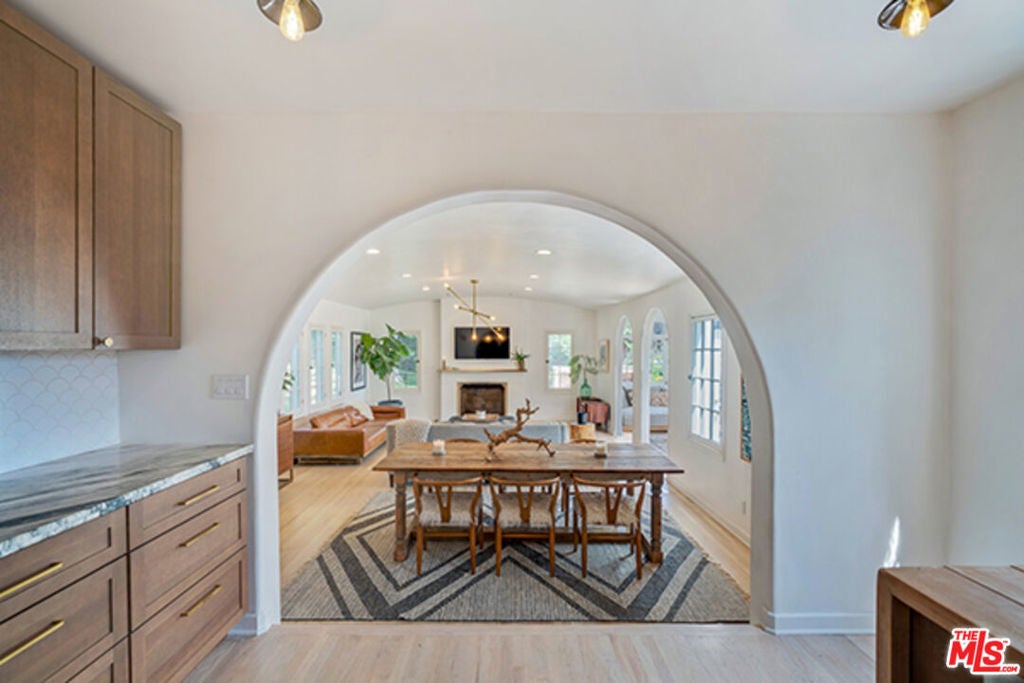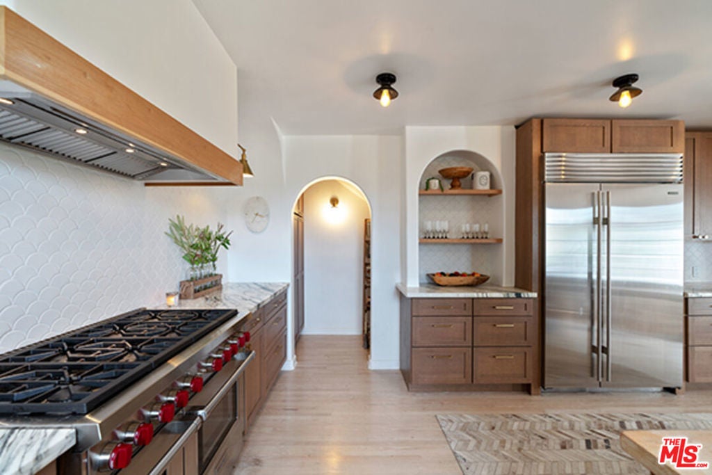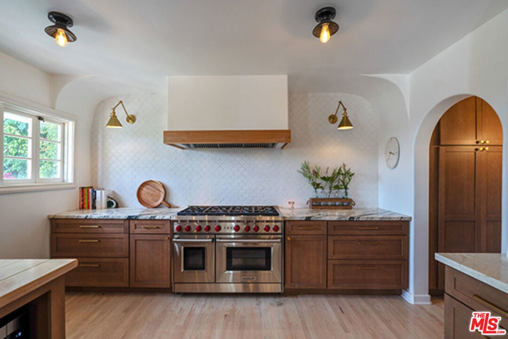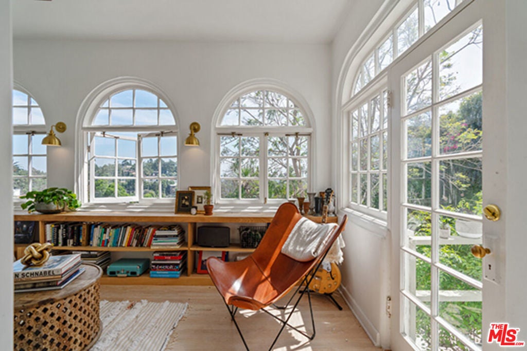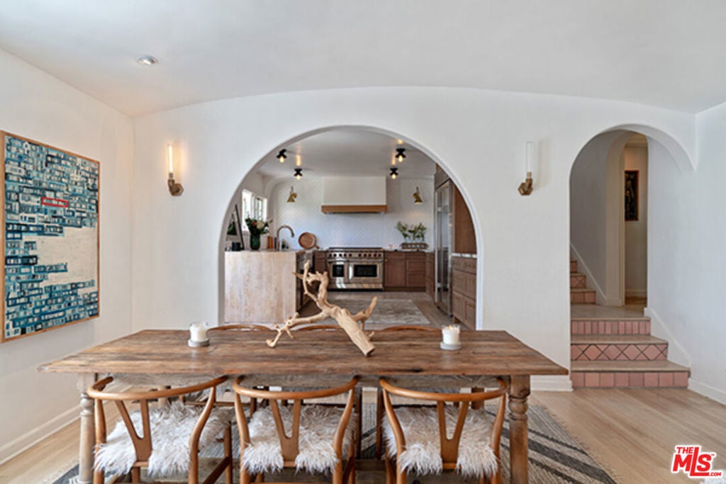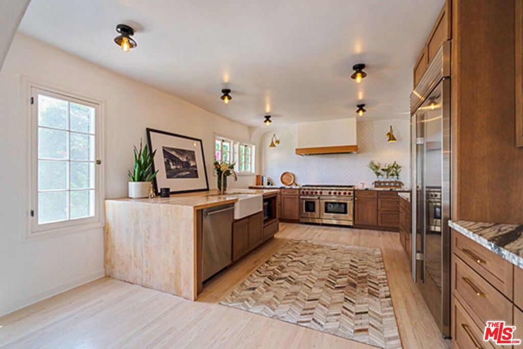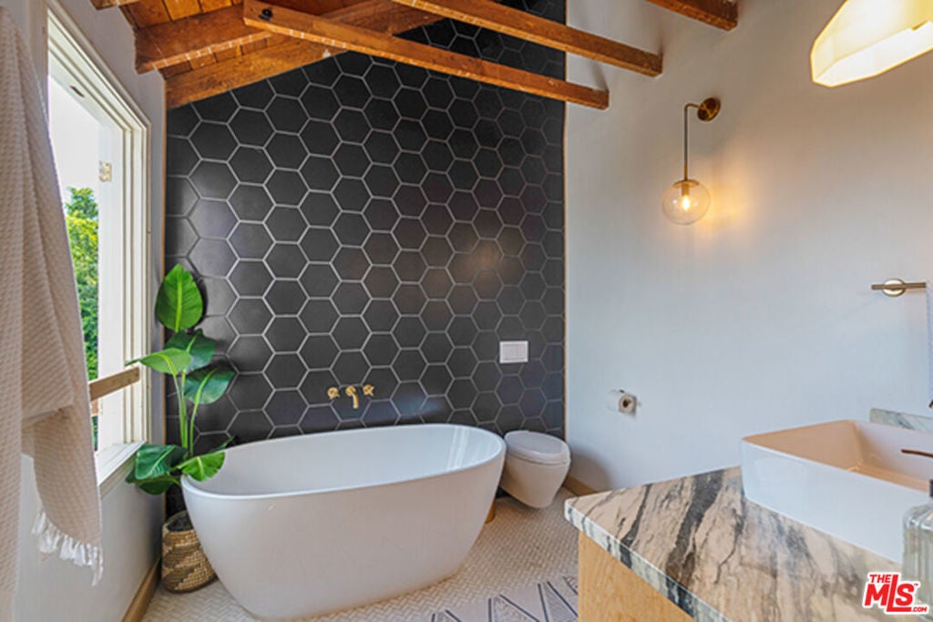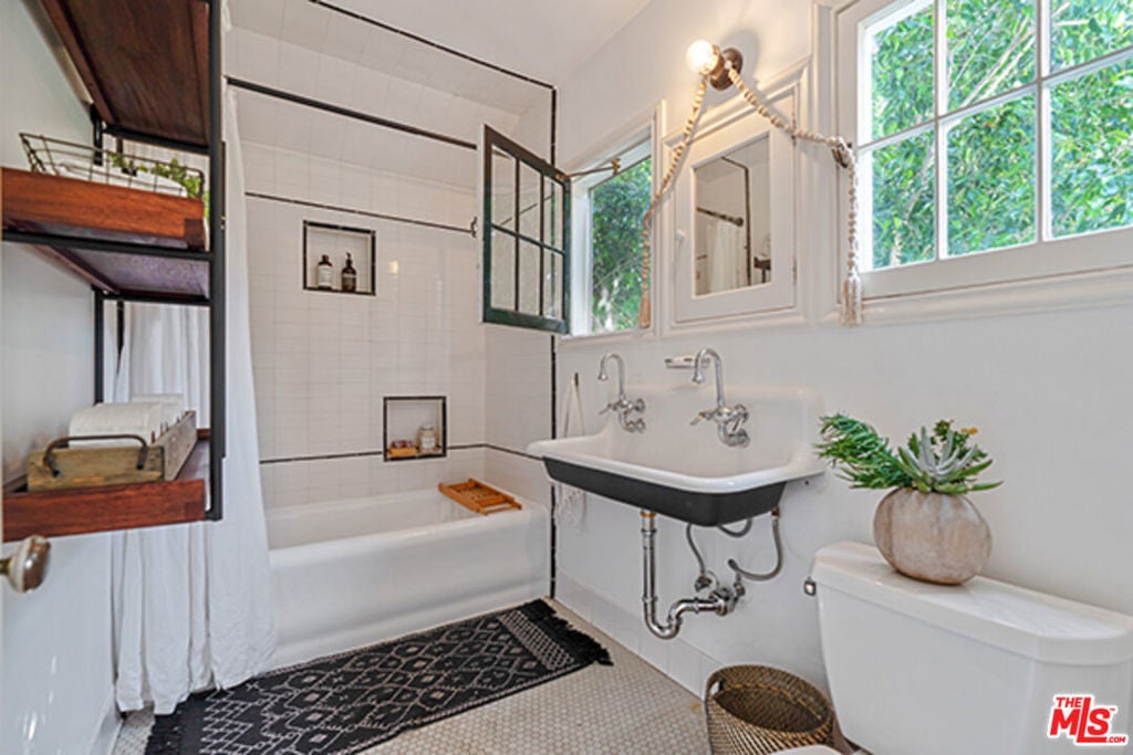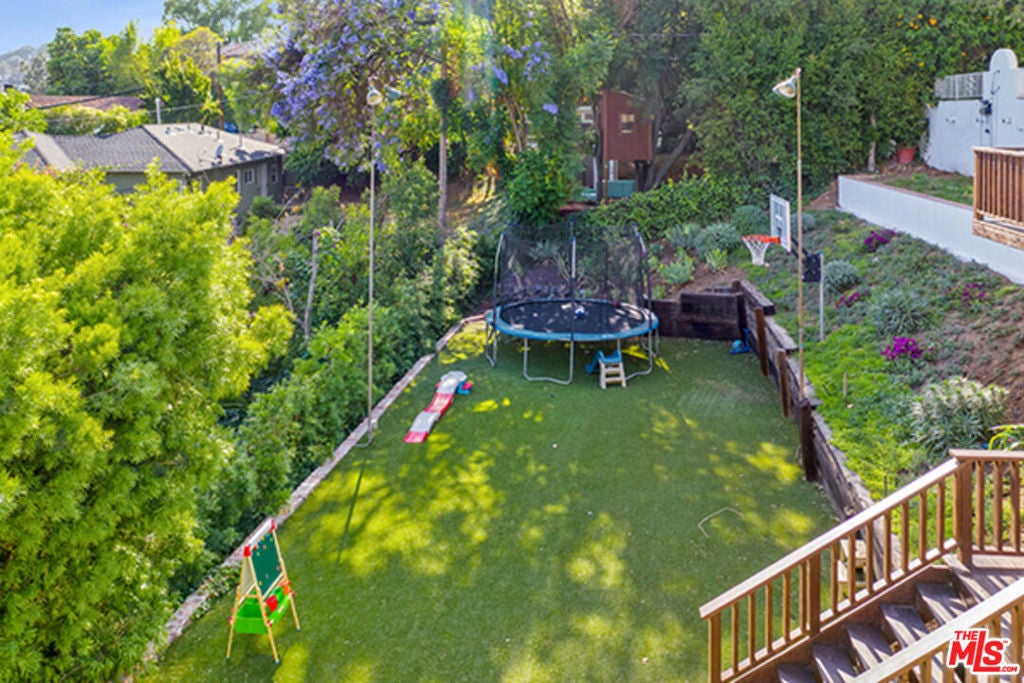 Hollywoodland Private 1923 historical Spanish retreat on a large double view lot. Fully furnished with a bohemian lived-in style. Renovated while retaining the original integrity. The kitchen features an 8-burner Wolf range, Sub Zero refrigerator, & marble counters. The open living room is anchored by a fireplace & has barreled ceilings w/archways. Light floods through the french windows that frame the expansive views. Upstairs each of the 3 bedrooms are unique & private. The primary suite has an exposed wood beam ceiling that carries through to the primary bathroom w/soaking tub. The sleeping porch doubles as an office & has some of the best views of LA. Additionally there is a guest suite w/separate entrance & full bathroom. The grounds take this property to the next level! Stairs, off the living area, lead to an open patio w/fountain. The adj alfresco dining area is a lovely place to socialize. The swimmers pool has a built-in hot-tub & baja shelf. The rear of the property has a large sport court area w/ fruit trees. Living in the Hollywood Hills with this much usable land is a true dream!
