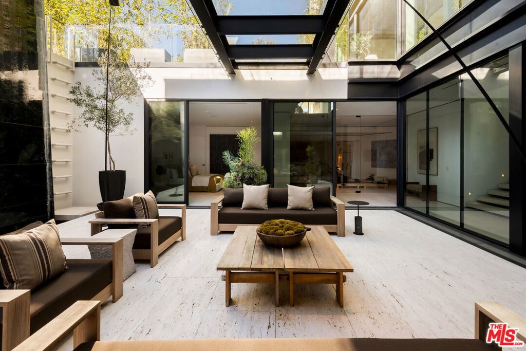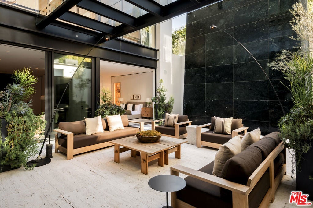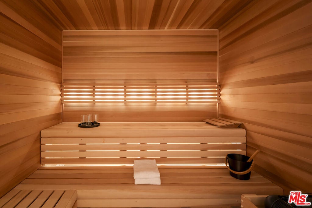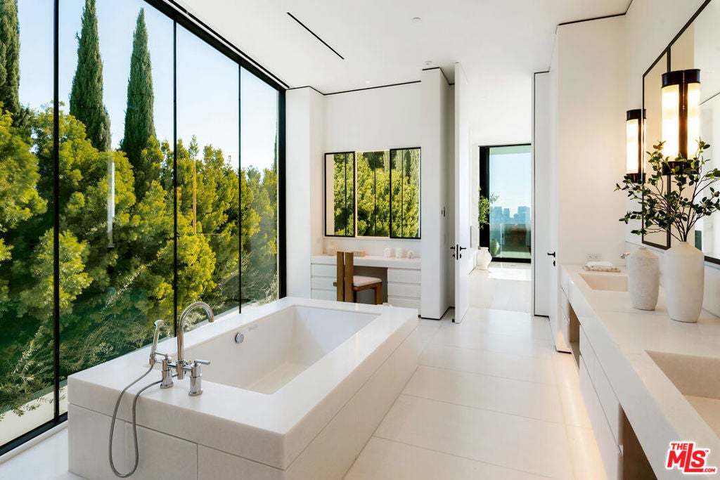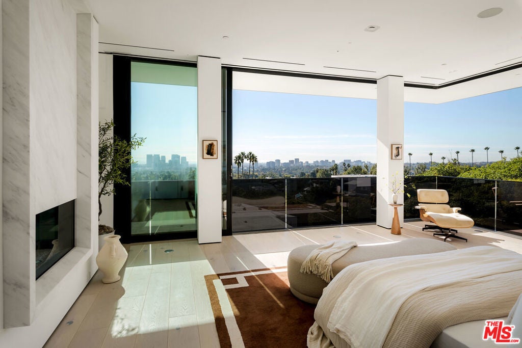Exceptional design meets refined luxury in this brand-new Beverly Hills architectural masterpiece, set behind privacy gates on a secluded promontory with truly explosive panoramic city-to-ocean views offering the rare combination of dramatic vistas and effortless convenience just moments from the Beverly Hills Hotel and the heart of the city. Created by renowned architect Paul McClean with interiors by Waldo Fernandez, this one-of-a-kind residence is a study in meticulous craftsmanship and elevated modern warmth. Behind the gates, twin marble waterfalls frame a dramatic entry, leading to illuminated travertine paths and a striking glass bridge that reveals the home's stunning three-level design. Walls of glass, soaring wood-paneled ceilings, and contrasting accents create a seamless indoor-outdoor flow reminiscent of the world's finest private resorts. An elevator services all levels, enhancing ease and livability throughout. The main level features formal living and dining areas, a kitchen as well as a chef's kitchen with Miele appliances, wine cellar, and private office. Pocketing glass doors open to an expansive outdoor oasis with a full-length infinity pool, jacuzzi, baja ledge, and multiple dining and lounge areas overlooking the skyline ideal for hosting events, parties, and effortless gatherings with quick access for Uber and pick-ups. The upper level is dedicated to a serene primary retreat with a terrace, fireplace, spa-like bath, and dual closets, as well as a secondary bedroom. Below, a dramatic atrium anchors a complete entertainment and wellness floor with guest suite, gym, sauna, steam room, massage room, onyx bar, and a state-of-the-art private home theater - creating the ultimate "vacation-at-home" lifestyle. The home offers exceptional gated parking capacity, including an oversized garage and additional space within the motor court, providing rare flexibility for events, staff, and guest arrivals, all complemented by generous street frontage for convenient overflow parking. A rare opportunity to own a true trophy property offering unparalleled design, privacy, resort-level amenities, and unmatched proximity to the very best of Beverly Hills.