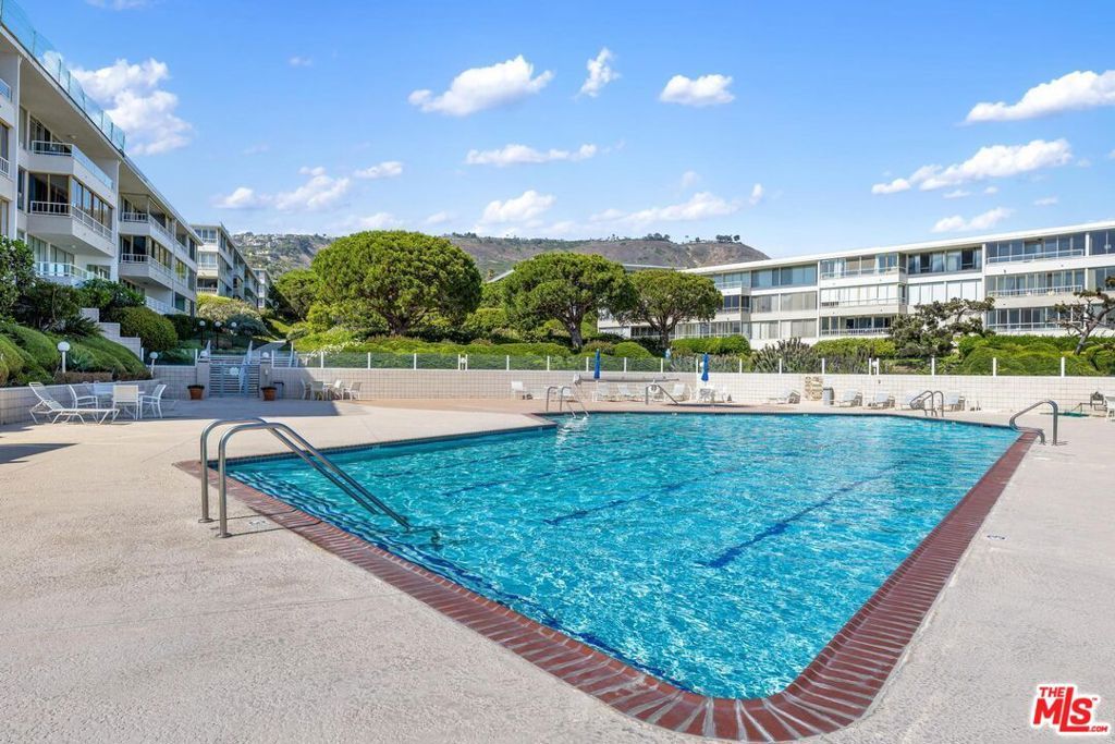Resort-style living at its finest. This elegant residence is ideally positioned to capture breathtaking ocean views and the serene Palos Verdes coastal climate. Featuring hard-surface flooring throughout with no carpet anywhere, the home offers a clean, sophisticated aesthetic. Enjoy morning coffee on the private balcony while taking in sweeping ocean vistas. The chef's kitchen is appointed with stainless steel appliances and flows seamlessly into the dining area, perfect for effortless entertaining. Plantation shutters add timeless refinement throughout.The spacious primary suite with en-suite bath and a generously sized second bedroom provide comfort and privacy. The building is perfectly located, just a short walk to the pool, clubhouse, tennis courts, and a fitness center with ocean views, offering elevated coastal living in a premier community.
