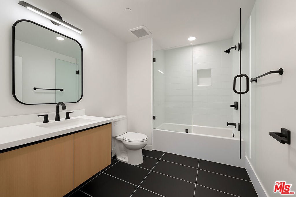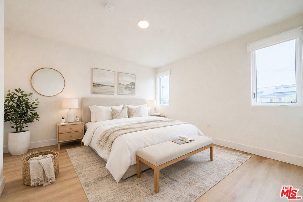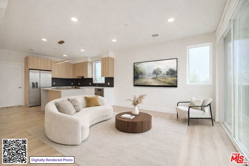This newly built two-bedroom blends modern design with thoughtful contemporary craftsmanship. The open concept layout features hardwood floors, high ceilings, and oversized windows that flood the home with natural light and connect seamlessly to a front balcony. The kitchen is appointed with stainless steel appliances, soft-close oak cabinetry, and a sleek glass subway tile backsplash, while the bath offers a soaking tub accented by matte black fixtures. Additional highlights include in-unit laundry, a smart thermostat, and two tandem parking with EV charging. Residents enjoy a rooftop deck with panoramic city views of the hollywood sign and a dedicated dog run on site. Perfectly positioned between Hollywood and Larchmont, this residence offers effortless access to some of L.A.'s best dining, shopping, and entertainment.