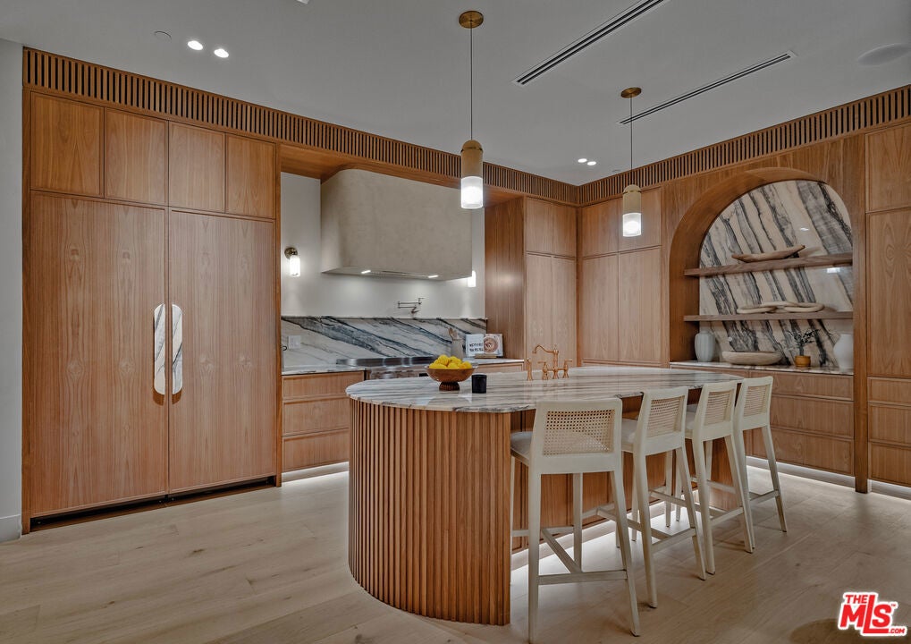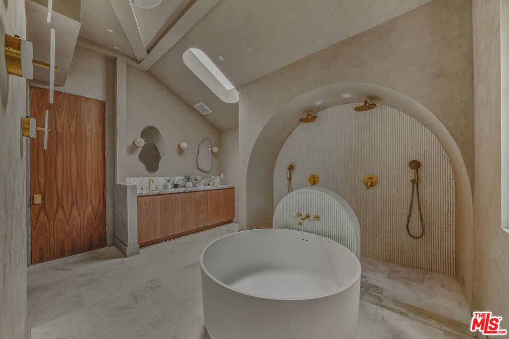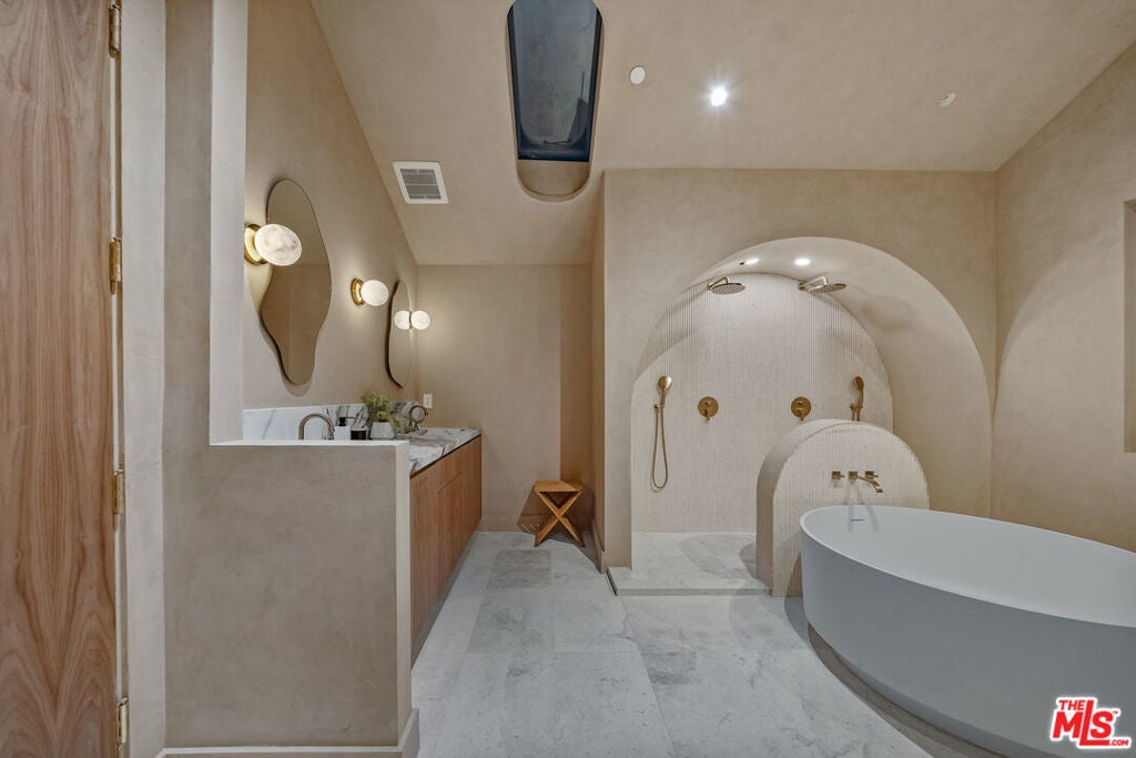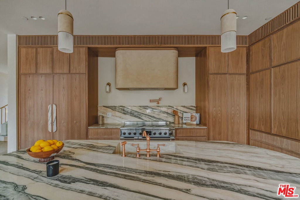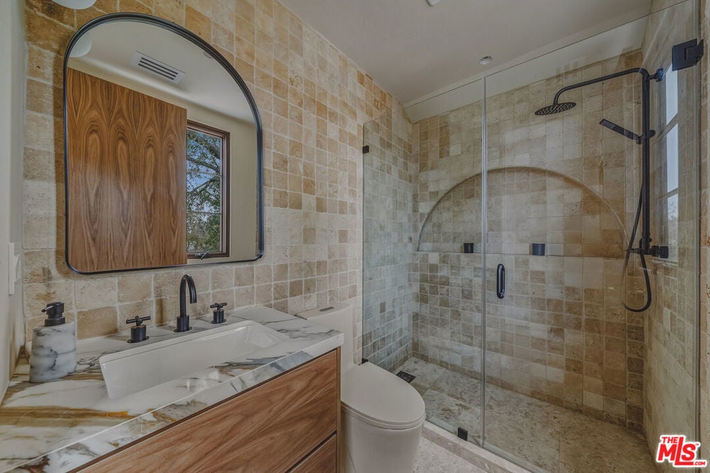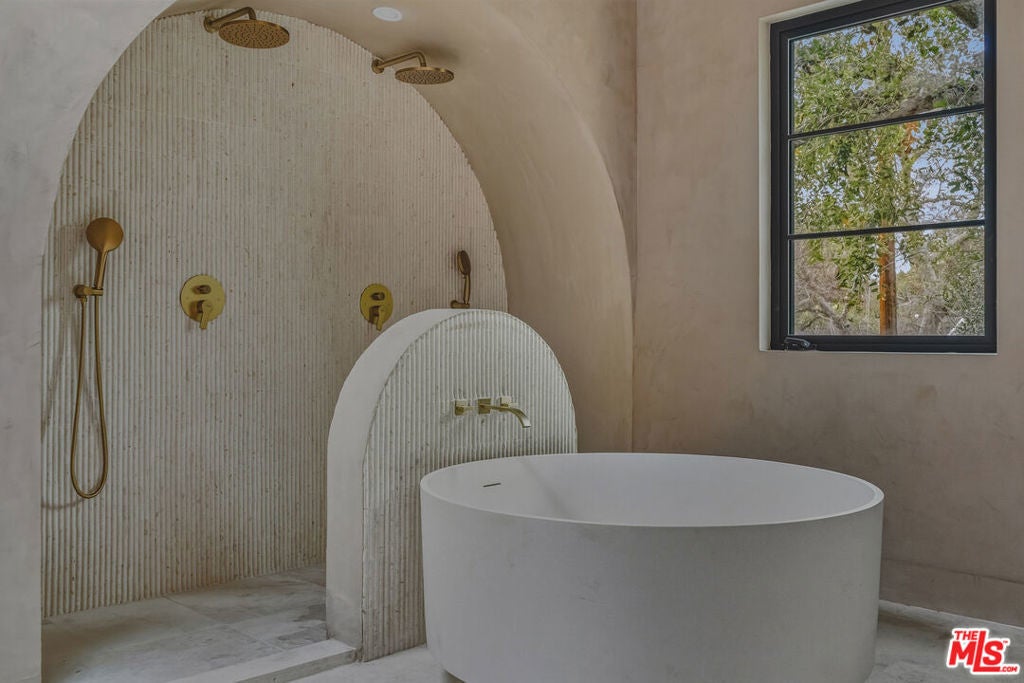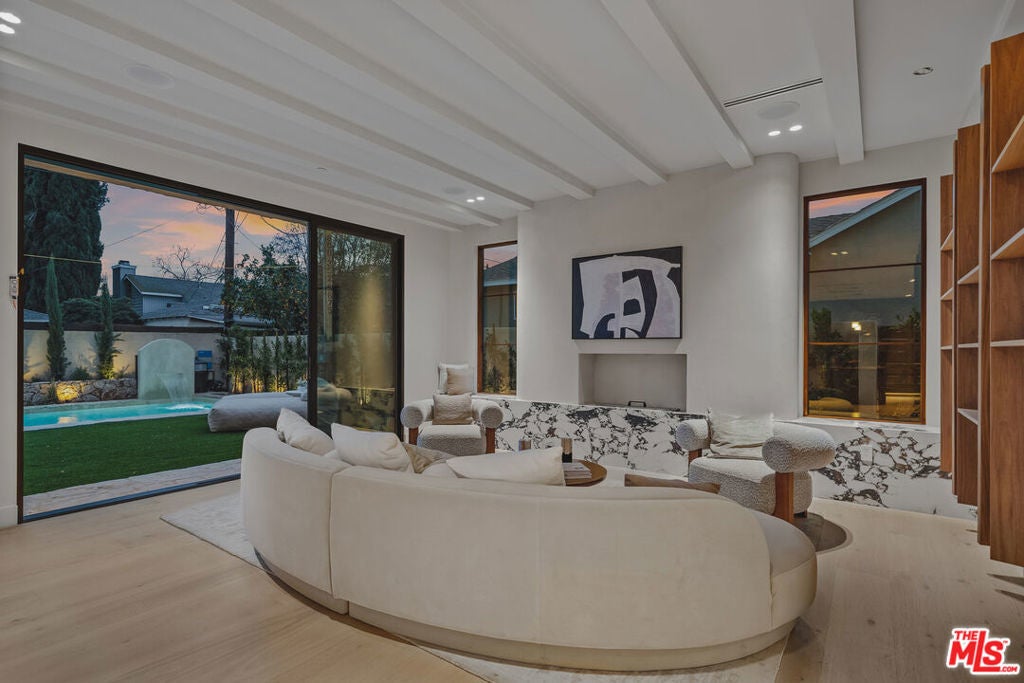 This new construction Modern Tuscan residence blends timeless European warmth with refined contemporary luxury. Offering 5 bedrooms and 5.5 bathrooms, including a beautifully integrated ADU, the home is thoughtfully designed for both elegant living and effortless entertaining. Designer finishes elevate every space, from Roman clay walls to striking Statuario Rosso marble, complemented by custom walnut woodwork that adds richness and depth throughout. The spa-inspired primary suite features a beautiful arched double shower, creating a true retreat-like experience at home. Outdoors, the residence continues to impress with a serene natural stone patio and pool, delivering a resort-style ambiance ideal for relaxation or gatherings. Set in a superior, highly walkable location, this home offers the rare combination of privacy, luxury, and everyday convenience. A distinctive opportunity to own a masterfully crafted home where craftsmanship, design, and location come together seamlessly.
