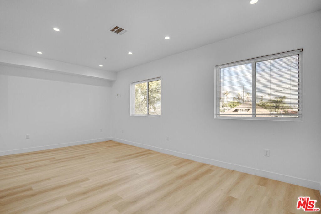 This brand-new four-plex offers a rare opportunity to lease a modern, thoughtfully designed residence just minutes from USC and LA Tech. Featuring 5 bedrooms and 5 full bathrooms, every bedroom is configured as a private en-suite, making the layout ideal for roommates, professionals, a family or anyone who values privacy and comfort. The interiors are bright, open, and contemporary, with wide-plank laminate flooring, recessed lighting, and a clean, modern aesthetic throughout. The kitchens are beautifully finished with white shaker cabinetry, sleek countertops, and stainless steel appliances, creating a space that feels both stylish and highly functional. Large windows bring in abundant natural light, enhancing the open feel of each unit. Bathrooms are equally well-appointed. Select units feature private balconies with neighborhood views, adding a welcome outdoor retreat in an urban setting. Additional highlights include two gated parking spaces, a major convenience in the area, along with secure access and a low-maintenance, newly built exterior. Located in close proximity to major universities, transit routes, and everyday amenities, this property offers turnkey living in a prime Los Angeles location, combining modern comfort with exceptional convenience.