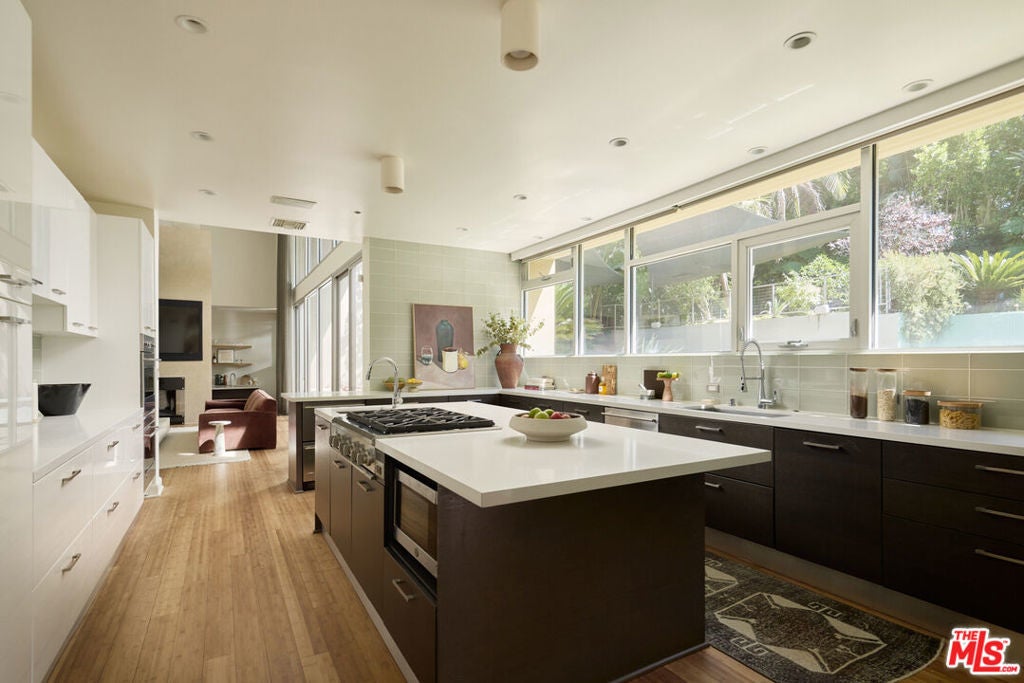 Tucked behind private gates in the exclusive Fryman Estates, 3369 Fryman Place is a rare modern contemporary estate that seamlessly blends architectural design with everyday livable luxury. Spanning over 6,000 square feet, this 5-bedroom, 6-bath residence showcases clean lines, curated materials, and high-end finishes throughout. The expansive layout flows effortlessly across sun-drenched living spaces, where soaring ceilings, sleek fixtures, and designer details create a refined yet welcoming ambiance. Designed with both comfort and entertaining in mind, the main level features spacious gathering areas and seamless indoor-outdoor integration. The primary suite is a tranquil sanctuary, complete with a spa-inspired bath, oversized walk-in closet, and serene views of the surrounding greenery. Each additional bedroom includes its own en-suite bath and generous proportions, offering both privacy and luxury for family and guests. Step outside to a private resort-style oasis. A large pool, full bar, guest house, and multiple lounge areas invite year-round entertaining and relaxation. The tiered garden is framed by mature trees and curated landscaping, delivering both privacy and natural beauty. Set in one of Los Angeles' most desirable neighborhoods, this exceptional property is a rare offering where timeless design meets contemporary elegance.
