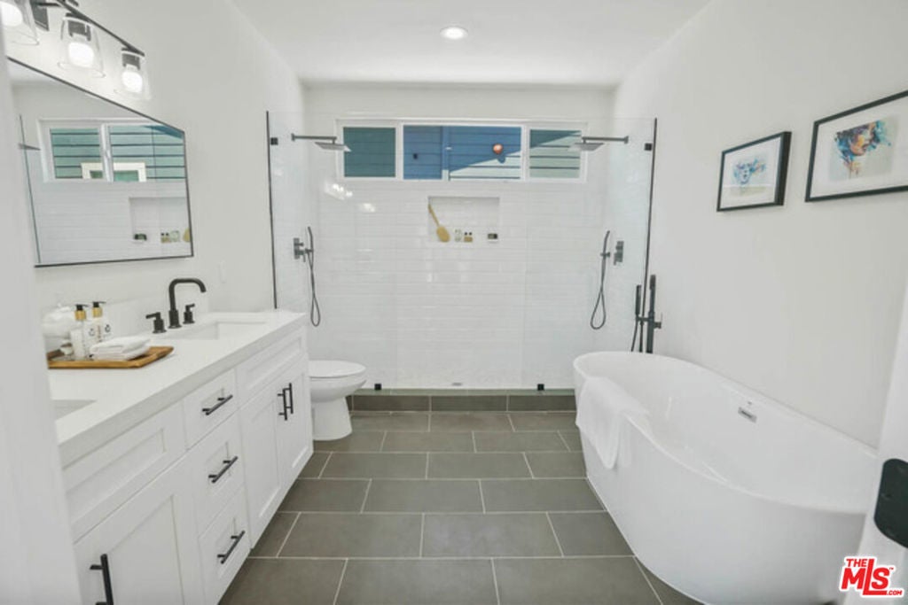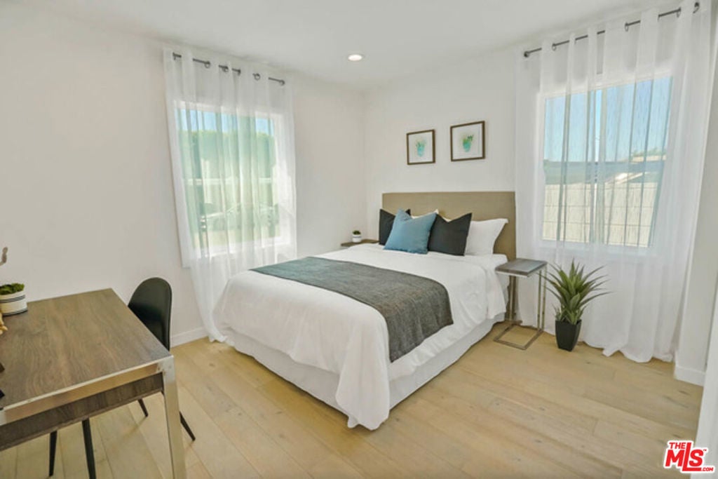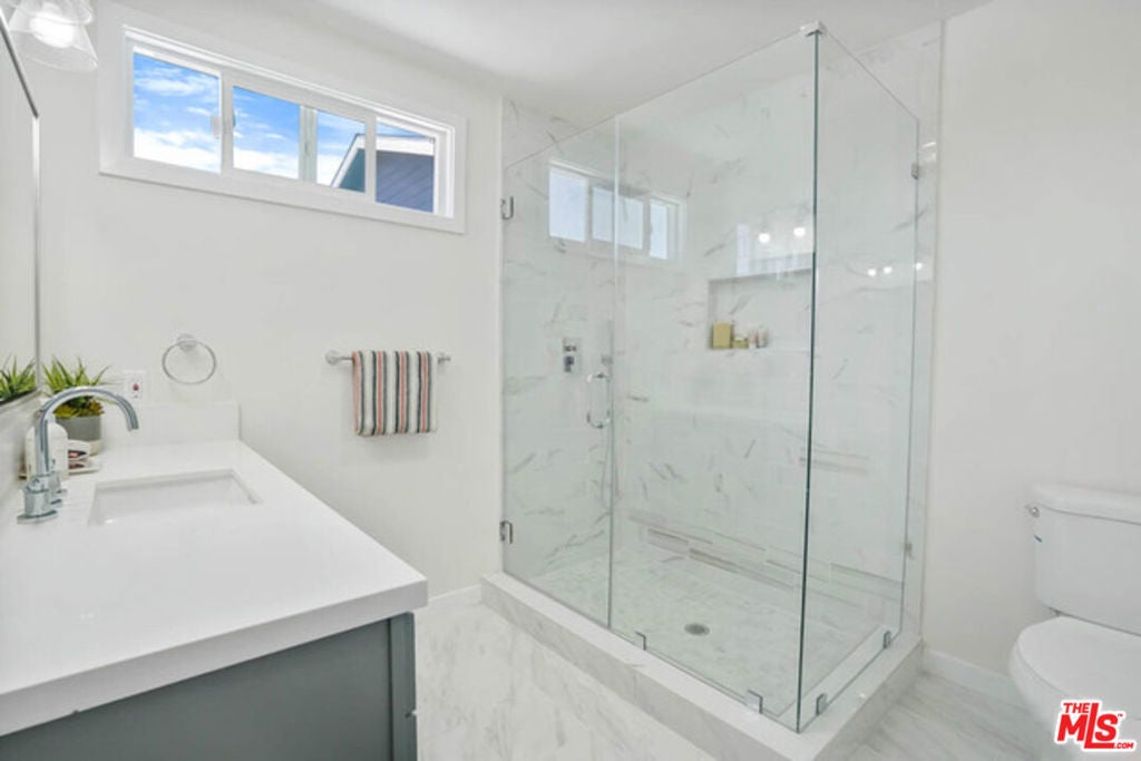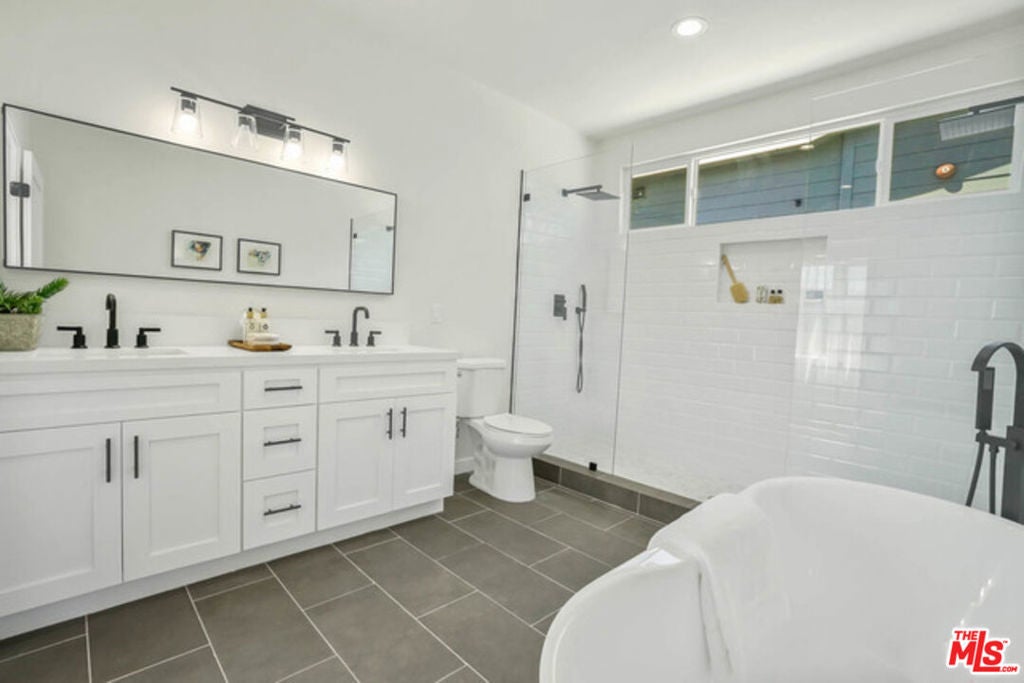 Fully remodeled Culver City home located near the end of a cul de sac. Feels like a brand new home! Open concept floor plan with living room, dining area and kitchen all located in a large, bright open space. Beautiful hardwood floors throughout the home. Kitchen has island cook-top and eating area. Deluxe built in appliances. Fantastic master suite with 4-star master bath that features oversize soaking tub, double sinks and double shower. French doors lead out to private back yard and detached bonus room. Huge walk-in closet. The home has central A/C, recessed lighting and dual glazed windows throughout. Very quiet and private. Full size detached bonus room with vaulted ceiling and skylights. Great home office, gym, or game room! Culver City schools and services.