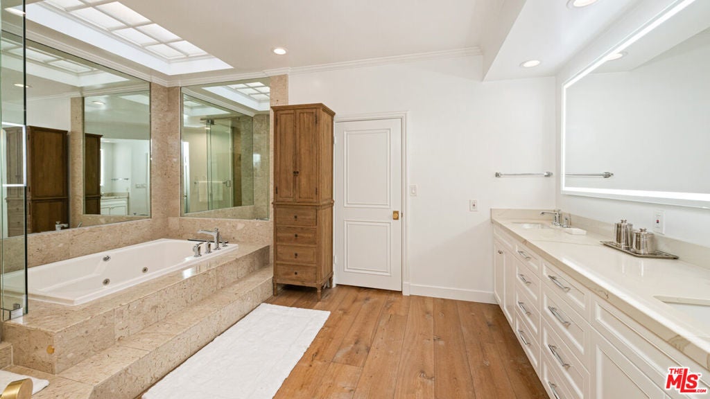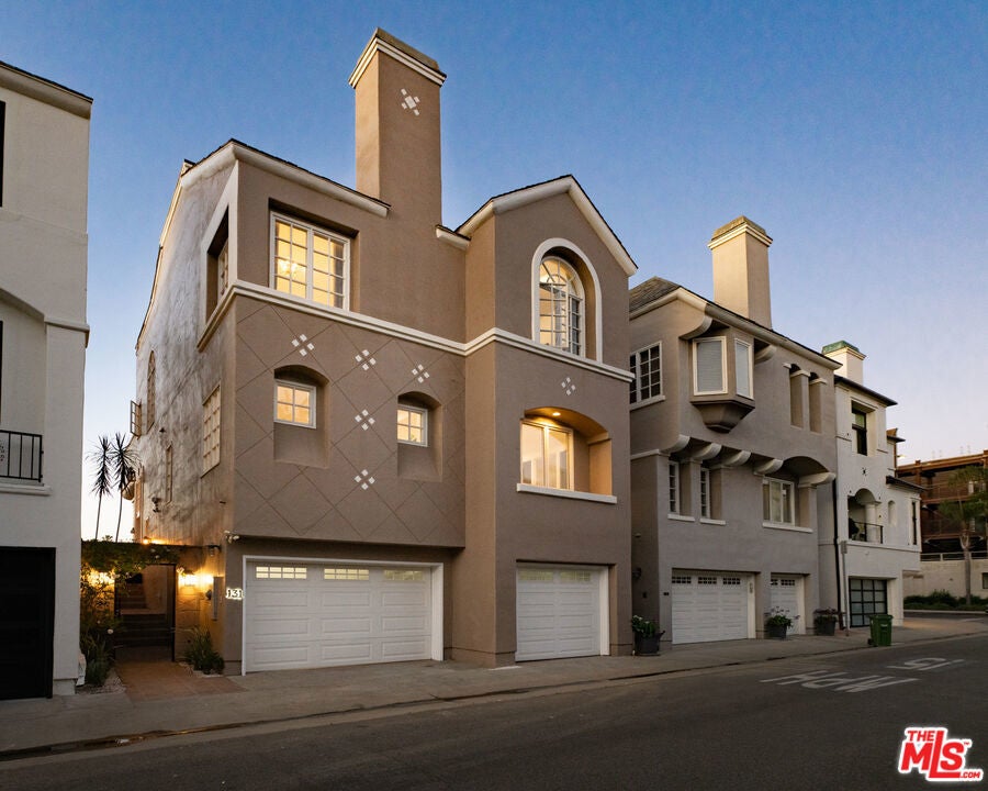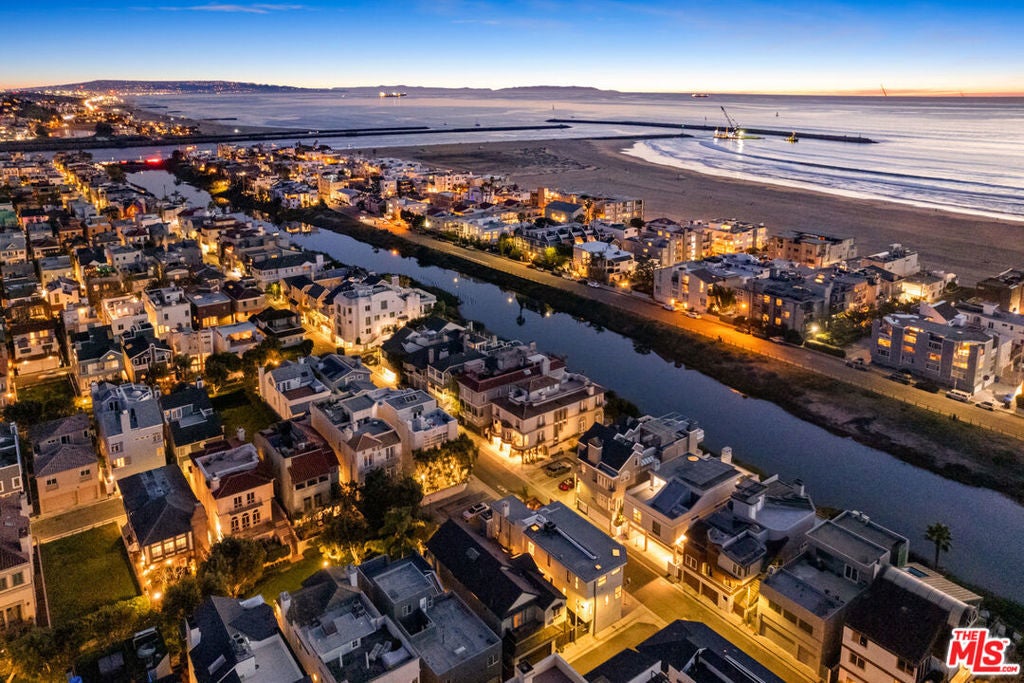 This fully remodeled canal-front residence offers refined coastal living across a thoughtfully designed multi-level layout, completed within the last five years with meticulous craftsmanship, premium finishes, and advanced systems throughout. The bottom level provides added flexibility with a three car garage featuring 220v for electric vehicles and custom built-in storage cabinetry, along with a refined powder room and a private guest suite with en-suite bath, ideal for visitors or multigenerational living. The entry level opens to a striking sun-lit living room defined by wide-plank DuChteau hardwood flooring, elegant brass railings and a Calais chandelier. A wood burning/gas fireplace and custom built-in bookshelves anchor the space, while double French doors lead to an expansive canal-facing patio. A privacy wall frames tranquil water views on the largest part of the Canals, complemented by a built-in stainless steel natural gas grill, creating an ideal setting for entertaining or relaxing outdoors. Ascending one level, a Milan chandelier presides over the large dining room which flows seamlessly into the family room, highlighted by high ceilings and a second fireplace. The adjacent chef's kitchen is both functional and refined, featuring premium Vadara quartz countertops, professional grade Wolf and Sub-Zero appliances, custom designed cabinetry, porcelain farmhouse sink and high-end designer fixtures and hardware for a modern, elevated finish. The next level above, the grand primary suite offers a sun filled tranquil retreat featuring a third fireplace, a Jacqueline chandelier, custom curtains, and dual balconies, ideal for enjoying morning sun and coastal breezes. The spa inspired en-suite bath features a multifunction bidet, walk-in shower, jacuzzi tub beneath a skylight, dual LED-lit vanities, custom hardware, Vadara countertops and Italian marble tile. A generous walk-in closet is connected for ease and function. Down the hall, a dedicated laundry area with linen storage adds convenience, alongside two additional guest suites and a beautifully appointed full hallway bath. All bathrooms throughout are finished with high-end fixtures and glass enclosed showers. Crowning the home is an exceptional rooftop triple layer concrete deck designed for elevated relaxation and entertaining. This spa inspired retreat includes an infrared sauna, hot tub, full bathroom, and lounge area. Take in the mountain and peak-a-boo ocean views while enjoying your private escape above it all. Interior finishes throughout the home feature fresh Benjamin Moore interior paint, enhanced insulation for improved comfort and energy efficiency, and a Lennox dual-zone HVAC system ensure year round livability. Integrated technology includes Ring security cameras, a full alarm system, and a five zone Bluetooth Sonos-enabled audio system with twelve in-ceiling speakers. Exterior and interior doors throughout the house are accented with distinctive gold hardware. Located in the iconic Silver Strand, with 24/7 security patrols, across the street from one of best beaches in the city, this rare luxury home blends architectural sophistication, privacy, and effortless indoor-outdoor flow, crafted for those who appreciate thoughtful design at every level.