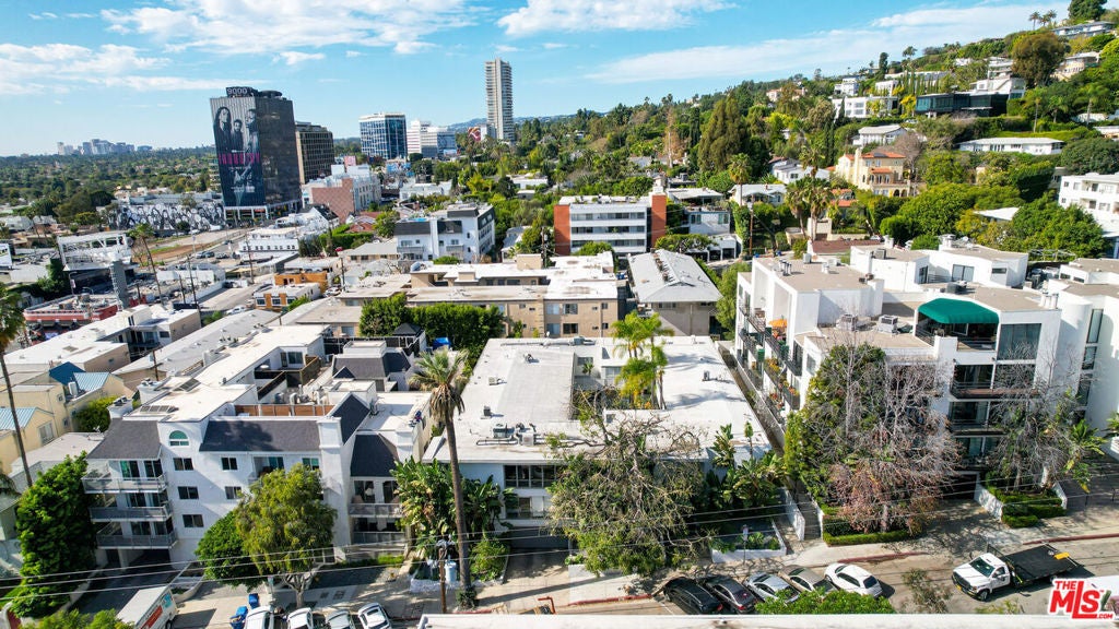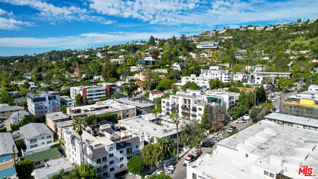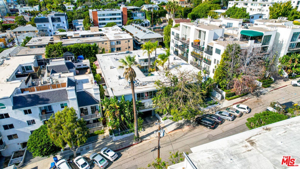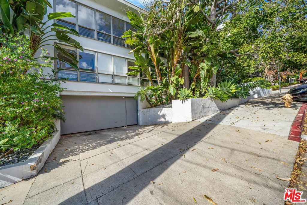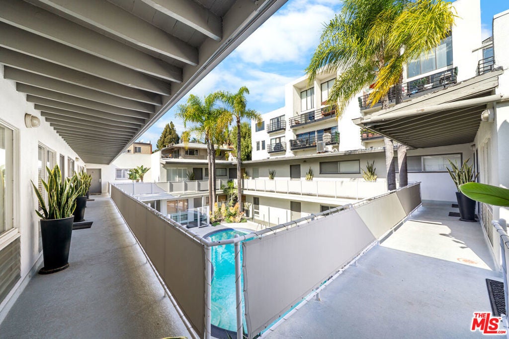 Set in a classic mid-century building, once the backdrop for several iconic David Hockney paintings in the 1960s, this rare, front-facing top-floor condo captures the essence of West Hollywood living. Floor-to-ceiling windows flood the home with natural light, framed by swaying palm fronds, while an open floor plan with recessed lighting offers a seamless flow throughout.The kitchen is thoughtfully designed with Caesarstone countertops, under-cabinet lighting, a stainless-steel Bertazzoni range, and a refrigerator and dishwasher discreetly integrated into the cabinetry. The primary bedroom and bathroom enjoy peekaboo views of downtown, while both bedrooms feature double-paned windows for added comfort and sound insulation. A full bathroom with a tiled shower and an exceptionally long hallway closet provide ample storage.The well-maintained complex offers a pool, laundry room, BBQ area, secured key-fob entry, one-car garage parking, and two additional storage spaces. Enjoy easy access to top coffee shops, restaurants, boutiques, Sunset Plaza, and iconic music venue, plus Santa Monica Blvd nightlife just moments away, without the noise.