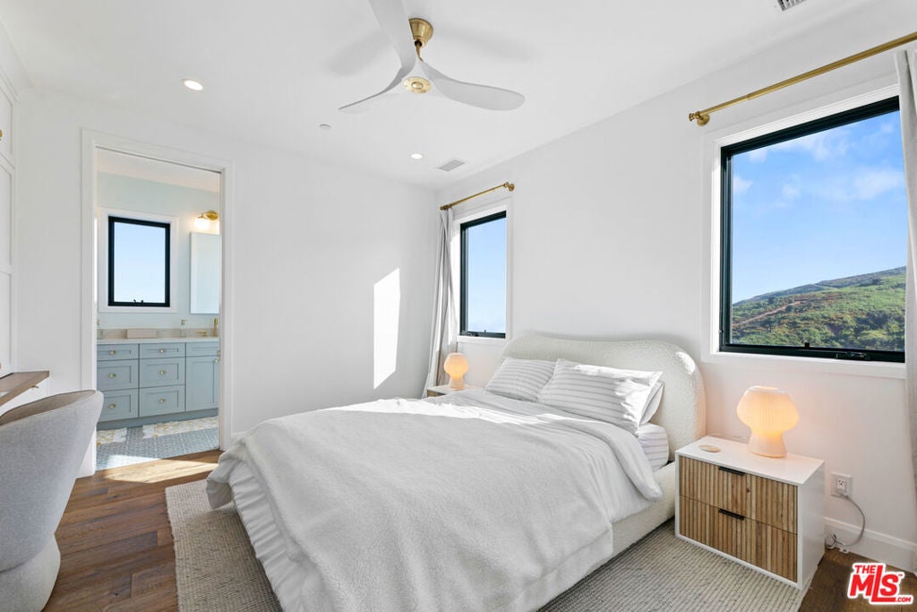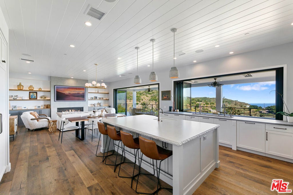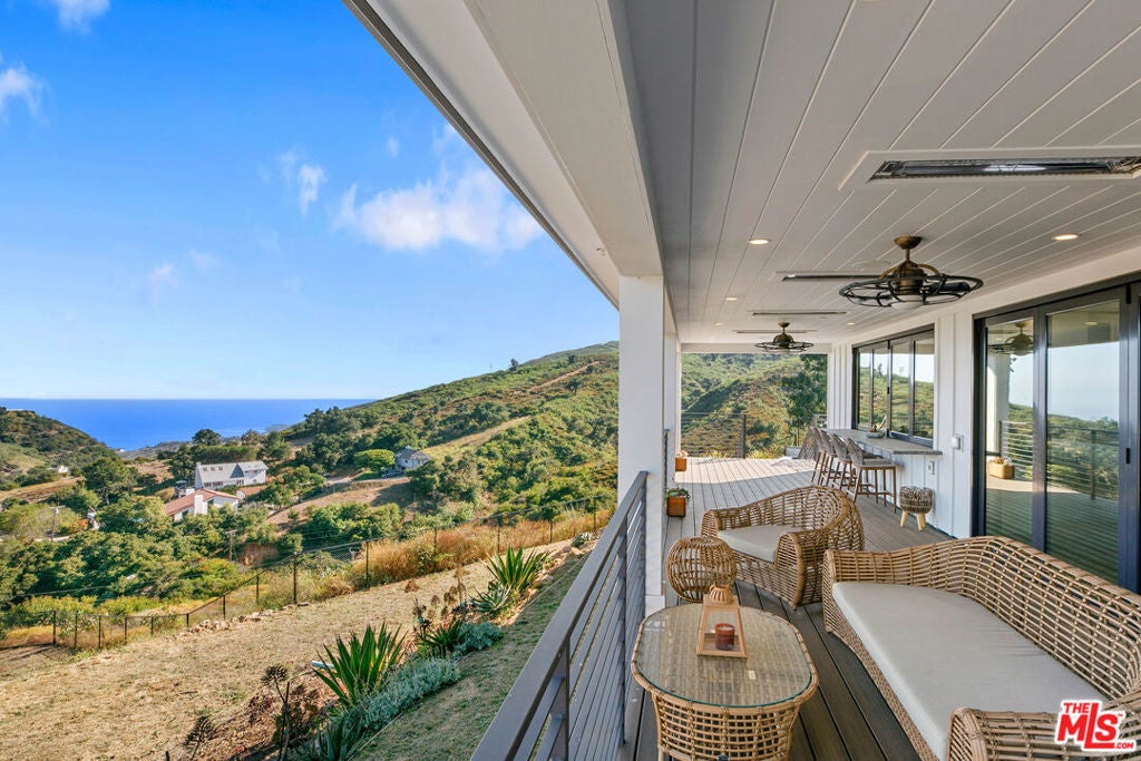Discover unparalleled luxury in this newer construction, boasting 4 bedrooms and 3.5 bathrooms across an expansive 3,232 square feet. An additional 400-square-foot bonus room above the garage, currently utilized as a home gym, adds versatility and sophistication to this stylish residence.Thoughtfully designed for modern living, this custom home features extensive storage options both on the side and underneath the property. Eco-conscious buyers will appreciate the owned solar-paneled roof and EV charging station. The interior showcases state-of-the-art technology, including a Creston system, advanced camera and security systems, and a whole-home audio setup all effortlessly controlled via your smart home application. The primary bedroom is a sanctuary of tranquility, offering breathtaking ocean and mountain views that captivate upon entry. Additionally, all other bedrooms also provide stunning ocean and mountain views, creating a serene and picturesque atmosphere throughout the home. Perfect for entertaining, the home features an expansive deck with an outdoor bar, ideal for dining al fresco and embracing the true California lifestyle. A lower outdoor space with a jacuzzi spa overlooks the ocean, providing a tranquil retreat for relaxation and enjoyment. Nestled amidst exclusive scenic hiking and biking trails and in close proximity to some of Malibu's most coveted beaches, this home provides the perfect blend of adventure and relaxation. Embrace the ultimate in luxury living with this exceptional property.