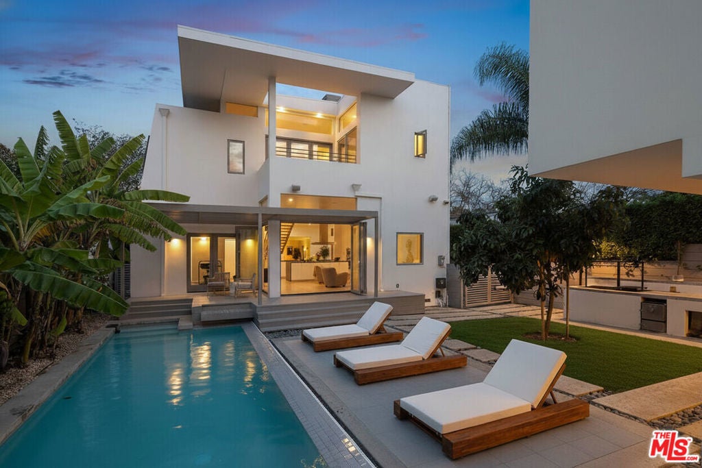 Presenting an extraordinary opportunity: a one-of-a-kind architectural masterpiece by designer William Dale Brantley with resort-like backyard and detached pool house. This stunning residence masterfully combines sleek modern elegance with timeless sophistication, delivering the ultimate in luxury living. Spanning approximately 4,152 square feet, including the 3,560 square feet of main residence and a generous 592-square-foot detached recreation studio. This exceptional property offers 5 bedrooms, 6 bathrooms, a private pool, dedicated fitness room, and state-of-the-art smart home integration throughout. The dramatic two-story entry sets an immediate tone of grandeur, featuring soaring 22-foot ceilings and an expansive wall of glass that floods the open-concept living areas with natural light. Rich hardwood floors ground the sophisticated interiors, creating seamless flow for effortless entertaining and everyday luxury. Step outside to your private resort-style oasis: a sparkling pool surrounded by expansive entertaining space, complete with an outdoor-grade refrigerator, draft beer station, and a custom wood-fired oven ideal for artisanal pizzas and gourmet gatherings. Upstairs, indulge in rare amenities including a full-wall professional wine cellar and a dedicated dry-aging beef chamber for elevating the finest cuts to perfection. Situated by luxury boutiques, acclaimed restaurants, and vibrant art galleries, the area attracts an elite, creative clientele.