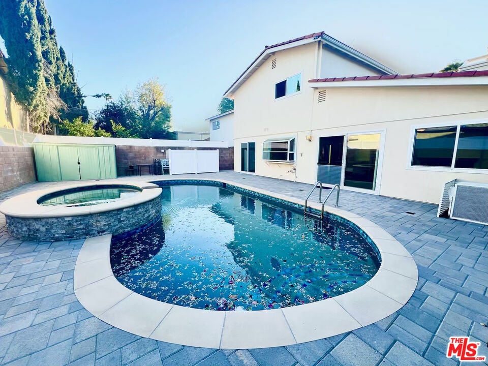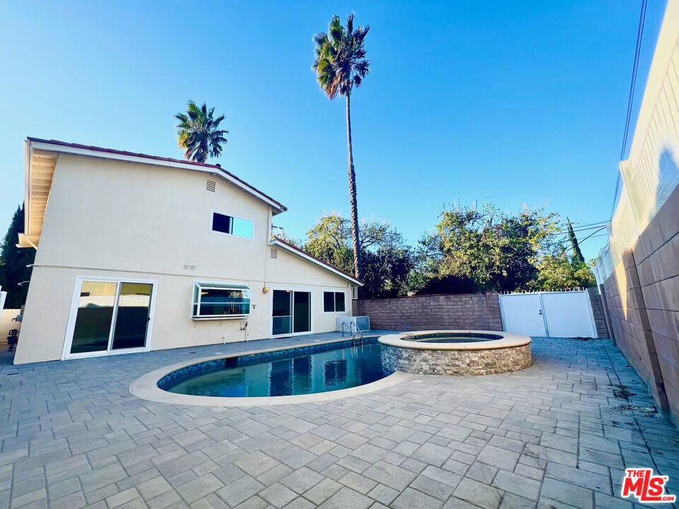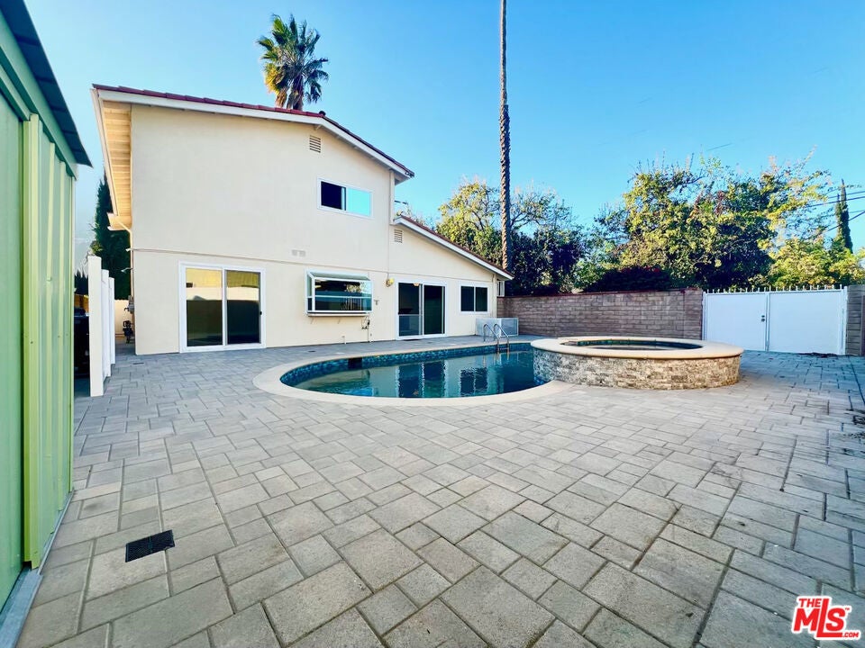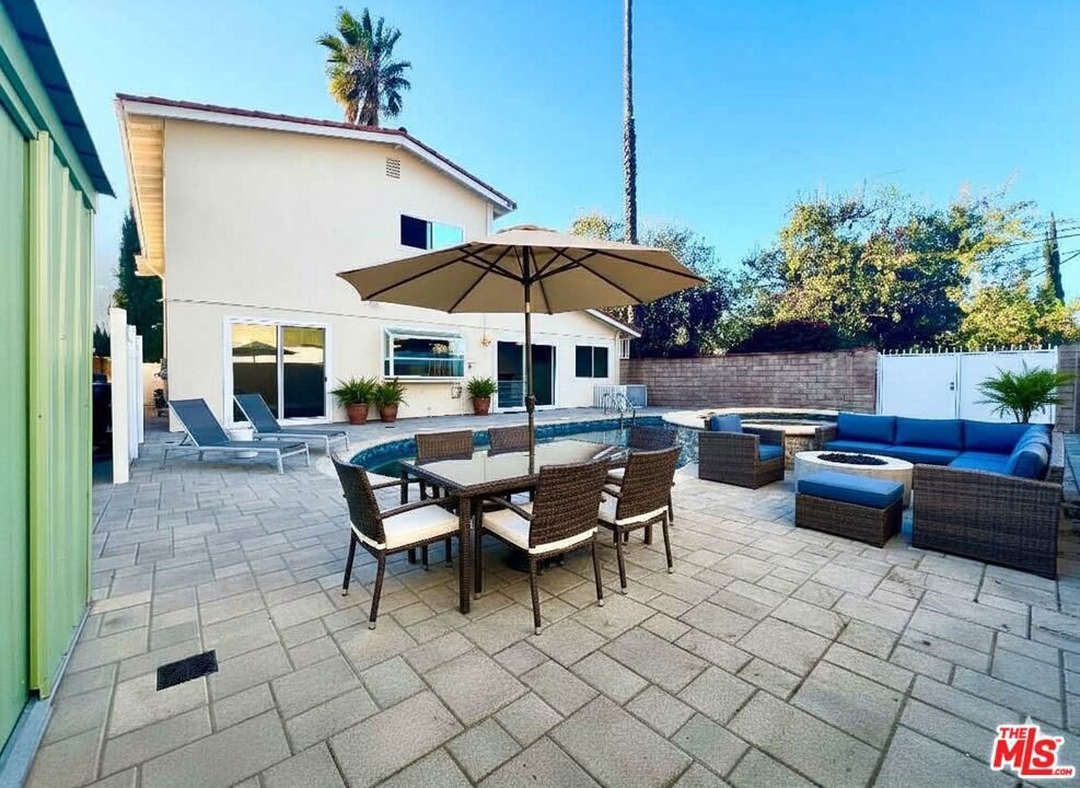 This must-see 3-bedroom, 2.5-bathroom home features numerous upgrades and is located near Desoto and Roscoe. The main level boasts a beautiful marble floor entrance leading into a living room with recessed lighting and a double-sided fireplace shared with the family room. The upgraded kitchen includes marble countertops, a matching breakfast bar, wooden laminate flooring, and custom pull-out drawers for easy access to the pantry and cookware. From the family room, sliding doors lead to a backyard featuring a salt-heated pool, a jacuzzi, and a convenient outdoor shower. Upstairs, the sunlit primary bedroom includes a walk-in closet and an ensuite bathroom. Two additional bedrooms, a full bathroom, and a large linen closet complete the second floor. Key features and upgrades include: -15 paid-off solar panels - EV charger - New plumbing and copper piping - Double-paned windows - Nest thermostat and home security system - Double front door entrance with an upgraded glass screen door - Low-maintenance yard with front turf and a concrete backyard. - Separate Formal dining room. Please call to schedule a showing.