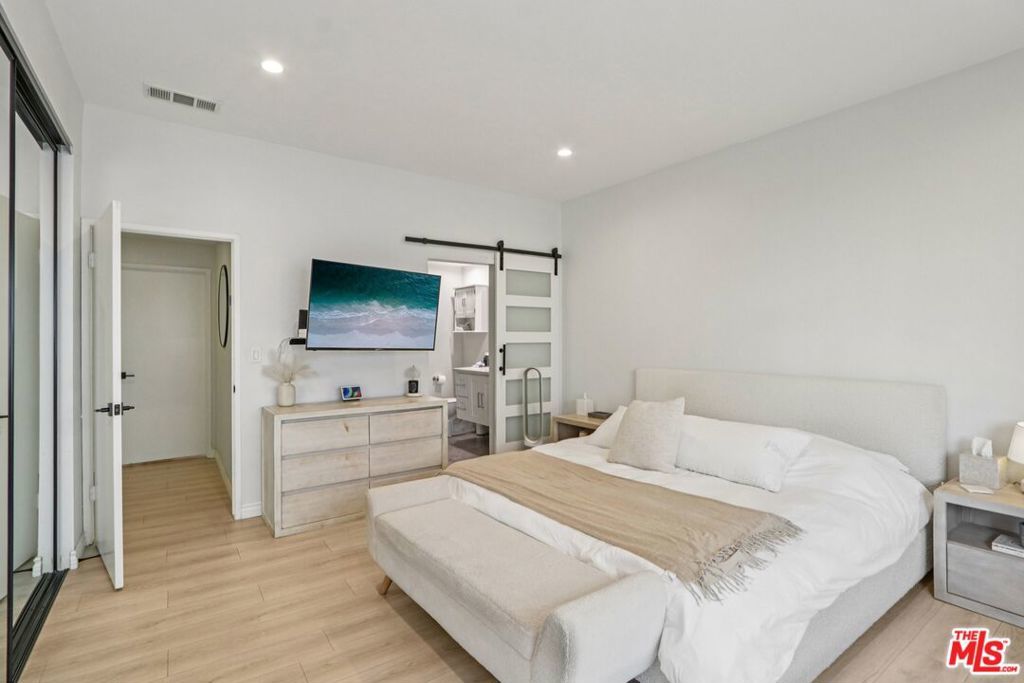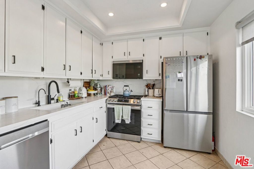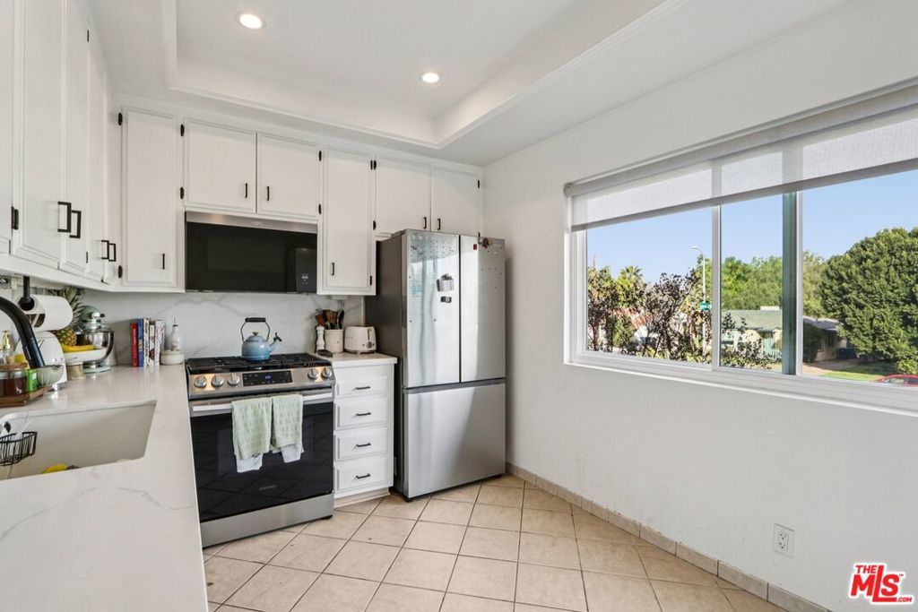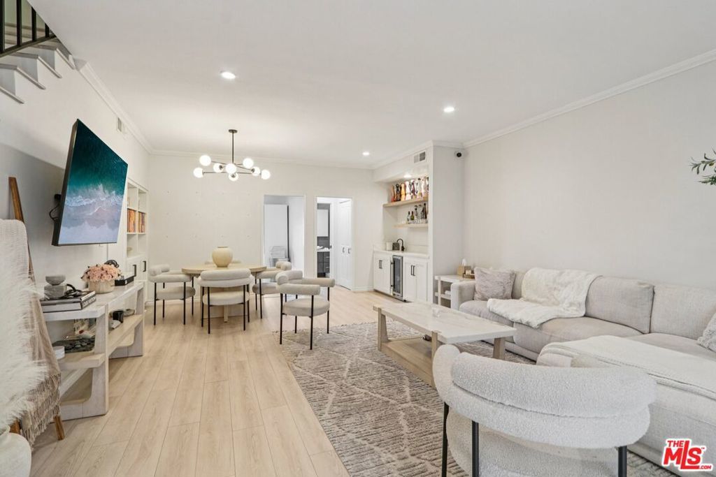 Welcome to this beautifully renovated 2-bedroom, 2.5-bath townhome in the heart of Encino. Thoughtfully redesigned with both style and functionality in mind, this turnkey residence features high-end finishes, modern upgrades, and a warm, inviting layout. The light-filled interior showcases smooth ceilings, recessed lighting, central air & heat, and new flooring throughout. The open-concept living and dining areas flow seamlessly, offering an ideal space for everyday living and entertaining. The updated kitchen features upgraded cabinetry, sleek countertops, and modern fixtures, and opens directly to the main living area. Additional features include an in-unit laundry area, a remodeled guest powder room, a cozy stone gas fireplace, a stylish wet bar, and a private outdoor patio. Upstairs, both bedrooms are generously sized with en-suite bathrooms, providing comfort and privacy. The primary suite offers ample closet space and an updated bath. Ideally located along the perimeter of the community, the home offers direct access without passing through a lobby or interior building, enhancing privacy and providing a single-family residence feel. The property includes two dedicated parking spaces, along with a recently installed private EV charger assigned to the unit. Community amenities include a pool, spa, and fitness center. Conveniently located near Ventura Boulevard shopping, dining, and freeway access. Move-in ready and well-positioned for today's market. Very easy to preview.