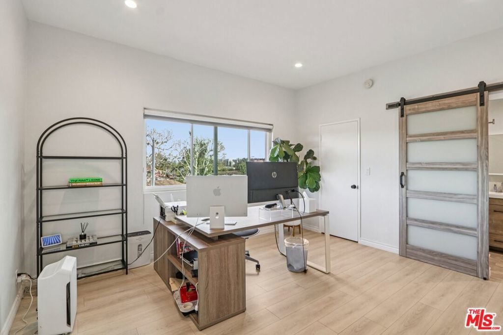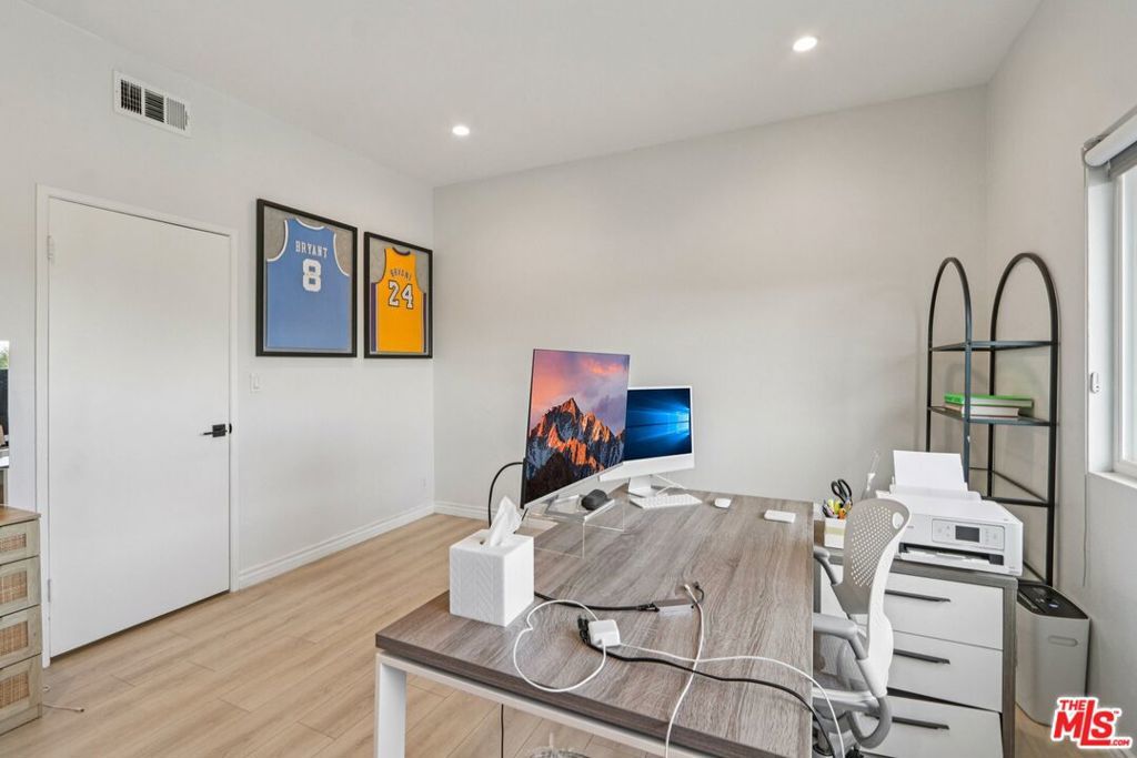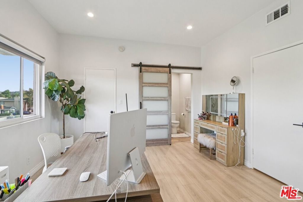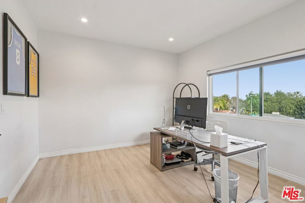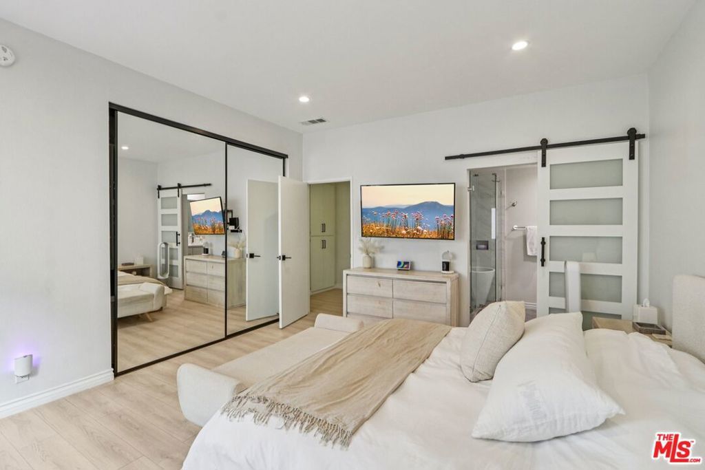 Welcome to this beautifully renovated 2-bedroom, 2.5-bath townhome in the heart of Encino. Thoughtfully redesigned with both style and functionality in mind, this turnkey residence features high-end finishes, modern upgrades, and a warm, inviting layout. The light-filled interior showcases smooth ceilings, recessed lighting, central air & heat, and new flooring throughout. The open-concept living and dining areas flow seamlessly, offering an ideal space for everyday living and entertaining. The updated kitchen features upgraded cabinetry, sleek countertops, and modern fixtures, and opens directly to the main living area. Additional features include an in-unit laundry area, a remodeled guest powder room, a cozy stone gas fireplace, a stylish wet bar, and a private outdoor patio. Upstairs, both bedrooms are generously sized with en-suite bathrooms, providing comfort and privacy. The primary suite offers ample closet space and an updated bath. Ideally located along the perimeter of the community, the home offers direct access without passing through a lobby or interior building, enhancing privacy and providing a single-family residence feel. The property includes two dedicated parking spaces, along with a recently installed private EV charger assigned to the unit. Community amenities include a pool, spa, and fitness center. Conveniently located near Ventura Boulevard shopping, dining, and freeway access. Move-in ready and well-positioned for today's market. Very easy to preview.