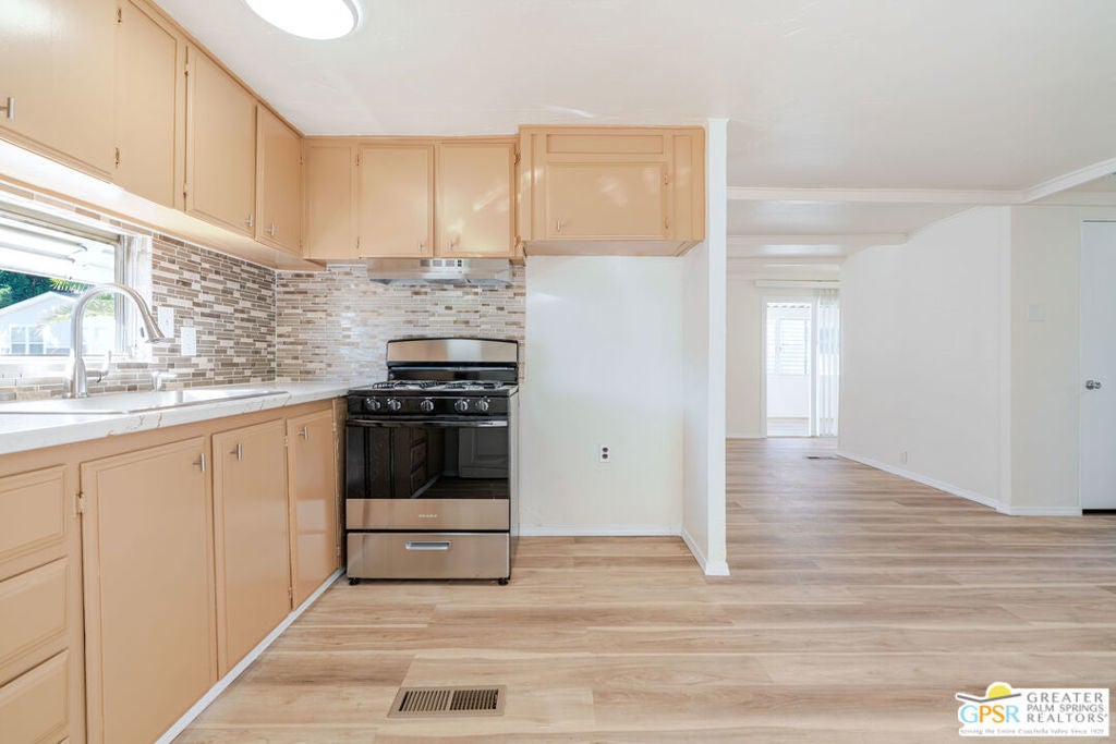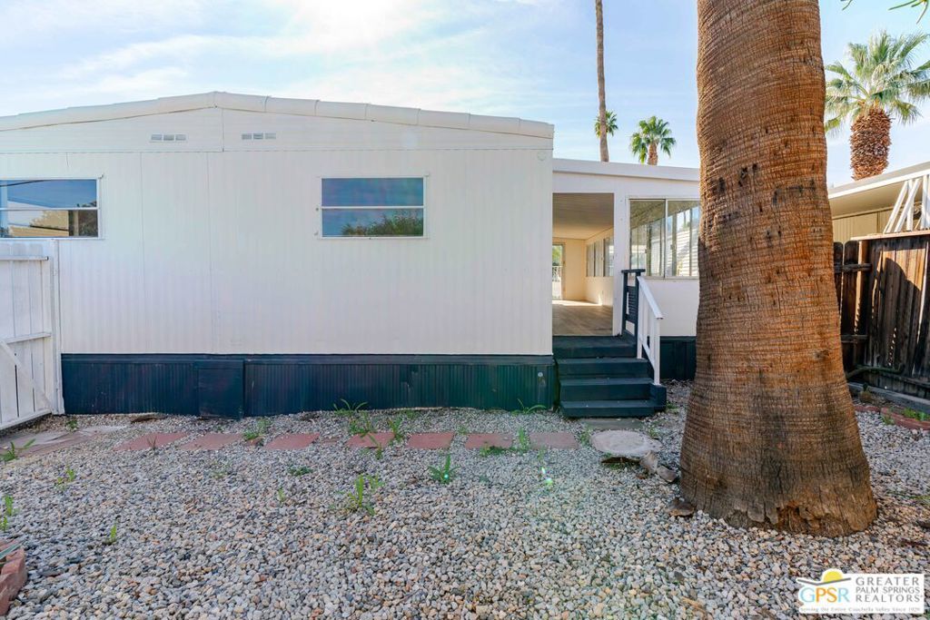 Desert Living at Its Best in Caliente Sands (55+ Community)! Welcome to this beautifully updated home located in the desirable Caliente Sands 55+ community in Cathedral City. Centrally located near shopping, dining, and everyday conveniences, this home offers a relaxed desert lifestyle paired with a welcoming, active senior community. This 2-bedroom, 1-bath home features a comfortable layout and a versatile bonus room perfect for a sitting area, hobby space, or entertaining guests. The remodeled kitchen showcases updated finishes and modern touches designed for both function and style. Recent upgrades throughout the home add value and peace of mind, including a new foam roof with elastomeric coating, providing durability and energy efficiency. Updated flooring, refreshed interior finishes, and tasteful improvements create a bright, move-in-ready living space. Exterior updates and enhanced landscaping add curb appeal and complete the home. Caliente Sands is known for its friendly atmosphere, well-maintained grounds, and enjoyable 55+ lifestyle, all set against a beautiful desert backdrop. Space rent is currently $825/month. Park approval required. Schedule your private showing today and experience comfortable desert living in Caliente Sands!