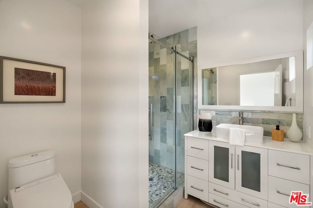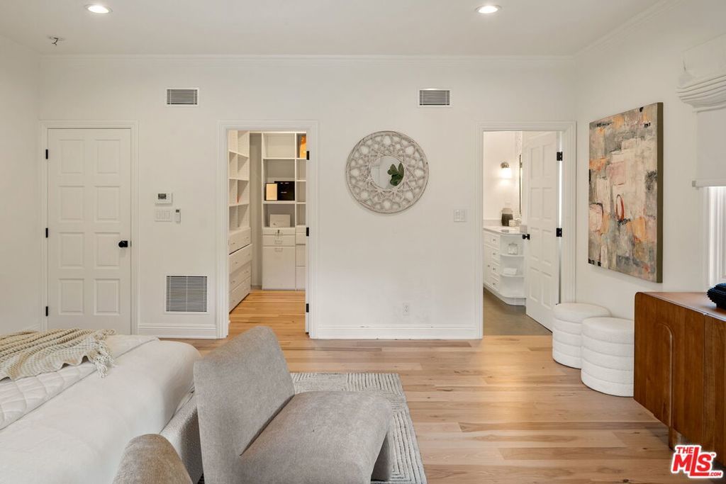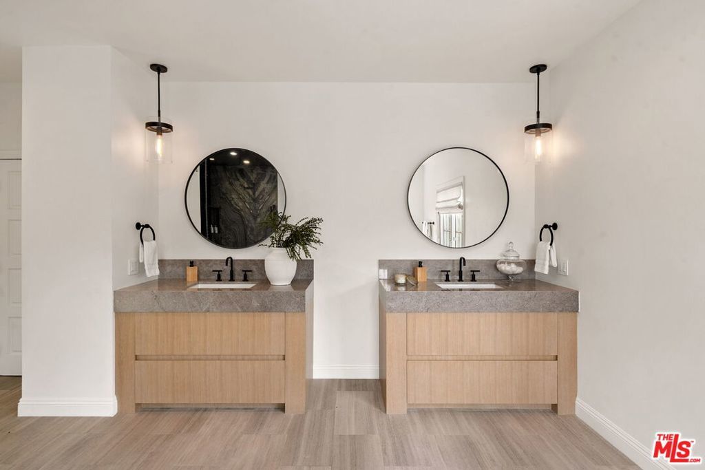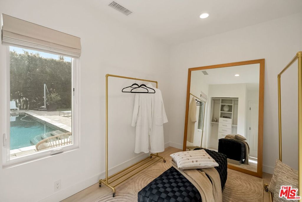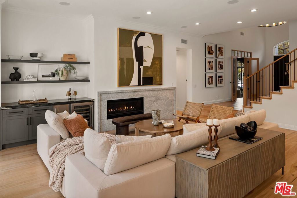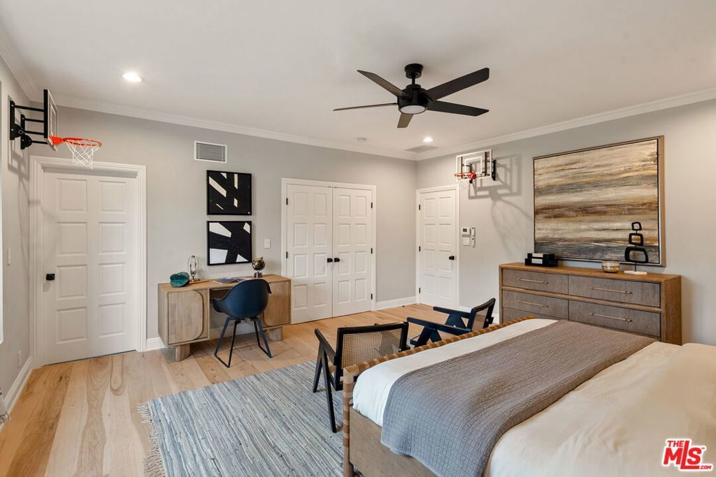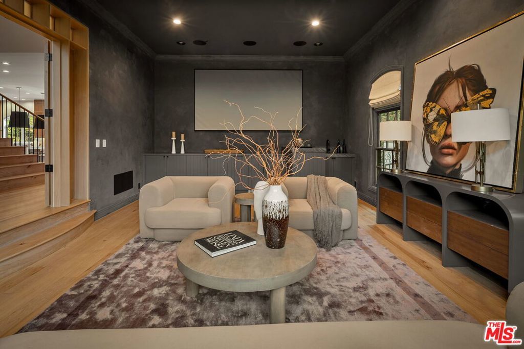 Located on one of Brentwood's most coveted streets, Homewood Road, this newly reimagined estate offers a sophisticated balance of timeless design and effortless California living. Thoughtfully renovated by the current owner, the residence spans approximately 6,800 square feet on an expansive, flat 18,359-square-foot lot. A grand double-door entry opens to a sun-filled foyer with soaring 23-foot ceilings, immediately establishing the home's sense of scale and light. The main level is designed for both refined entertaining and everyday comfort, featuring a formal dining room overlooking the gardens, a dedicated theater, and an expansive great room where a double-island chef's kitchen seamlessly connects to the family room and outdoor living spaces. The kitchen is appointed with custom wood cabinetry, marble countertops, professional-grade appliances, and a walk-in pantry, while a window-wrapped breakfast nook enjoys tranquil views of the pool and grounds. Two generously sized bedrooms and a full laundry room complete the main floor. The upper level hosts four en-suite bedrooms, each with walk-in closets, including a luxurious primary suite with a private sitting area, office, and dual walk-in closets, one currently configured as a fitness studio. Set behind lush landscaping, the resort-style backyard features a sparkling pool and spa, multiple outdoor lounging and dining areas, and a broad lawn ideal for recreation. Additional amenities include a private pickleball court and a fully permitted two-bedroom, one-bath guest house with its own laundry. Situated within the coveted Kenter Canyon Elementary School district and surrounded by Brentwood's finest estates, this exceptional property offers a rare combination of scale, privacy, and modern elegance in one of Los Angeles' most desirable neighborhoods.