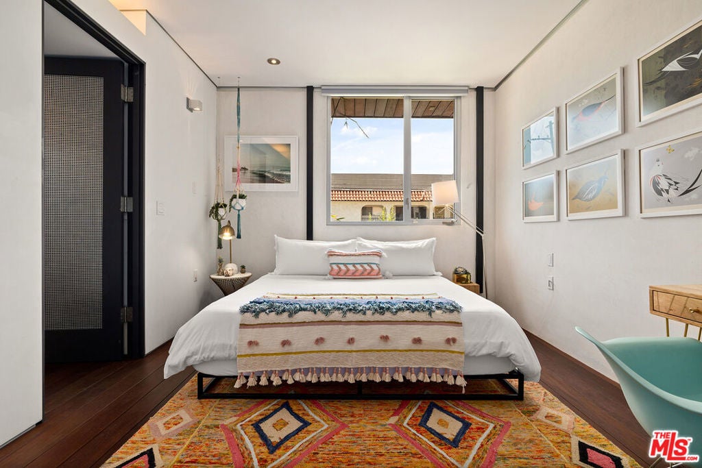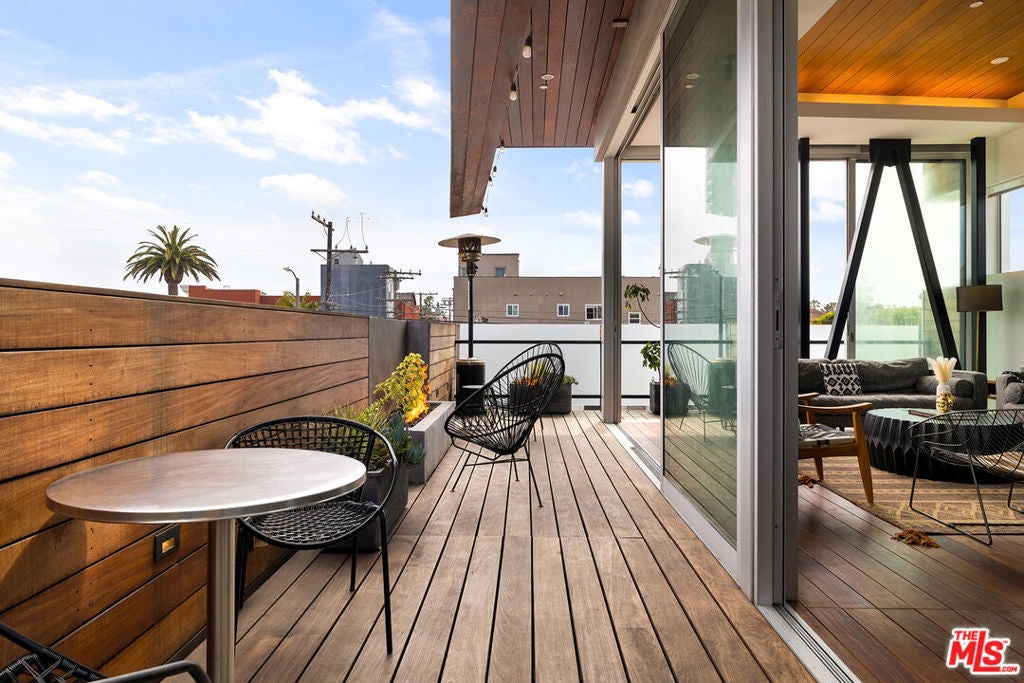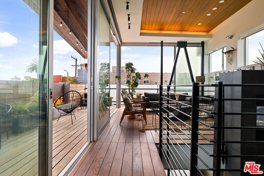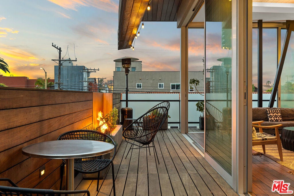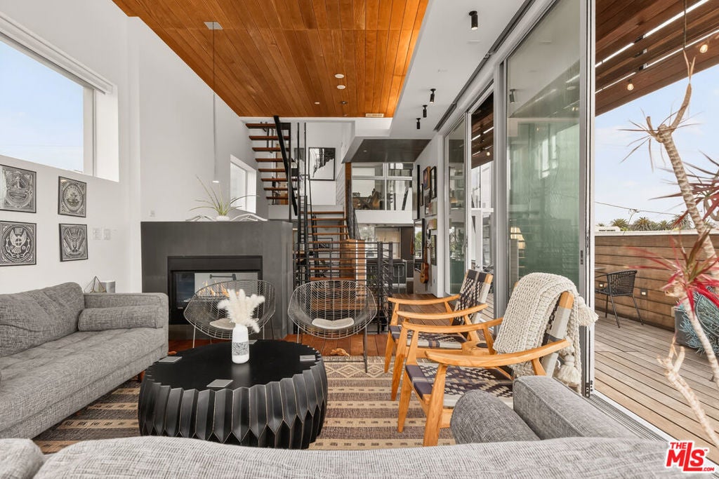 Ocean views abound from this architectural statement in the heart of Venice, just moments to the beach and Abbot Kinney. Designed by renowned architect Bill Adams, FAIA, this three-level residence pairs striking modern lines with a warm, livable layout made for true indoor-outdoor California living. The sun-drenched main level features soaring ceilings, oversized windows, and dramatic walls of glass that slide open to a wraparound deck perfect for sunset cocktails, coastal breezes, and effortless entertaining around a sleek gas fireplace, with an outdoor fire pit just beyond. The chef's kitchen anchors the space with a generous center island and a picture-window sink framing mountain views, while a versatile loft above offers an ideal home office, creative studio, or den.On the bedroom level, three en-suite retreats and a dedicated laundry area provide comfort and privacy, including a serene primary suite with a spacious dressing area/closet and a luxurious soaking tub. The lower level delivers a fabulous media room or flex space opening to a private patio, plus direct entry to a two-car garage. Play on the sand by day, then take in Venice's golden-hour glow from your ocean-view rooftop deck an exceptional modern beach home with every luxury, in one of LA's most iconic neighborhoods.