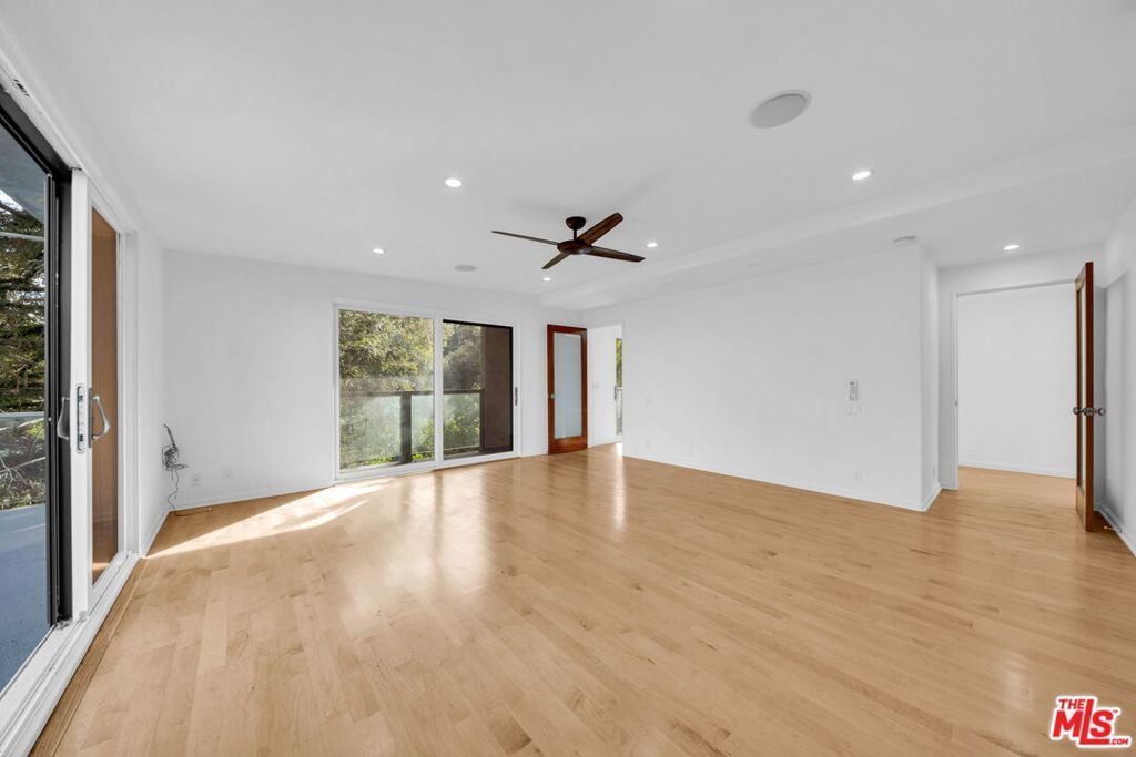 Bel Air architectural view property that offers all the privacy and serenity of the finest westside estate homes. Behind security gates and down a private drive, this custom home offers sweeping views from the city lights of the valley all the way to the snow-capped San Gabriel Mountains. Two grand primary suites with large private decks, four additional bedrooms, a gym, and a studio/library/wine cellar. The well-secluded grounds feature gardens, a pool, and a large spa, ideal for entertaining or moments of relaxed solitude. Conveniently located less than a five-minute drive from the Skirball exit off the 405.