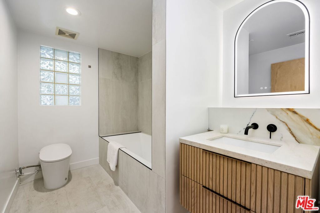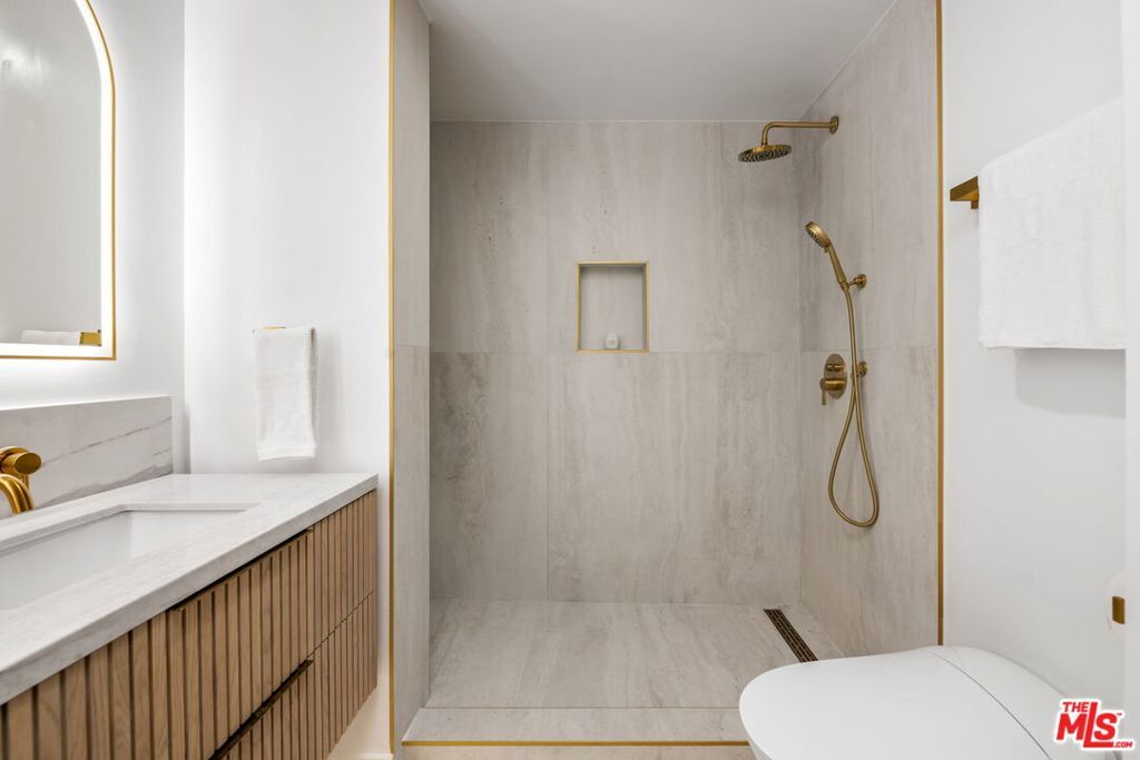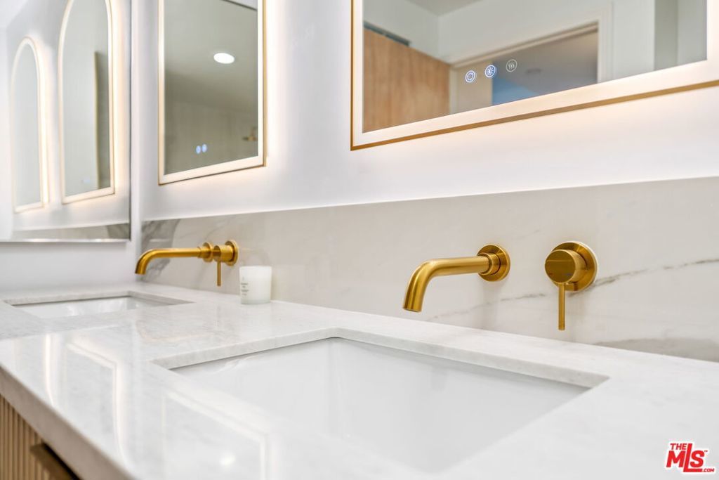 This gorgeous, bright, spacious and completely renovated 2 bedroom, 2 bathroom condominium residence is available for lease now. Entry foyer leads to a large and bright living & dining area with remodeled kitchen offering custom-built cabinetry, designer countertops and appliances. The primary bedroom suite boasts a generous walk in closet & a luxurious spa style bathroom with back lit mirrors and luxurious step-in shower and dual sinks. The 2nd bedroom is located on the opposite side of the main living space, along with a separate 2nd bathroom with an oversized soaking tub and side by side laundry. The unit also offers an enclosed balcony that could be used as a sitting area or office space. The condo includes two side-by-side gated parking spaces, as well as a large storage locker. Building amenities include heated pool, hot tub, gym, sauna, and guest parking. Situated just steps from the Getty Museum, and minutes to Brentwood Village, UCLA, and bike paths, this condo home is also zoned for top-rated Kenter Canyon Elementary, Paul Revere Middle School, and Palisades High School.